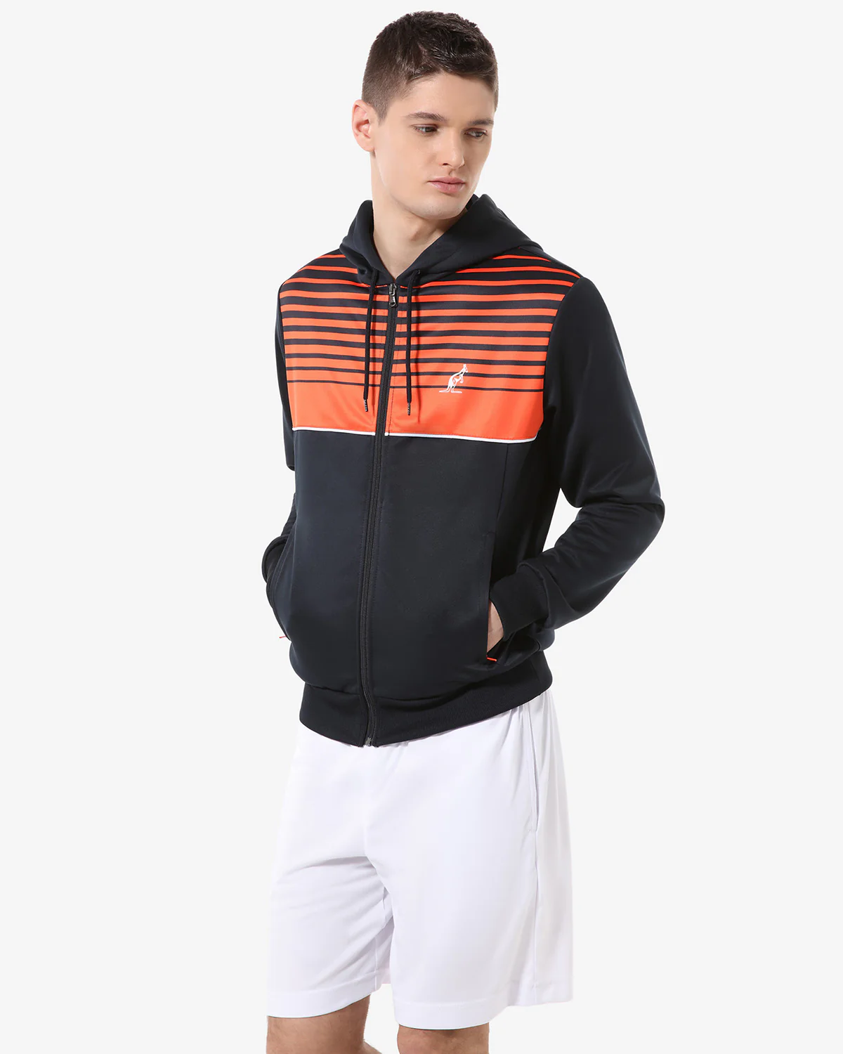 – Giacca in double con cappuccio– Cappuccio regolabile con coulisse – Stampa sublimatica H-lines sul davanti– Piattina applicata in contrasto– Zip tasche in contrasto– Bordo e polsi in costina elasticizzata – Logo stampato– Made in Italy