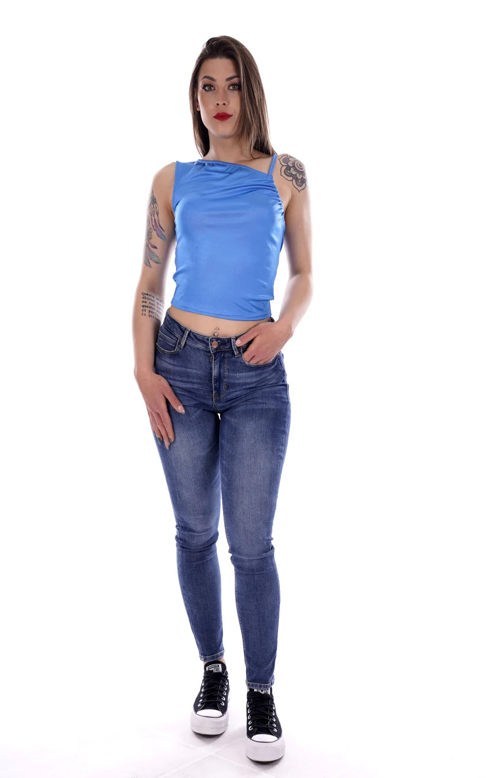 HANNY DEEP Top a canottiera bluette da donna in raso . Monospalla con bretellina sottile