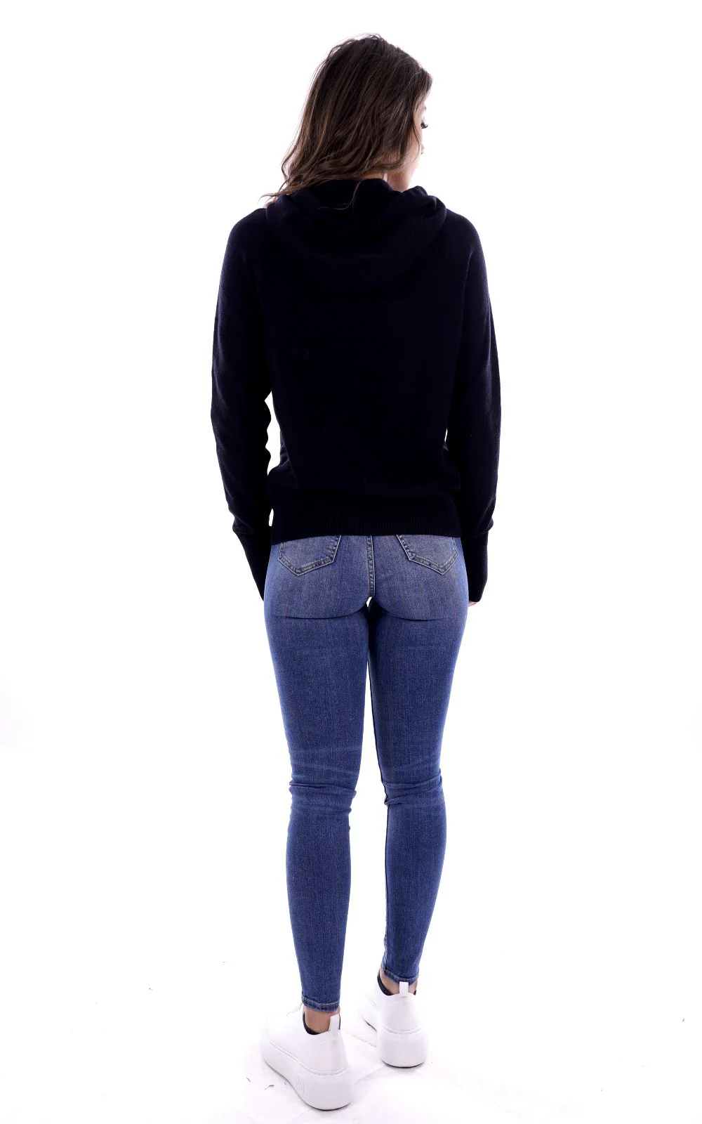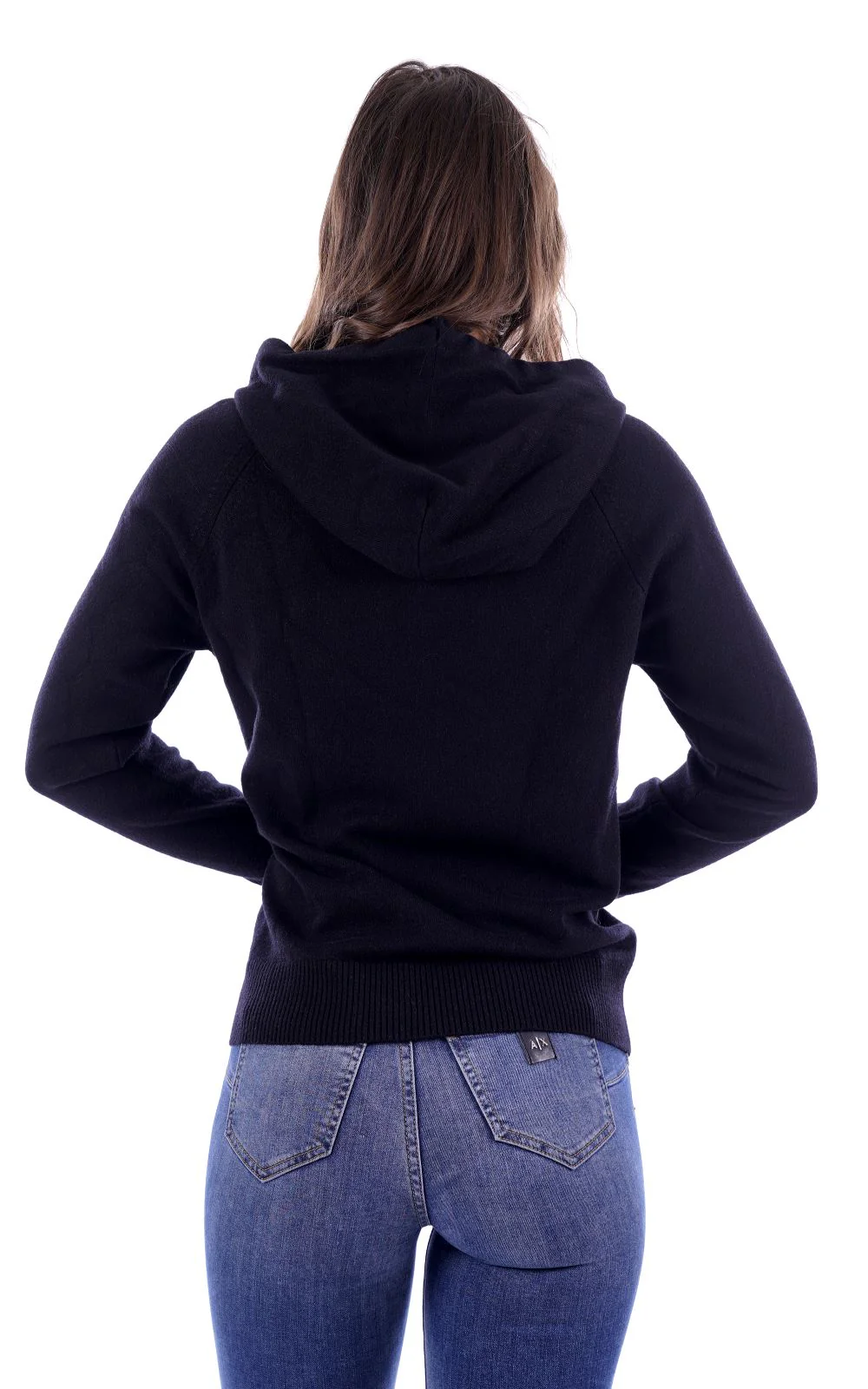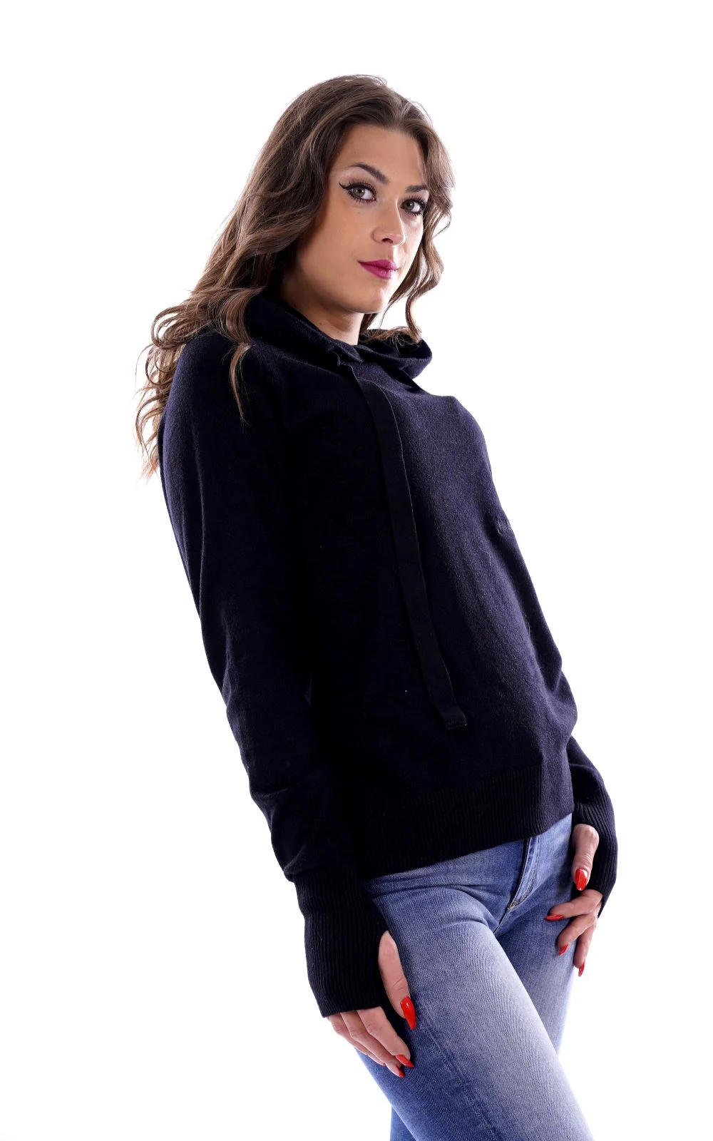 HINNOMINATE Felpa nera in lanetta per donna , con cappuccio . La presenza di viscosa rende il capo particolarmente morbido al tatto . Made in Italy