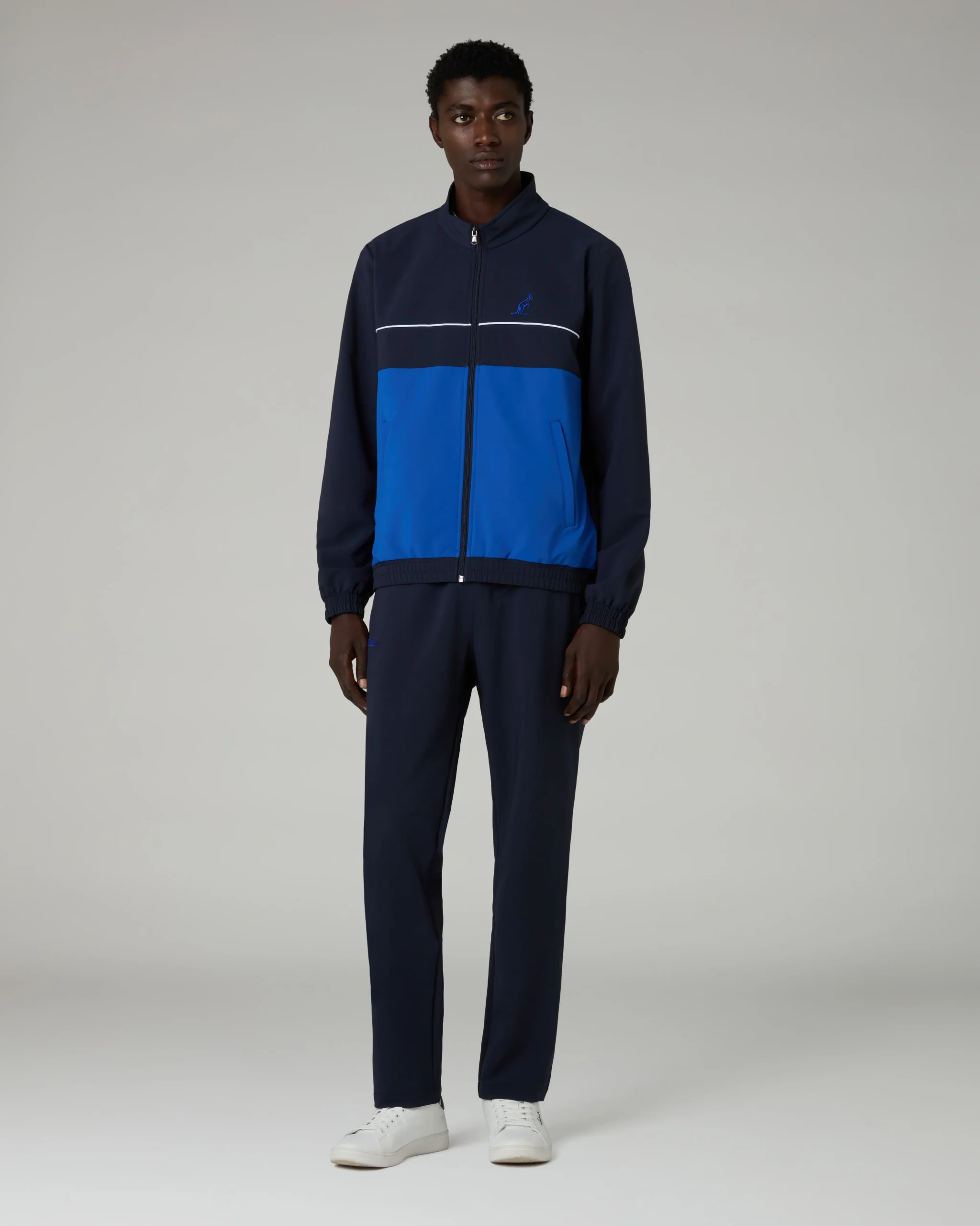 Tuta in tessuto elasticizzato “Match” per un massimo comfortGiacca:– Due colori– Full zip in contrasto– Piping in contrasto– Bordo e polsi elasticizzati– Logo ricamatoPantalone:– Elastico in vita con coulisse regolabile– Fondo dritto– Logo ricamatoMade in Italy