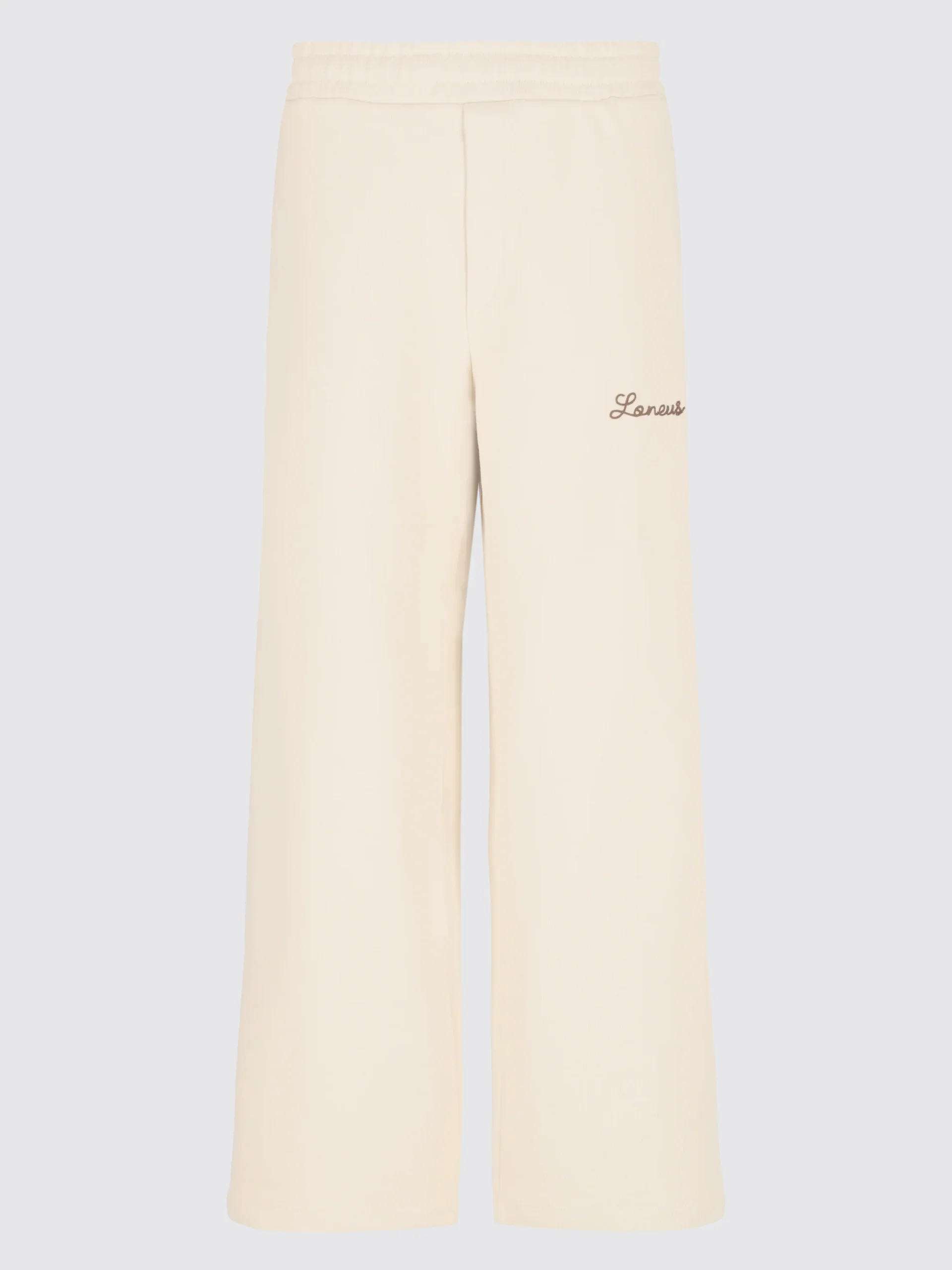 Realizzato in morbida felpa di cotone, questo pantalone firmato Laneus unisce essenzialitร e attenzione al dettaglio. Il logo ricamato in corsivo con punto Cornely, discreto ma distintivo, aggiunge un tocco di design. Caratterizzato da una vita elasticizzata e una finta patta, presenta tasche laterali inserite in cucitura e un fondo ampio, che definisce una silhouette rilassata ma studiata. Made in Italy.