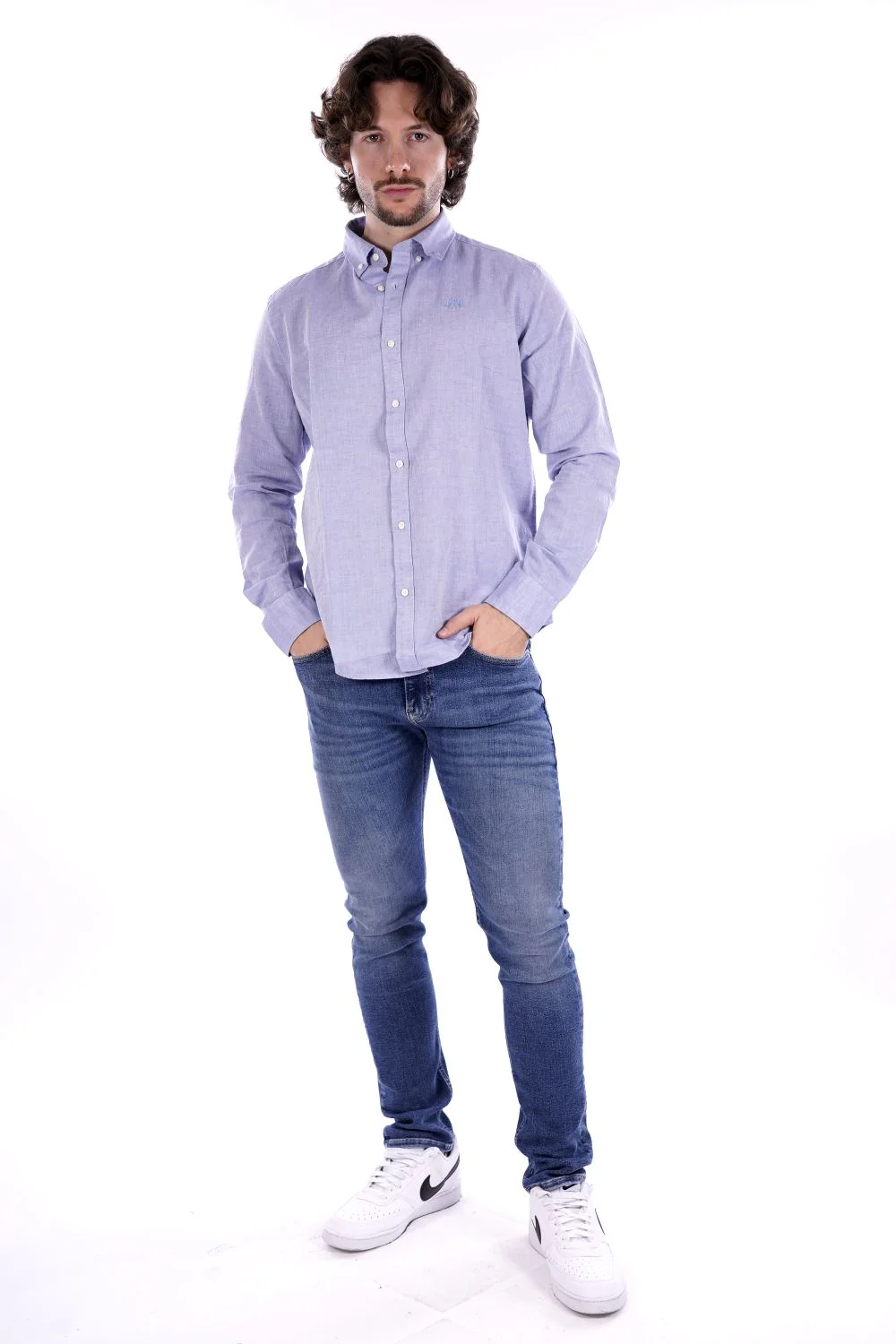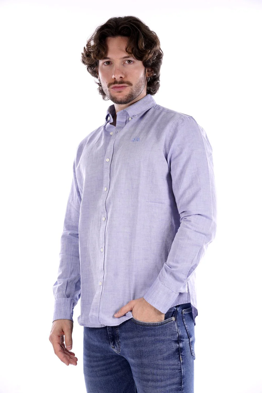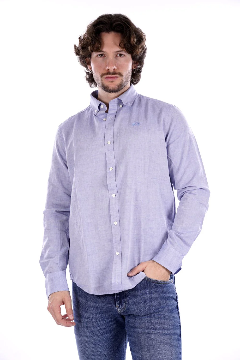 LA MARTINA Camicia celeste da uomo in cotone . Vestibilità regolare . Modello a maniche lunghe con colletto classico e chiusura con bottoni . Logo cucito sul petto tono su tono