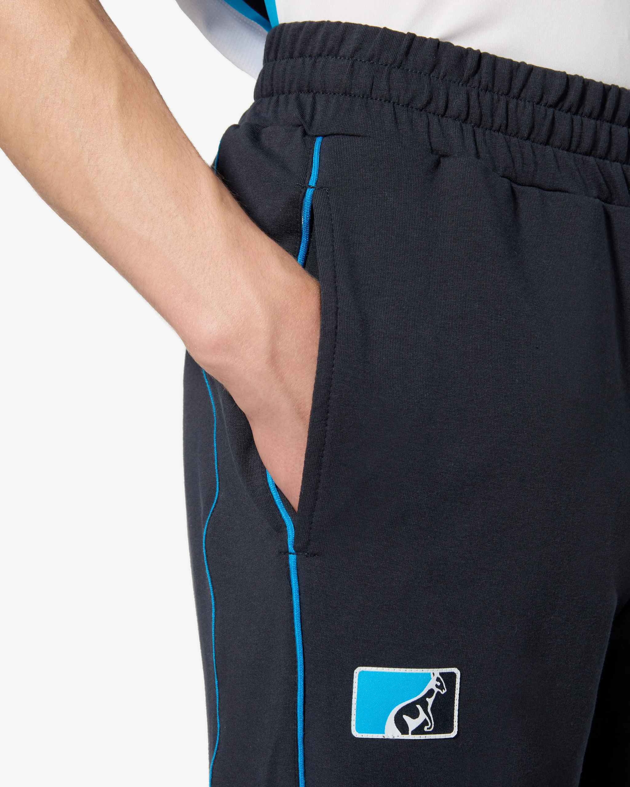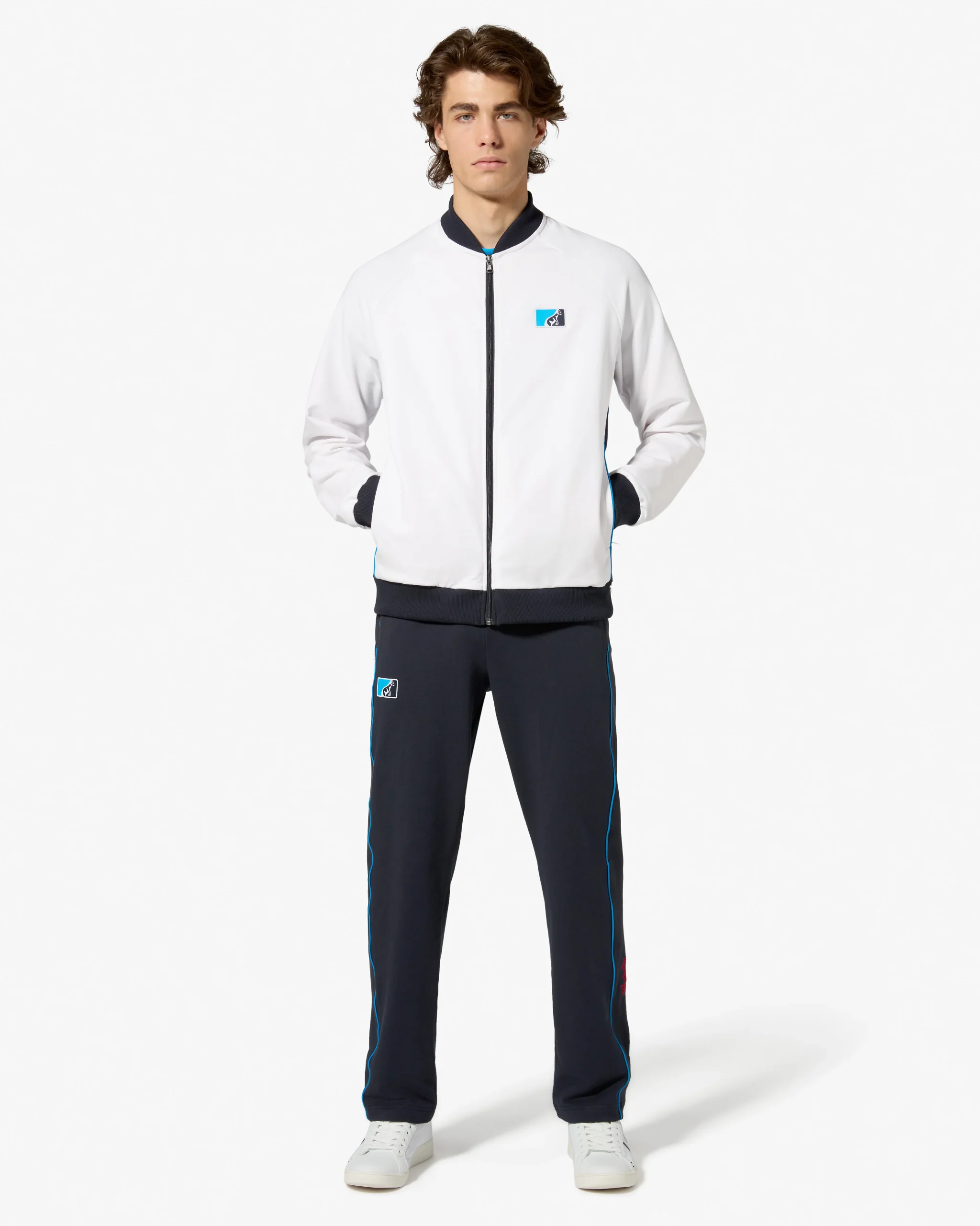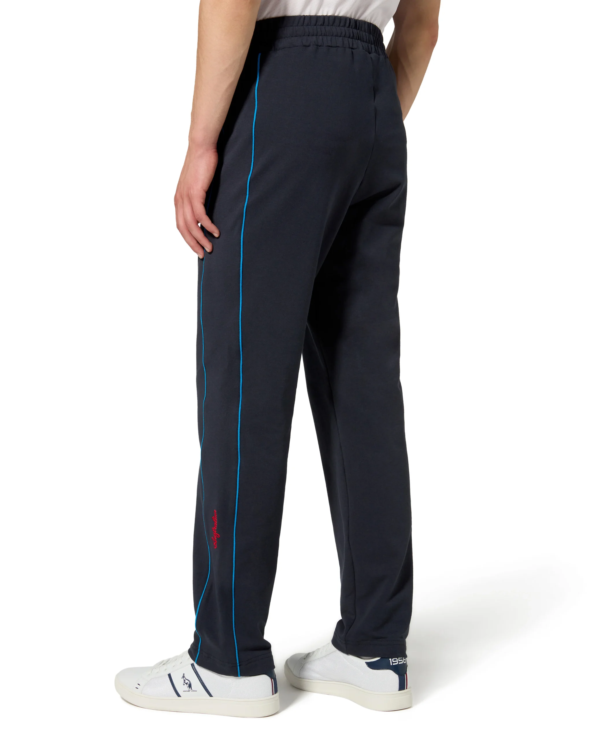 – Pantalone in felpa elasticizzata– Elastico in vita con coulisse regolabile– Inserto nel fianco– Tasche laterali– Piping in contrasto– Fondo dritto– Patch League applicata davanti– Logo stampato in contrasto laterale – Made in Italy