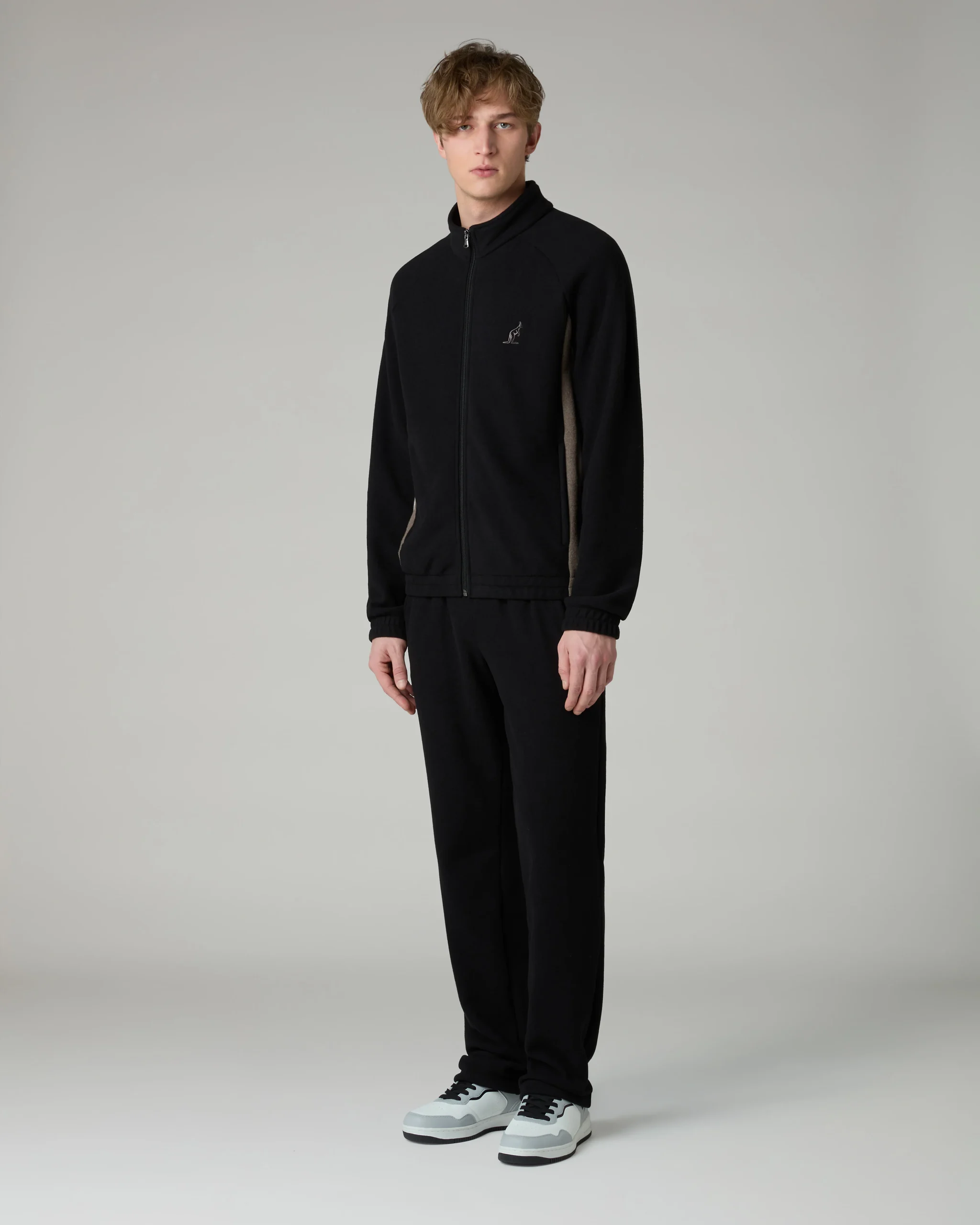 Tuta in SoftechGiacca:– Inserti in contrasto nei fianchi– Full zip frontale– Tasche con zip– Bordo e polsi elasticizzati– Logo ricamatoPantalone:– Elastico in vita con coulisse regolabile– Fondo dritto– Logo ricamatoMade in Italy