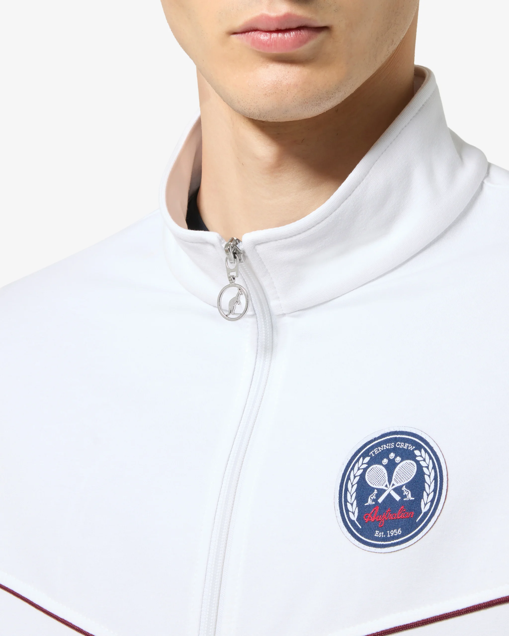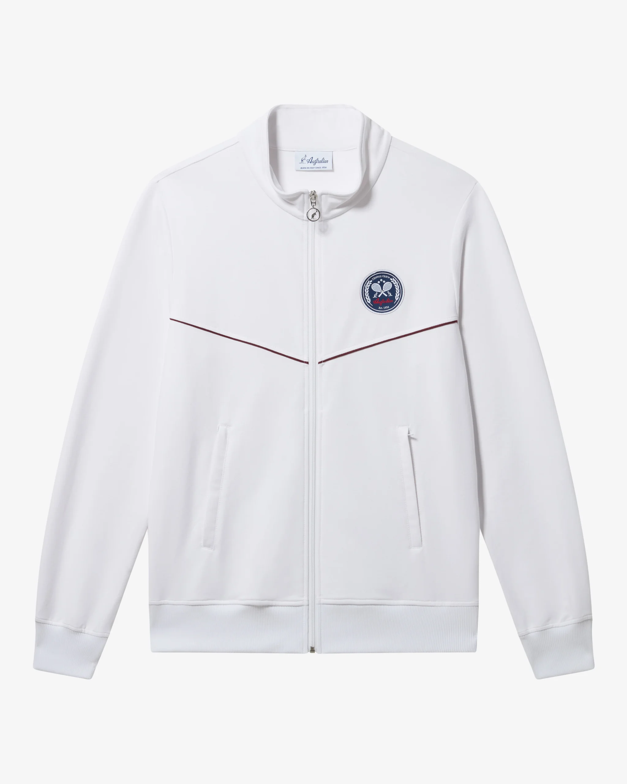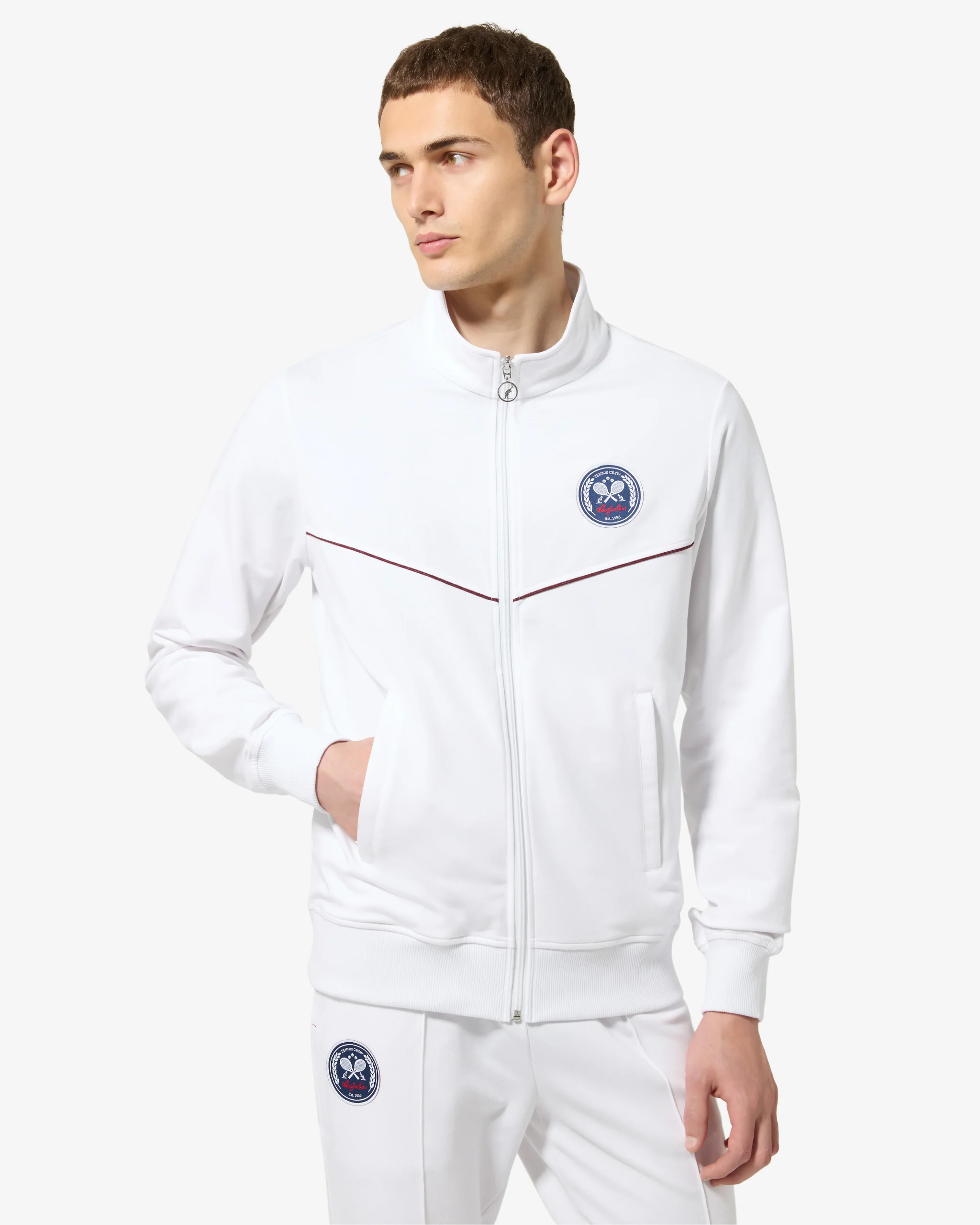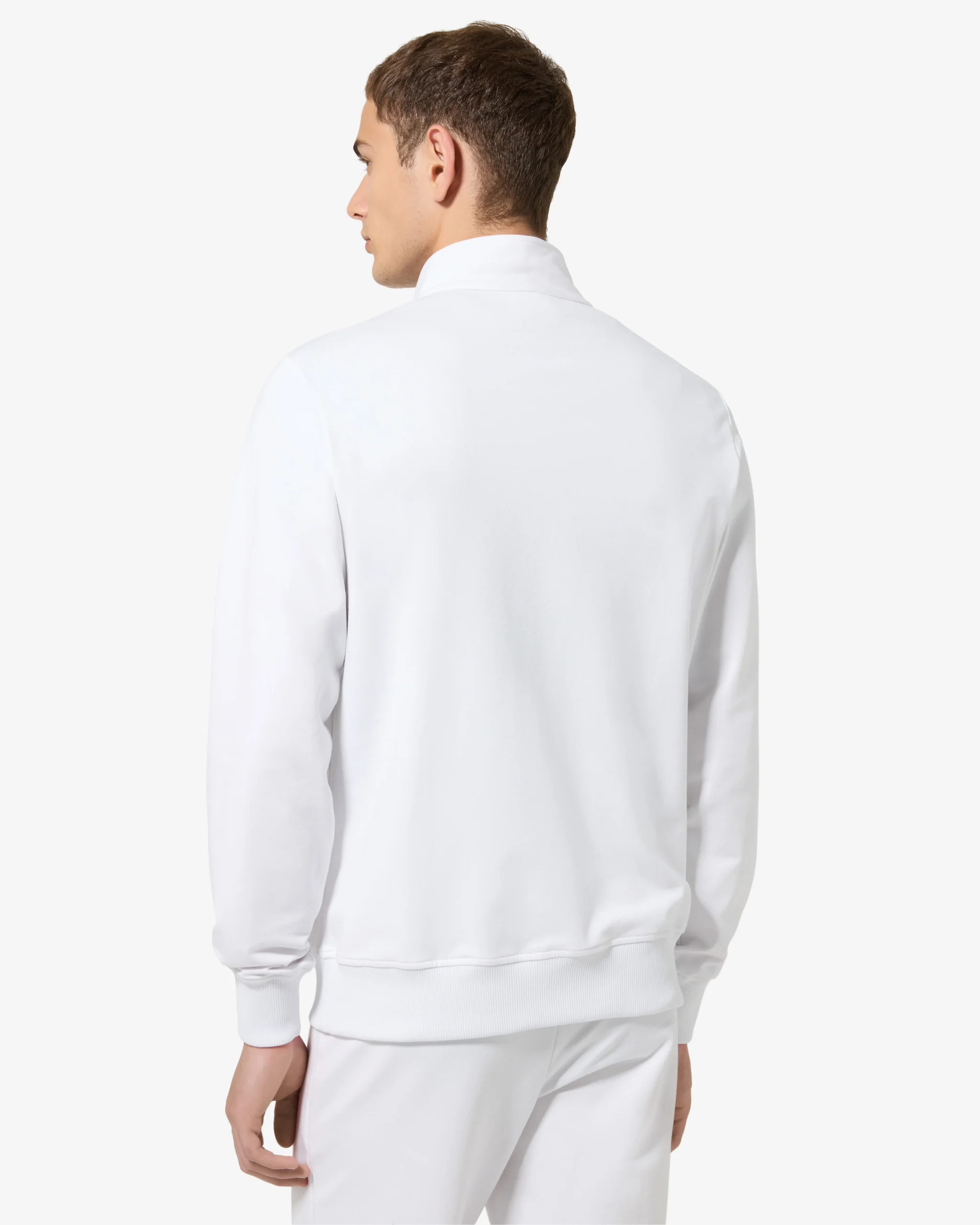 – Giacca sportiva in felpa elasticizzata– Bordi in costina– Zip coperte alle tasche– Piping in contrasto sul davanti– Patch applicata – Made in Italy