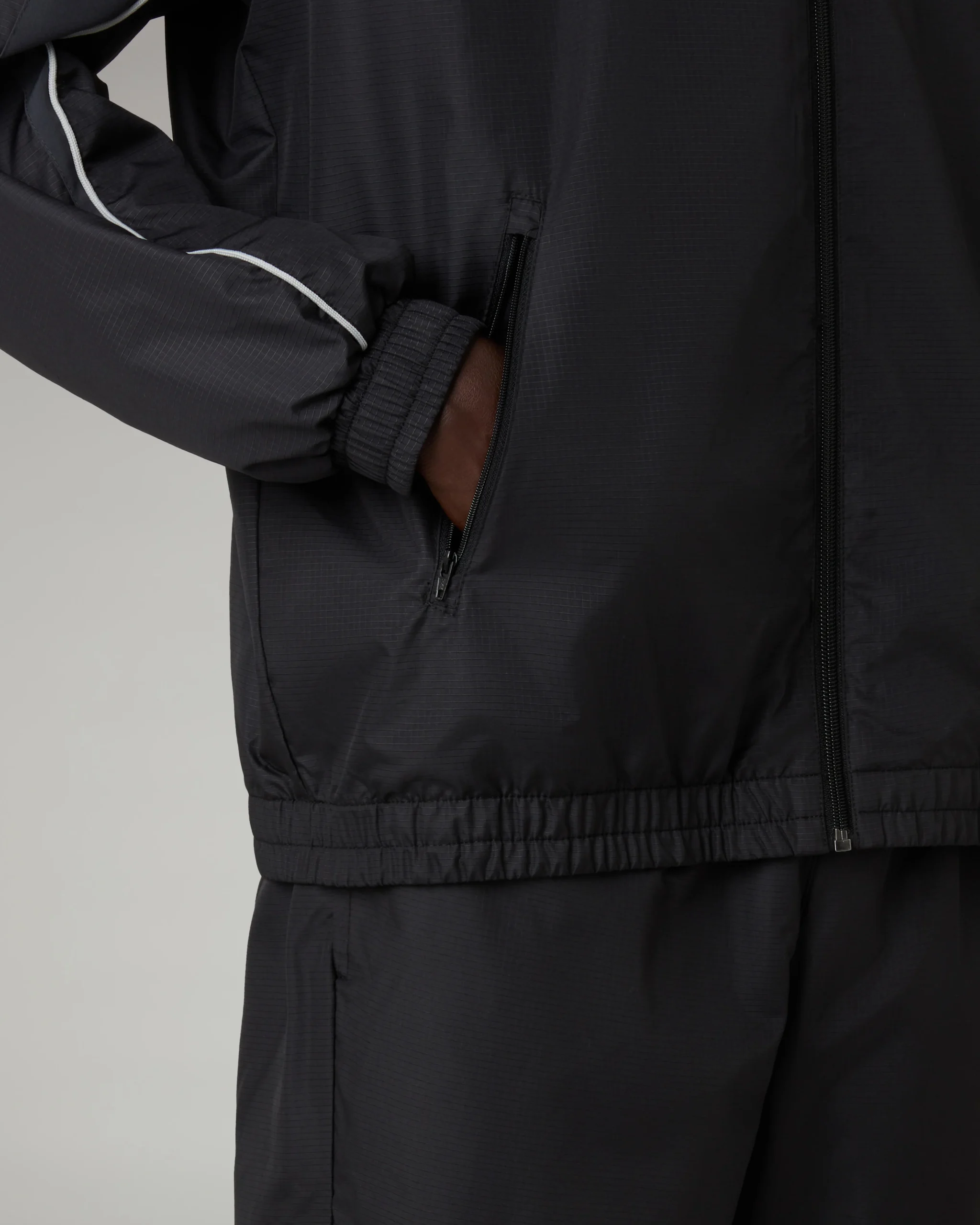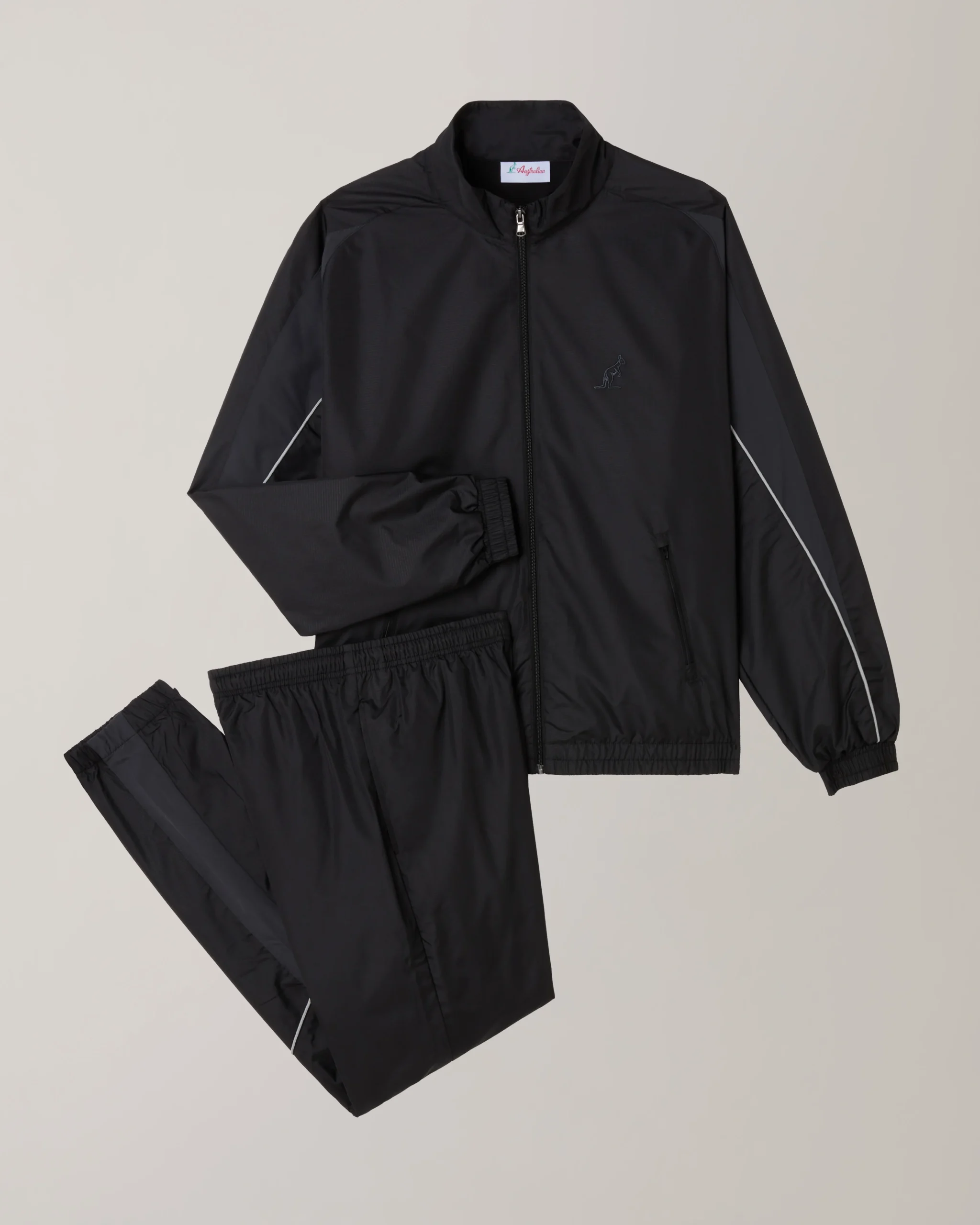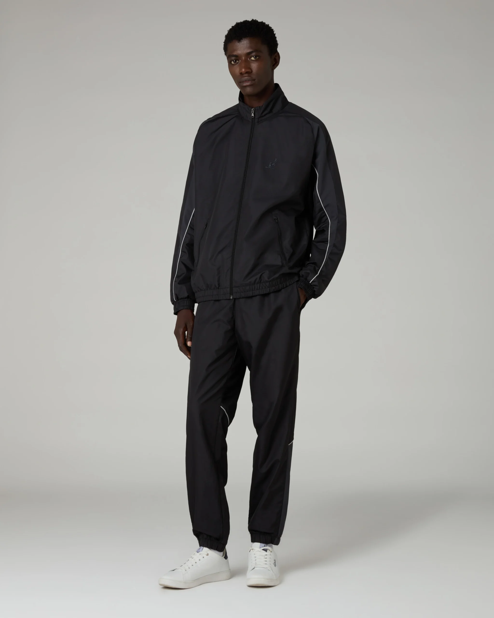 Tuta in tessuto tecnico “Brice” foderataGiacca:– Inserti in contrasto sulle maniche– Piping in contrasto– Full zip frontale– Tasche con zip– Bordo e polsi elasticizzati– Logo in contrastoPantalone:– Elastico in vita con coulisse regolabile– Inserti in contrasto– Piping in contrasto– Fondo elasticizzato– Logo in contrastoMade in Italy