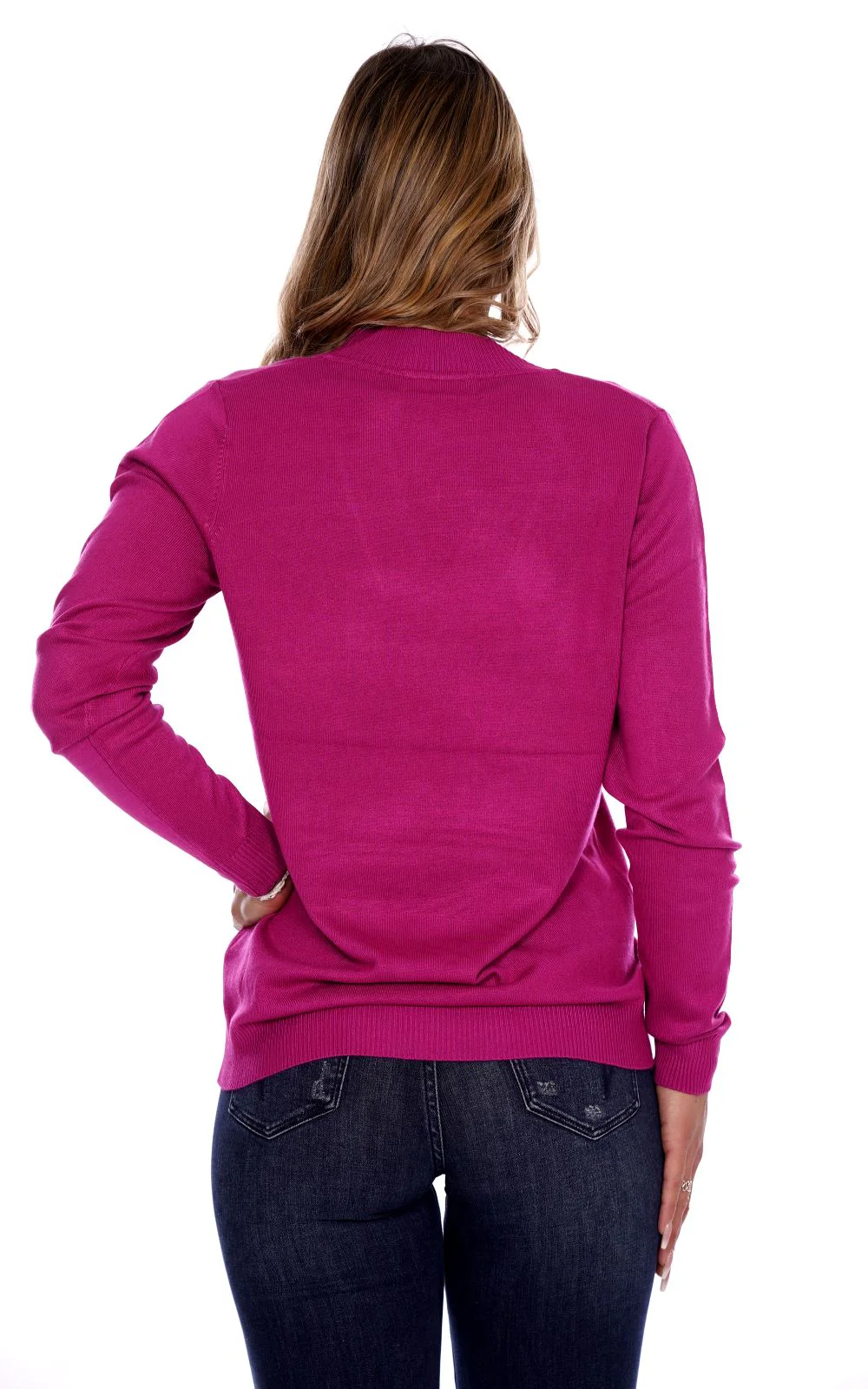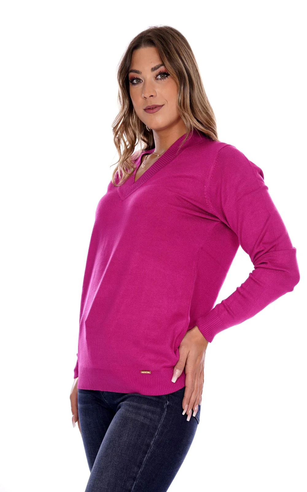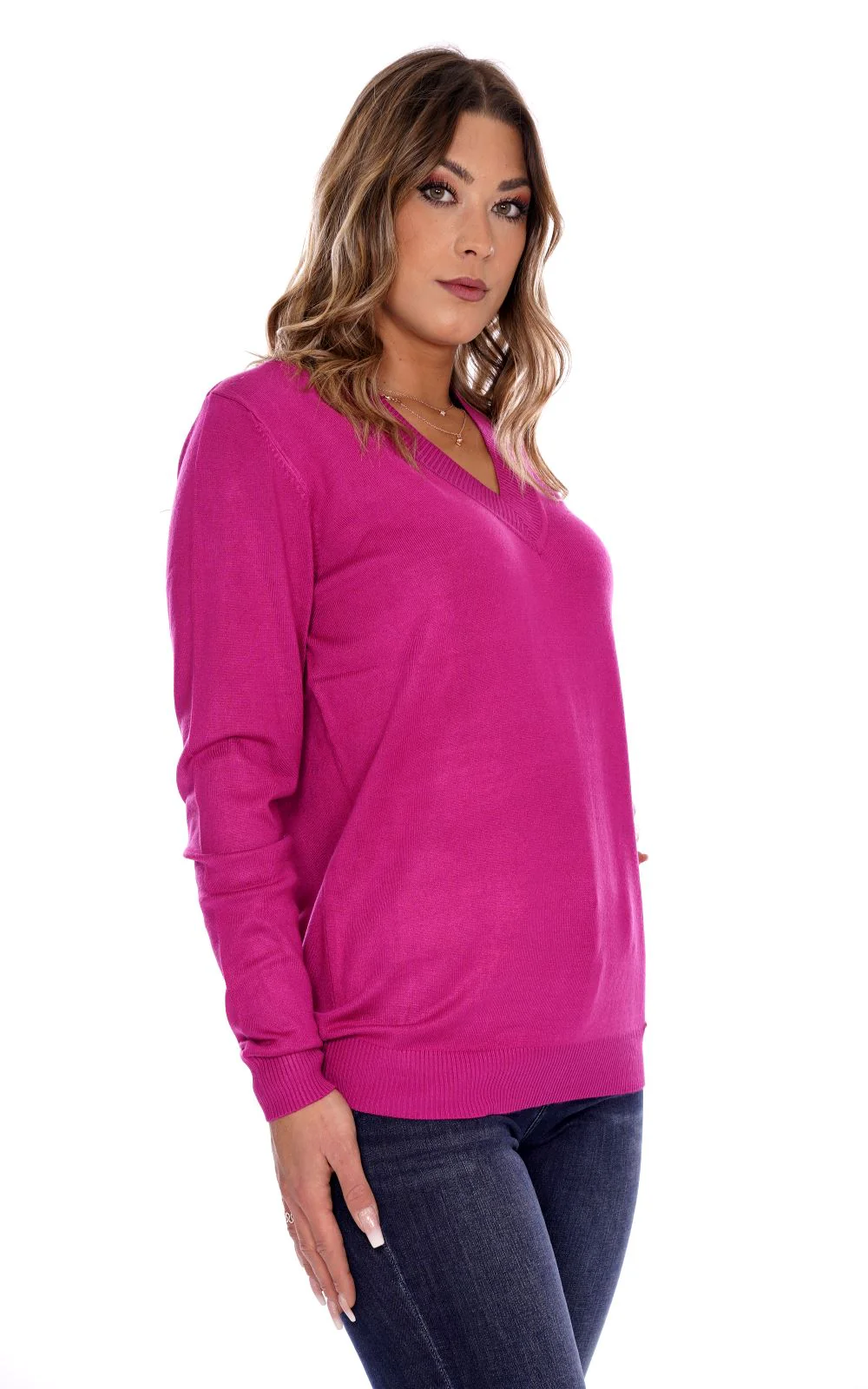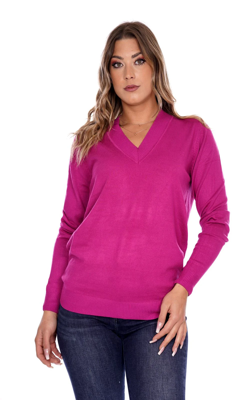 LIZALU Maglia rasata fucsia da donna in viscosa . Scollo a V