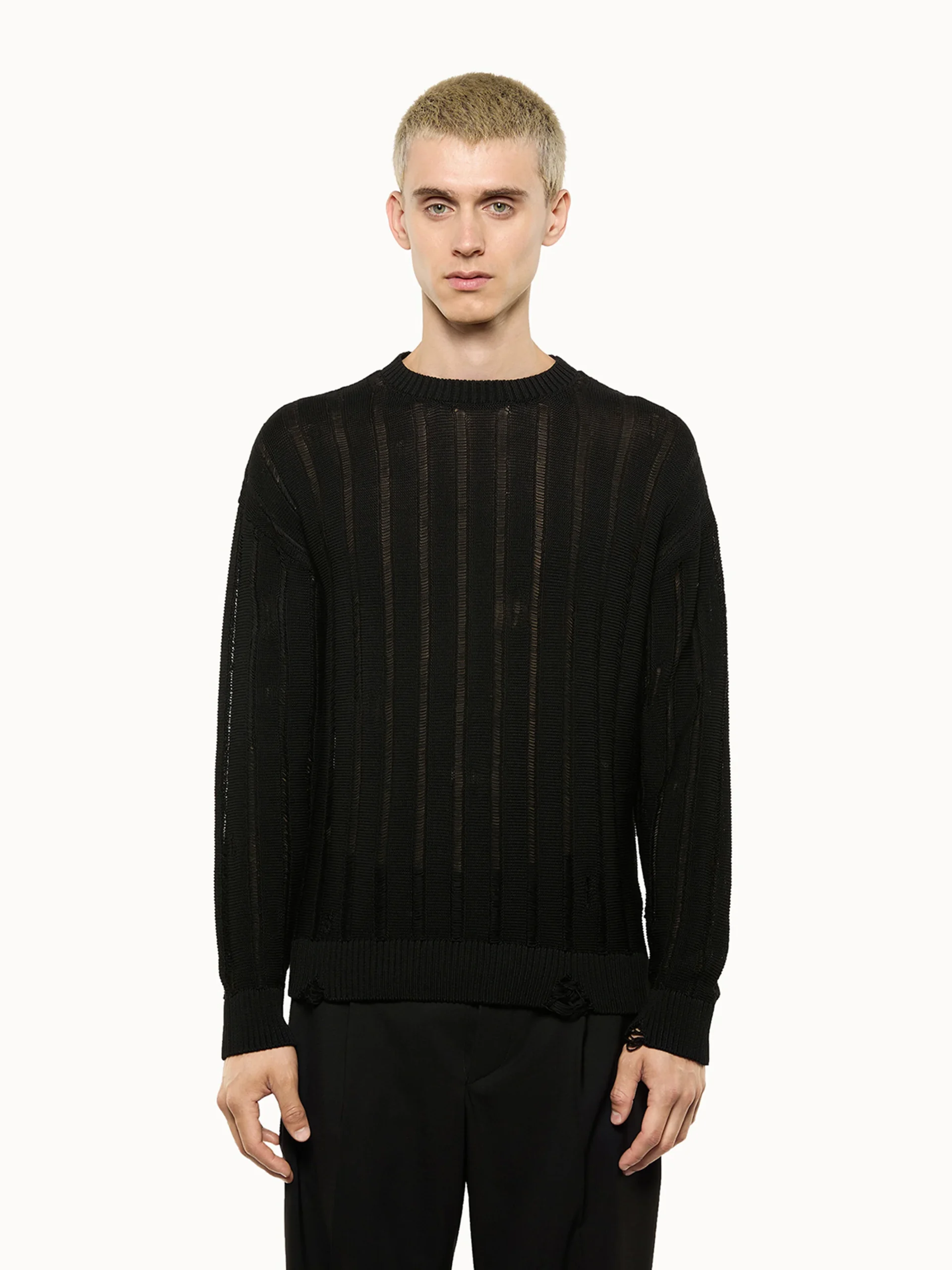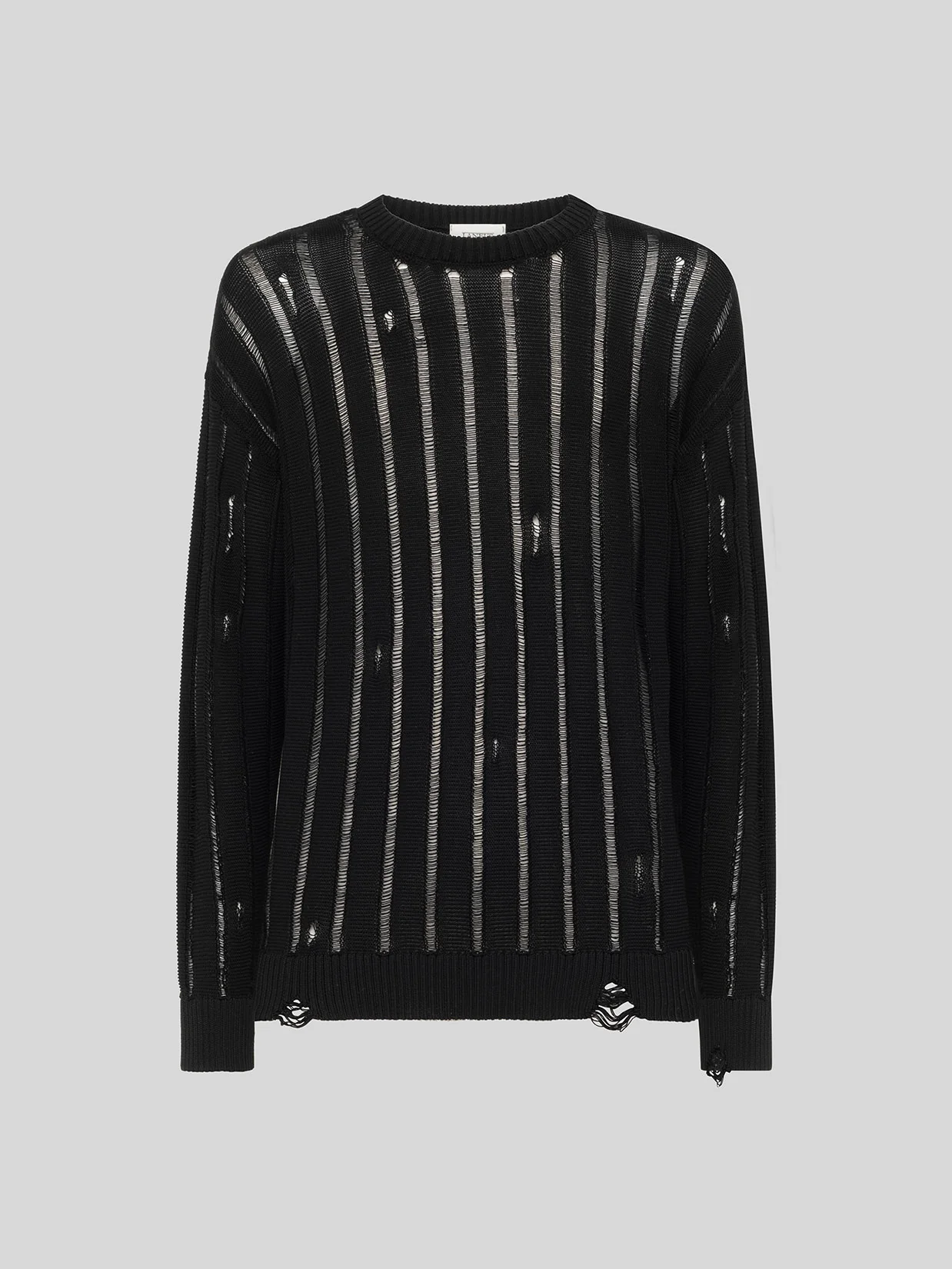 Maglia girocollo, realizzata in morbido filato di cotone tinta unita, con lavorazione intrecciata. La vestibilità è regular , con spalle leggermente scese e finiture a costine su polsi, fondo e collo. Made in Italy. 100% COTONE