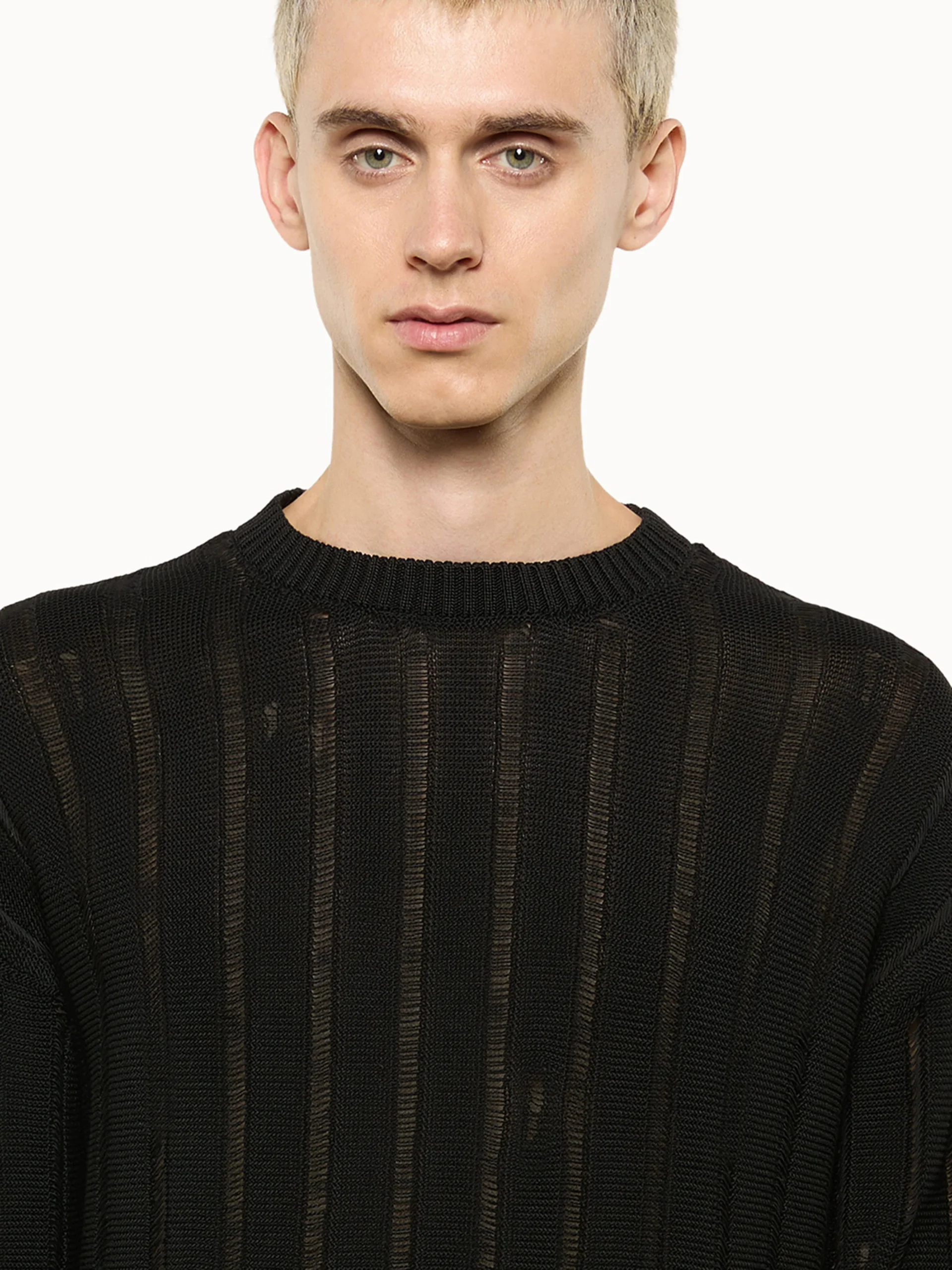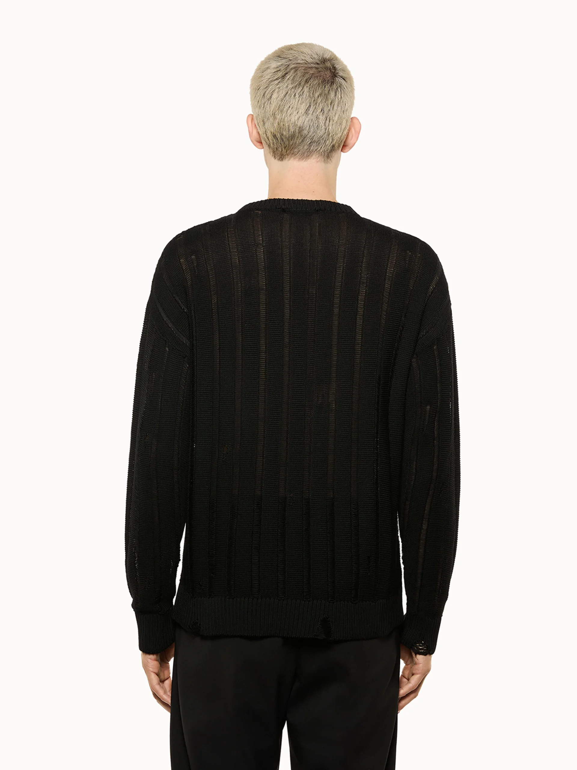 Maglia girocollo, realizzata in morbido filato di cotone tinta unita, con lavorazione intrecciata. La vestibilità è regular , con spalle leggermente scese e finiture a costine su polsi, fondo e collo. Made in Italy.