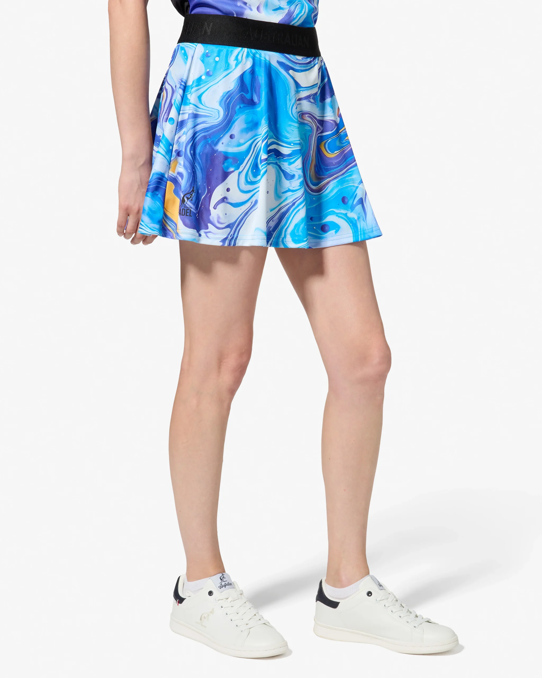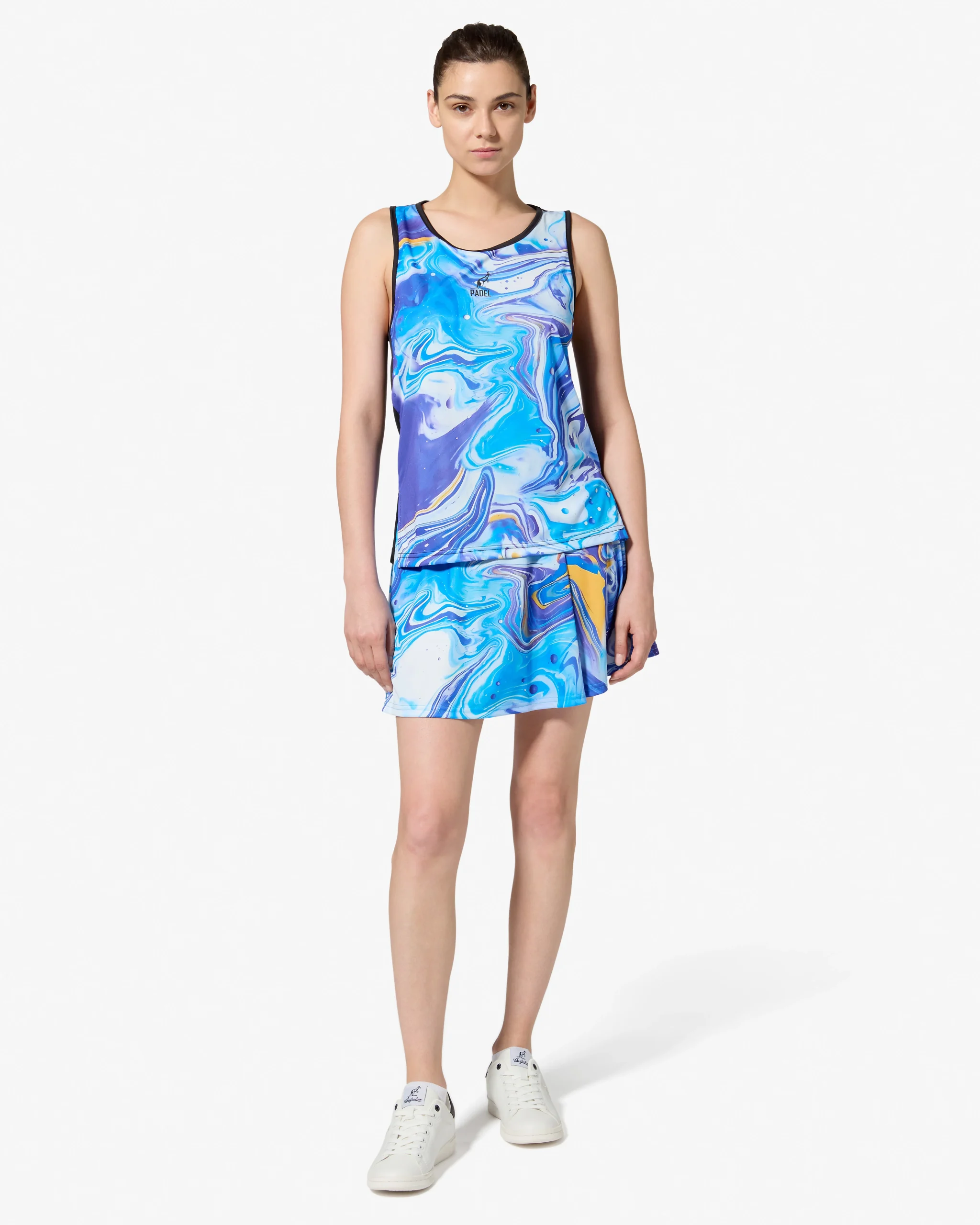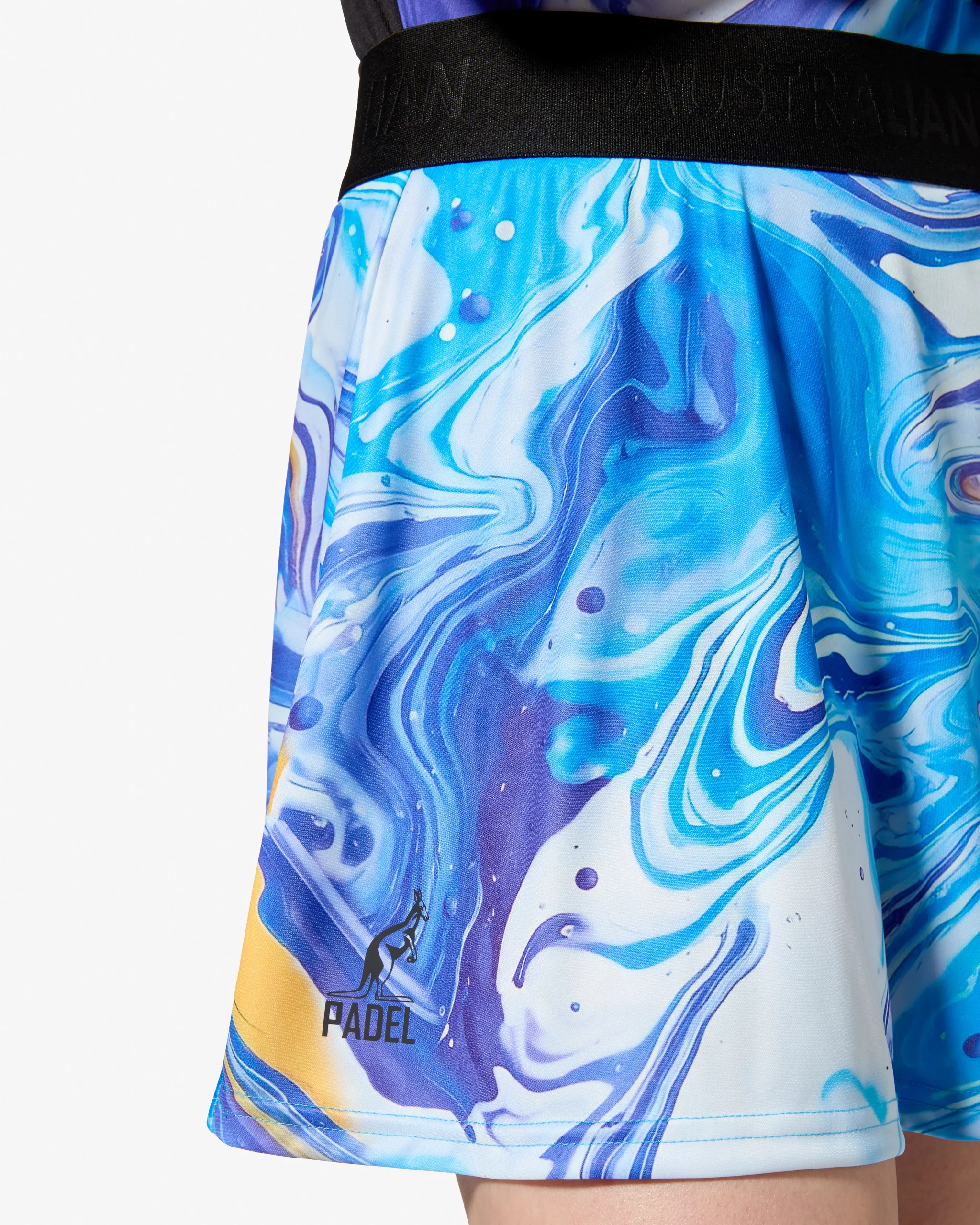 – Gonna in tessuto “ace” con tecnologia traspirante– Stampa sublimatica– Elastico in vita personalizzato– Sottopantaloncino aderente in tessuto “ace” con doppia tasca latelare– Logo stampato– Made in Italy