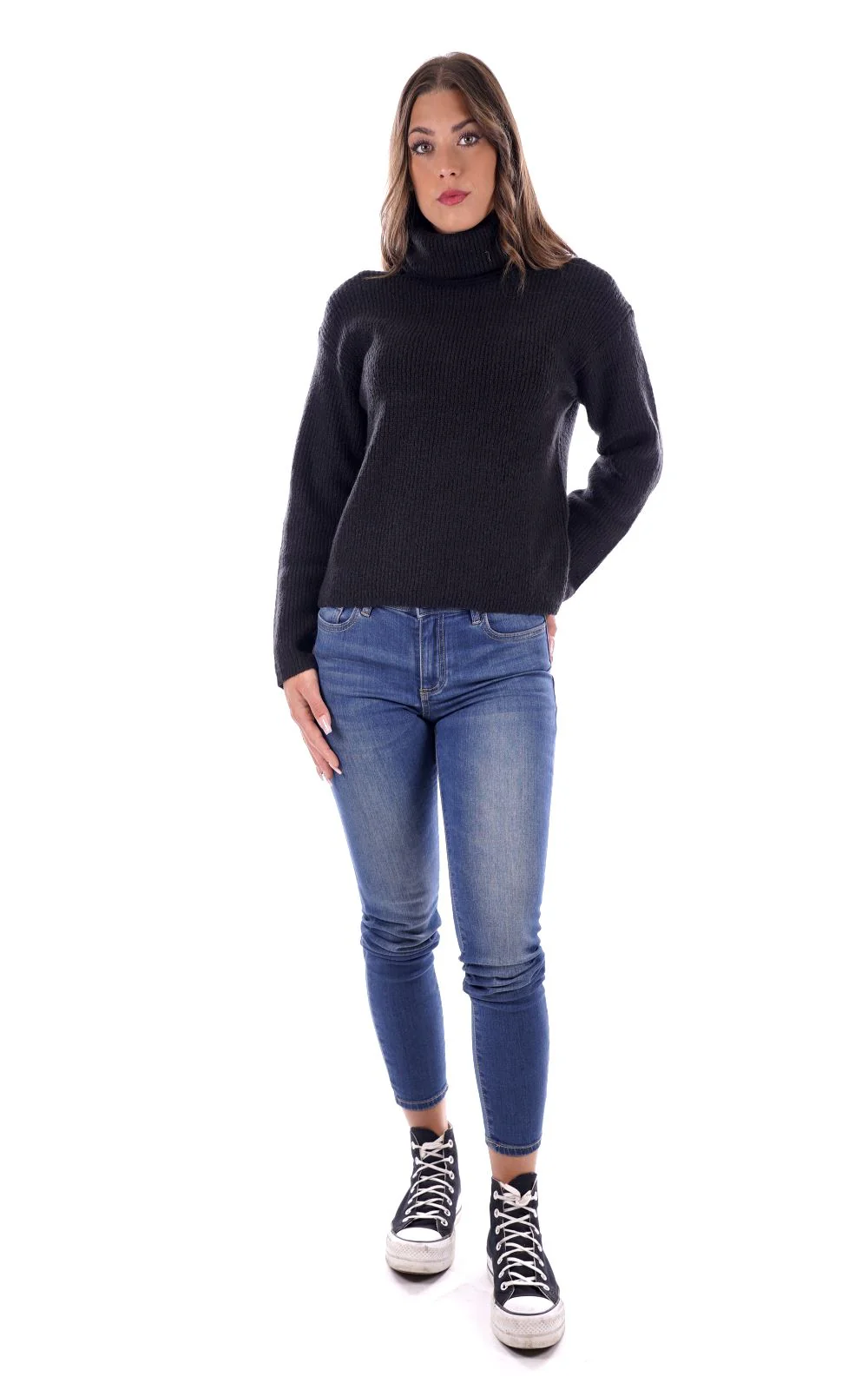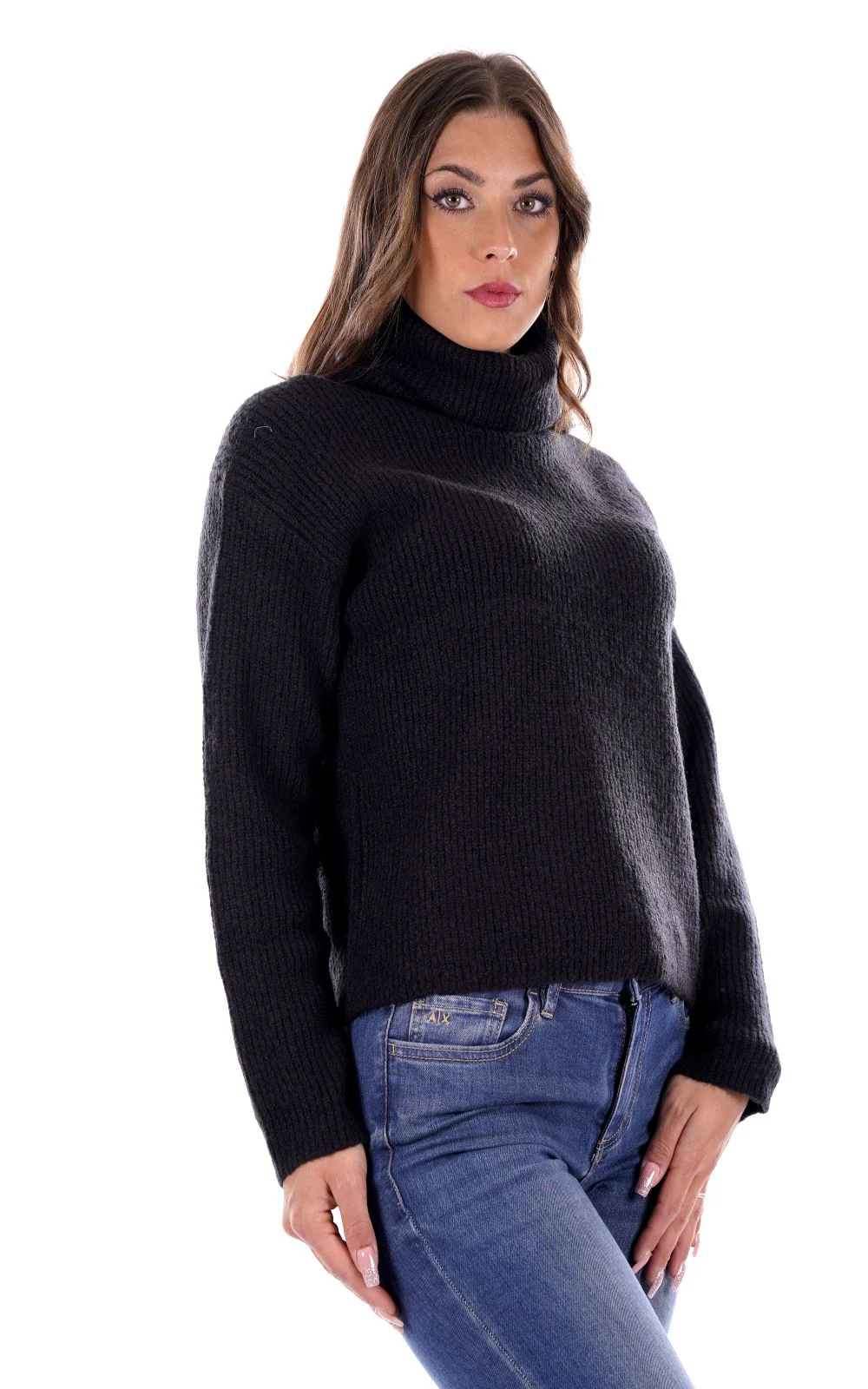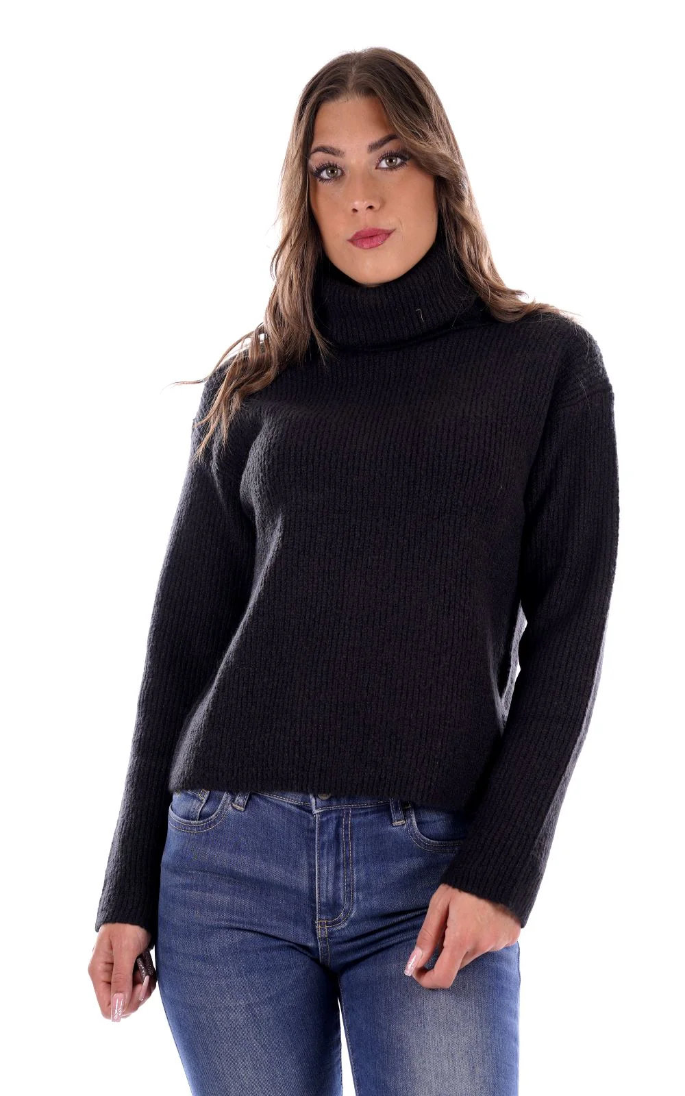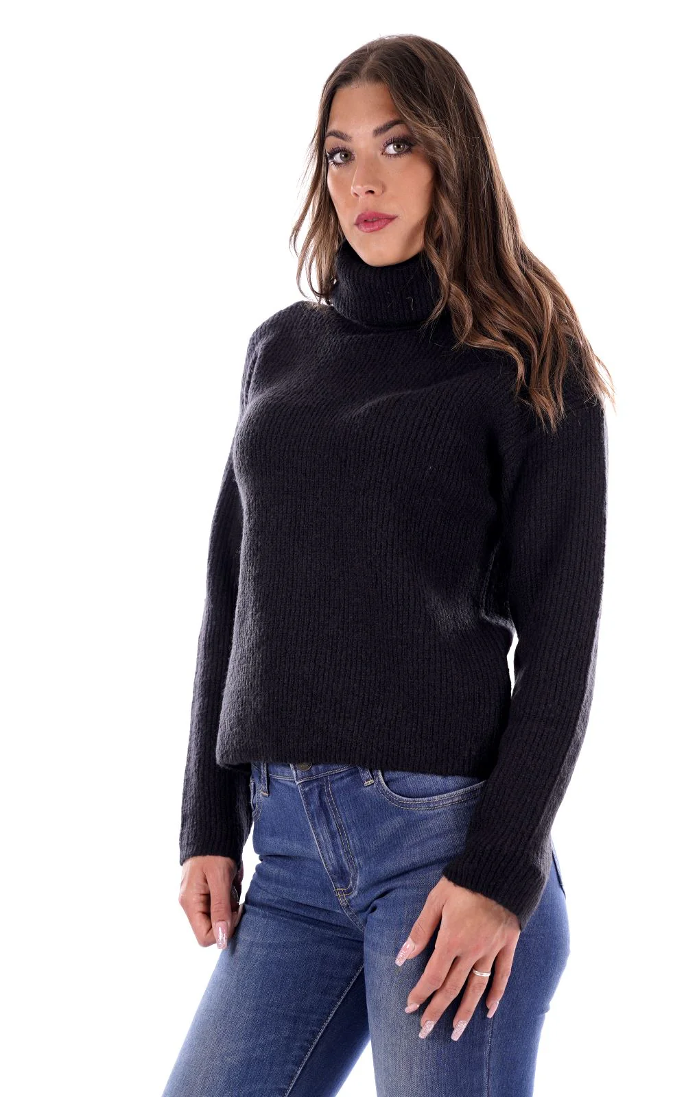 MARK UP Maglione dolcevita nero da donna co in tessuto soft touch manocalda . Con collo alto