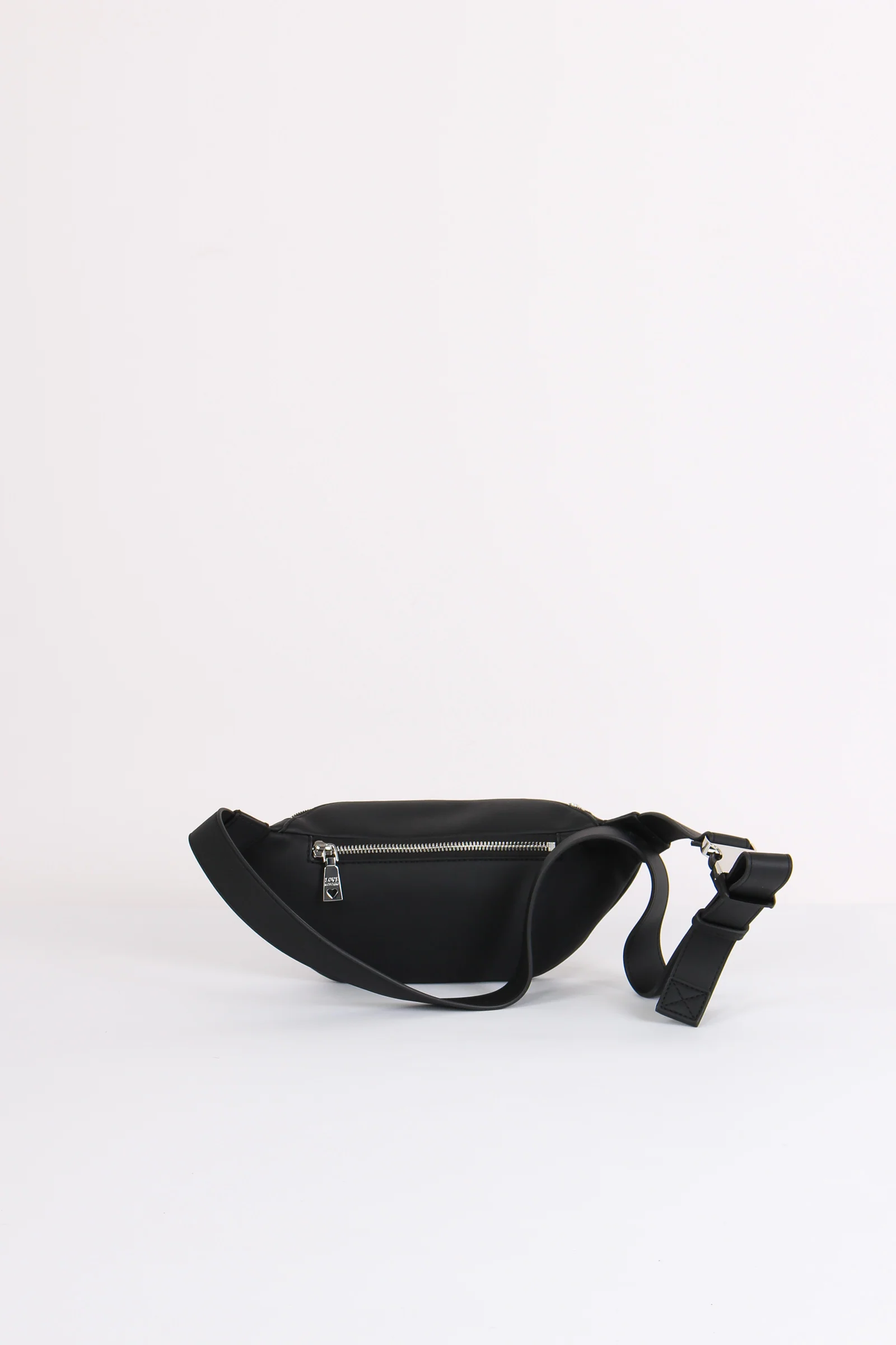 materiale: ecopelle chiusura: zip tracolla: no dettagli: marsupio con logo sfumato sul davanti. Zip centrale con scomparto e zip con tasca a filetto sul dietro. Portabile sia a tracolla che in vita grazie al cinturino regolabile. misure: altezza 13cm lunghezza 28cm e profondità 7cm