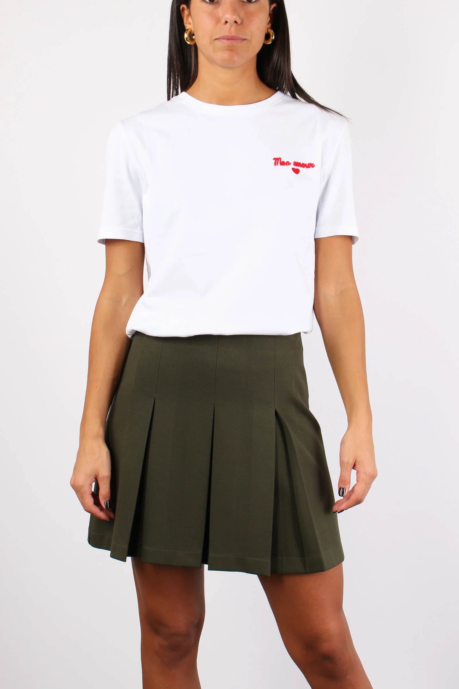 Minigonna Twill Pieghe Militare