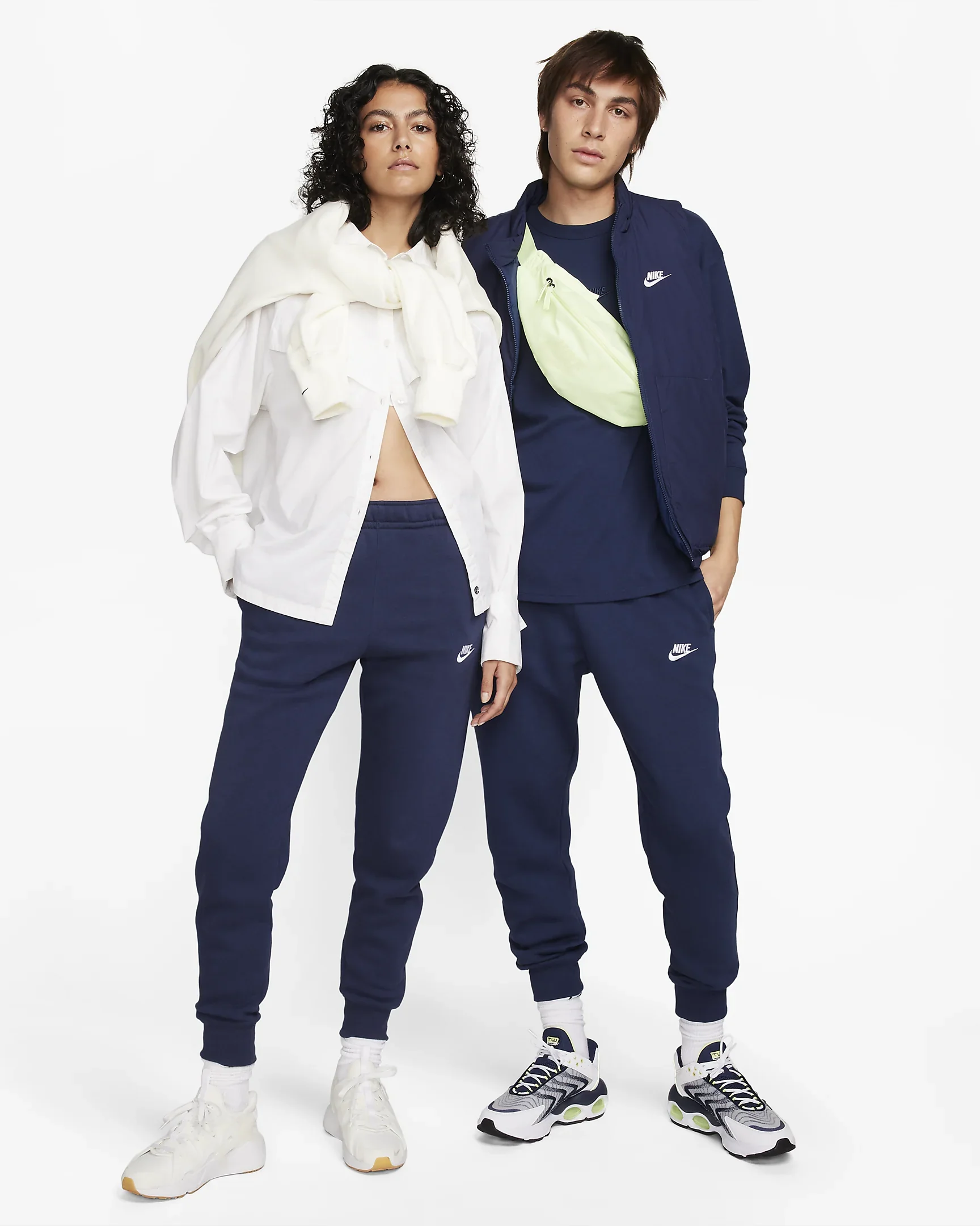 NIKE Pantalone di tuta blu unisex in cotone felpato . Logo piccolo ricamato Dettagli: