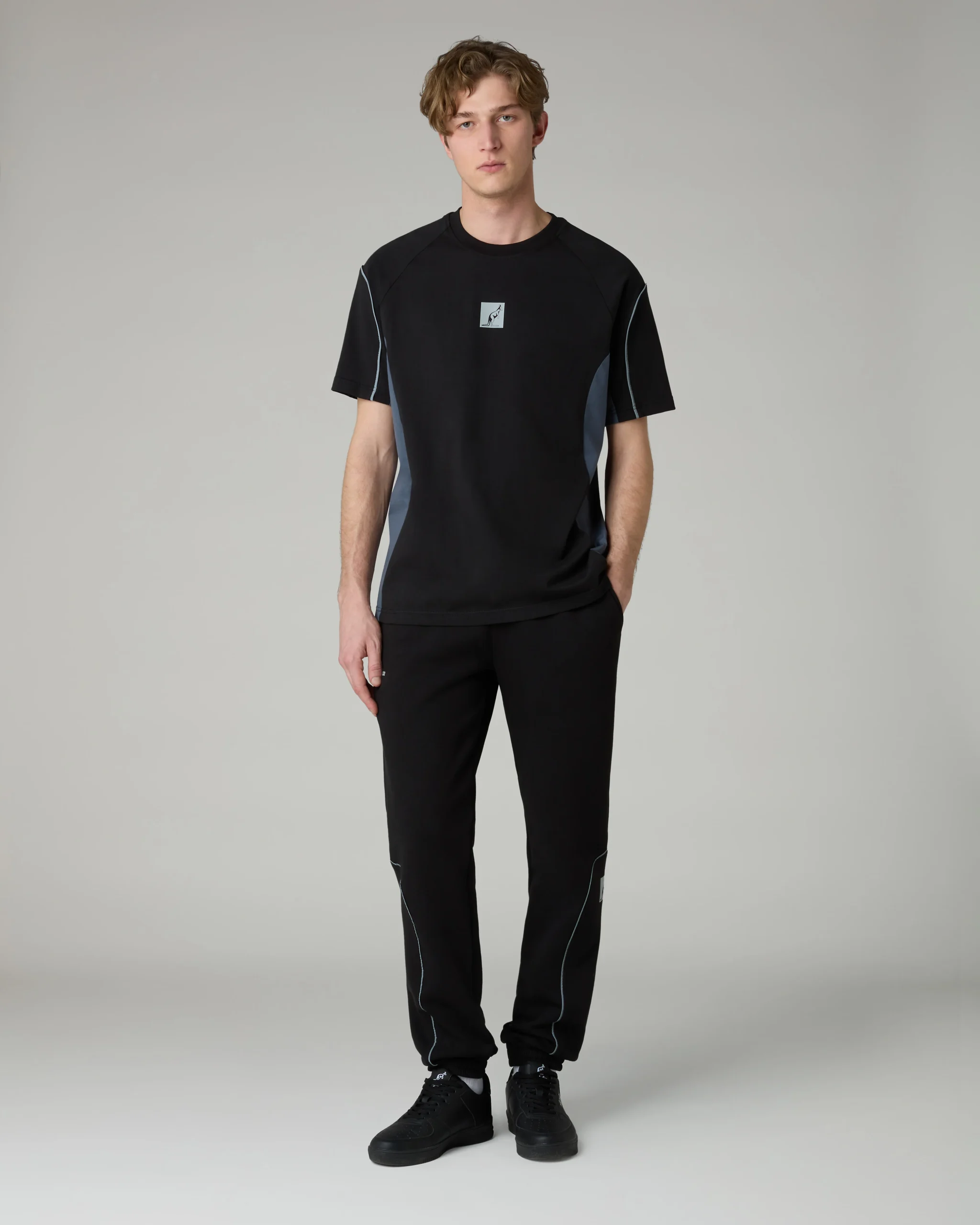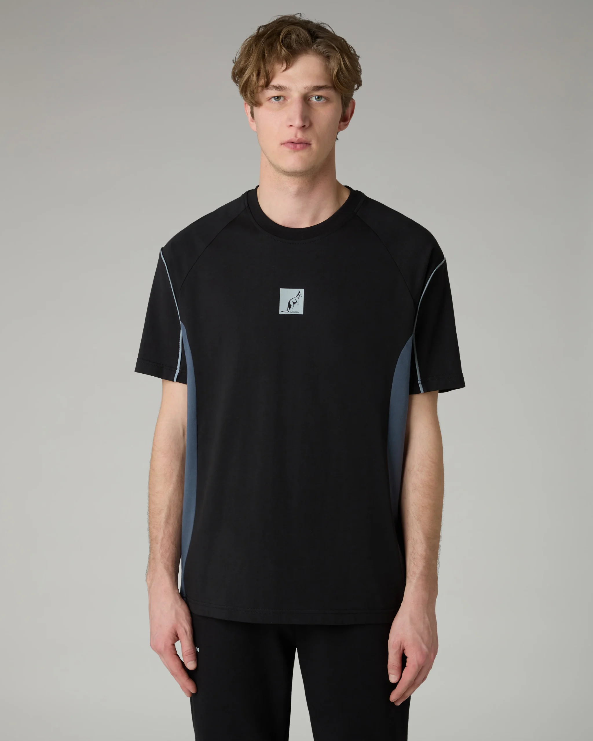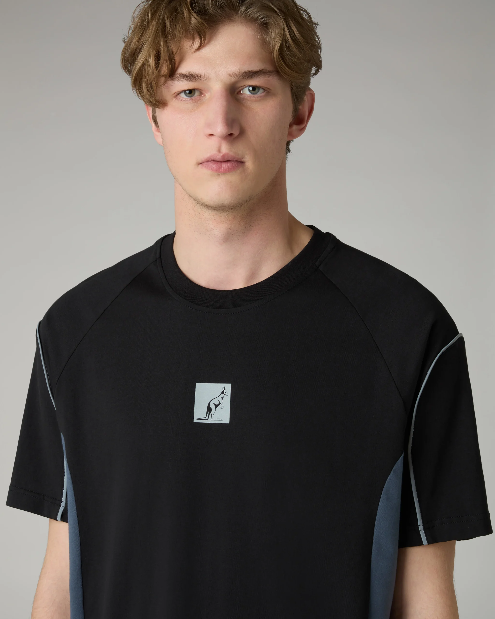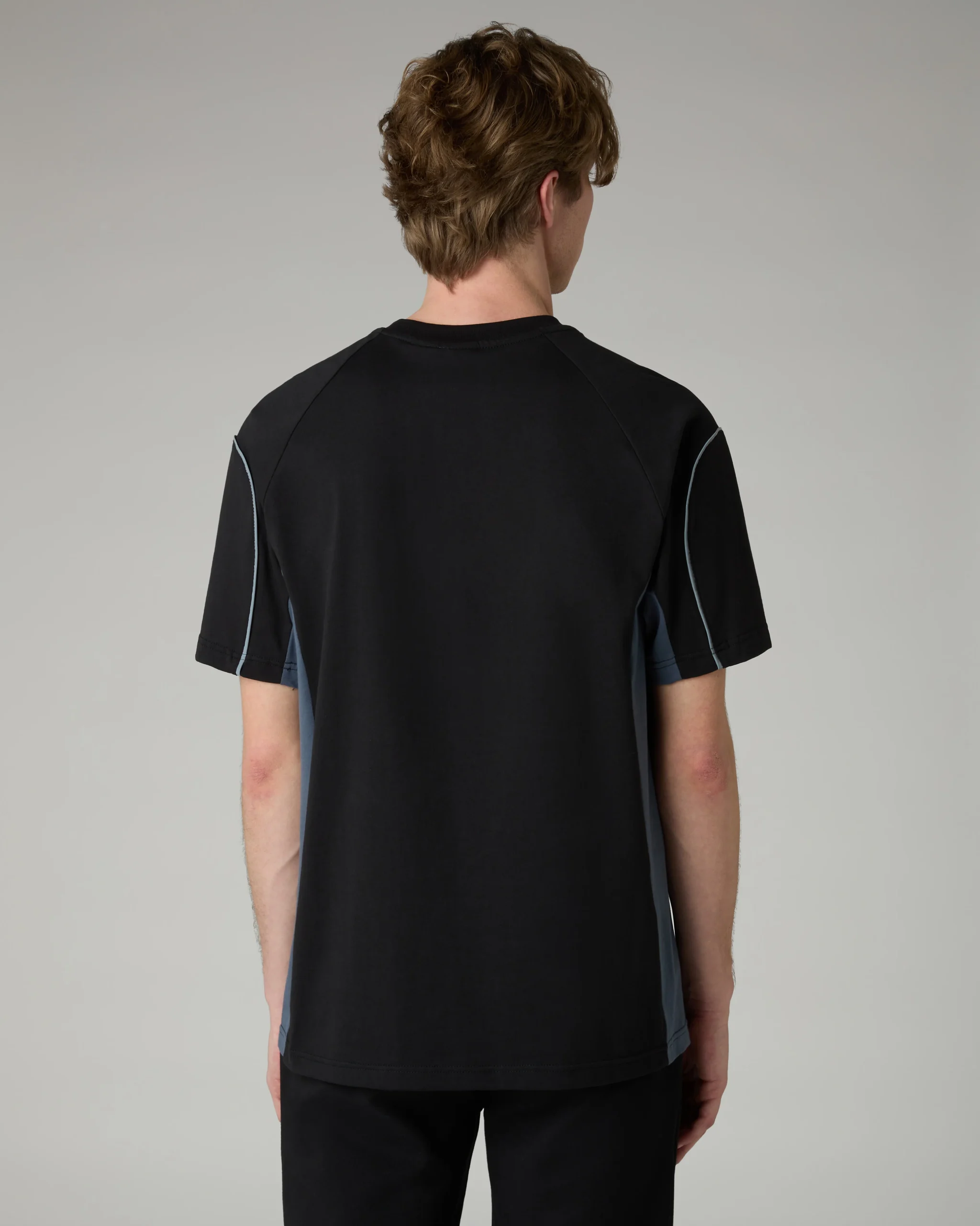 – T-shirt in cotone– Regular fit– Collo in costina elasticizzata– Inserti sui fianchi in contrasto– Piping rinfrangente– Logo rinfrangente– Made in Italy
