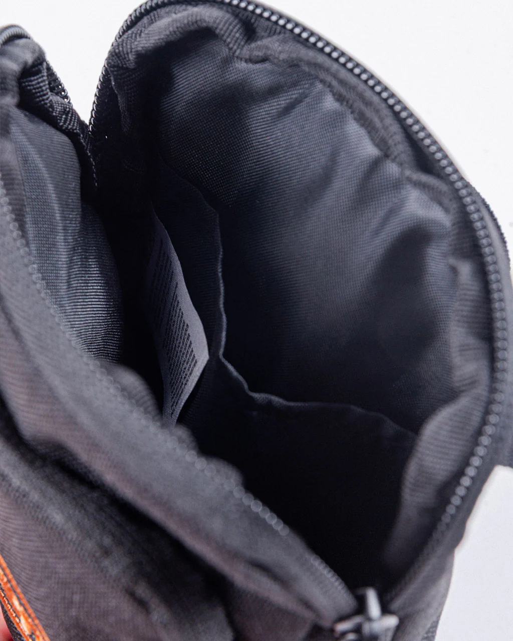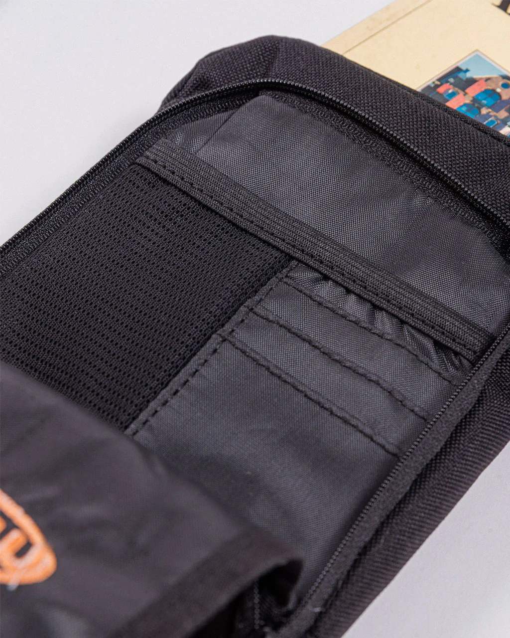 Borsello realizzato con tessuto resistente 100% poliestere 600D per garantire il massimo comfort e durevolezza. La tracolla regolabile e le tasche organiser interne rendono questo prodotto comodo da trasportare, ben organizzato e versatile. Infatti il nuovo Travel Pouch è imbottito internamente, è dotato di una tasca per i documenti personali, uno scomparto organiser ed è compatibile con smartphone. Il design essenziale di questo borsello è valorizzato dal ricamo a contrasto della grafica Nostalgia, ovvero il risultato del nuovo design che abbiamo realizzato in occasione di questo nuovo drop.