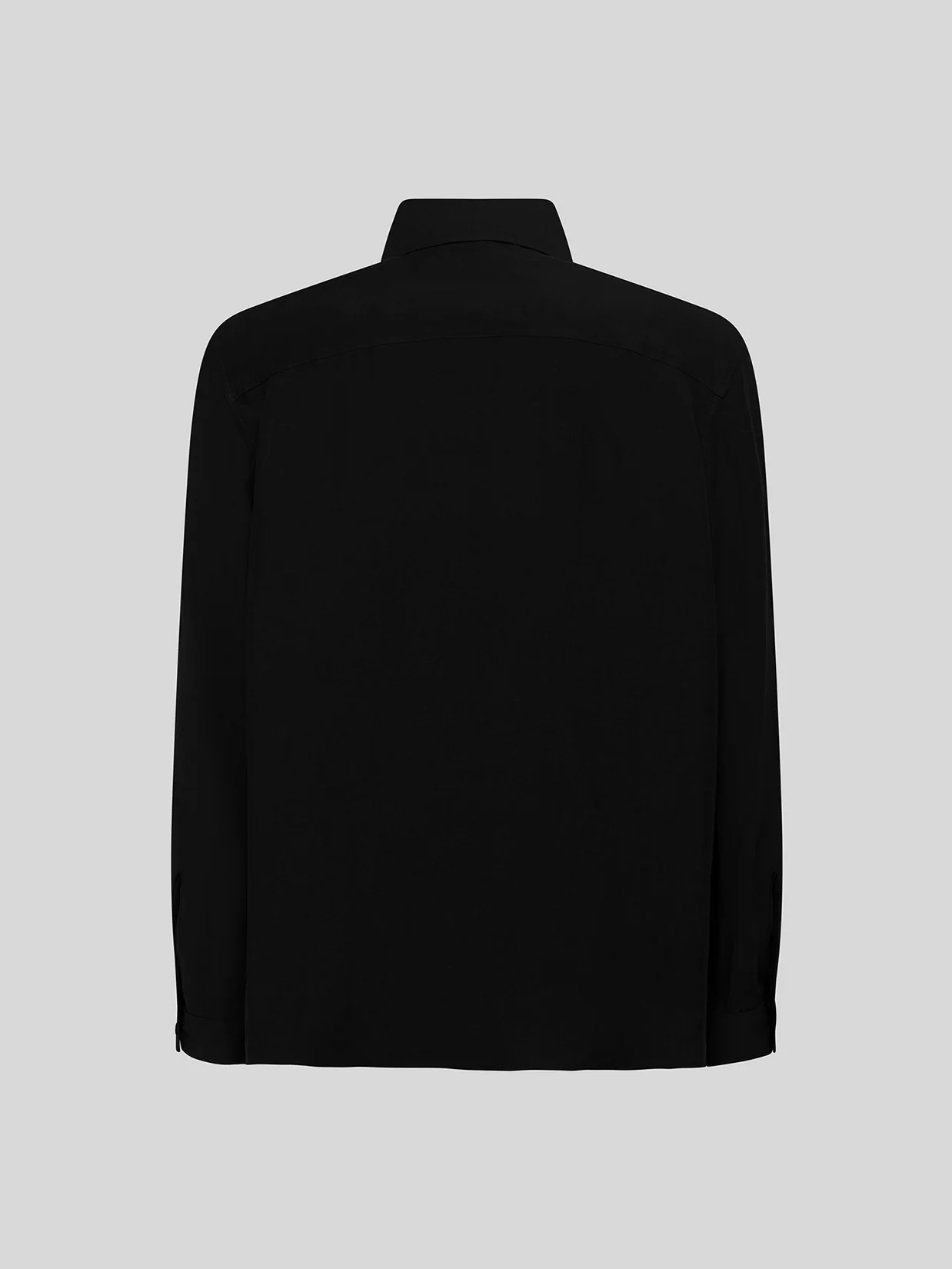 Overshirt in viscosa e lino con bottoni frontali. Doppia maxi tasca caratterizzata da ricamo ton sur ton. Vestibilità over. Made in Italy.