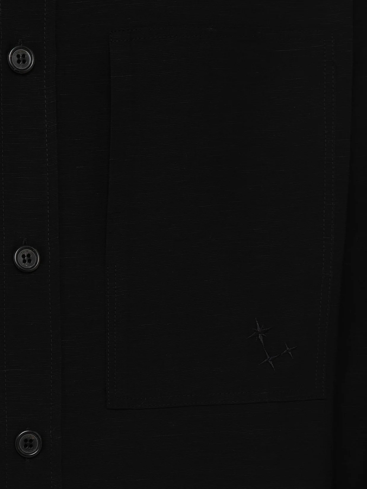Overshirt in viscosa e lino con bottoni frontali. Doppia maxi tasca caratterizzata da ricamo ton sur ton. Vestibilità over. Made in Italy. 77% VISCOSA 23% LINO