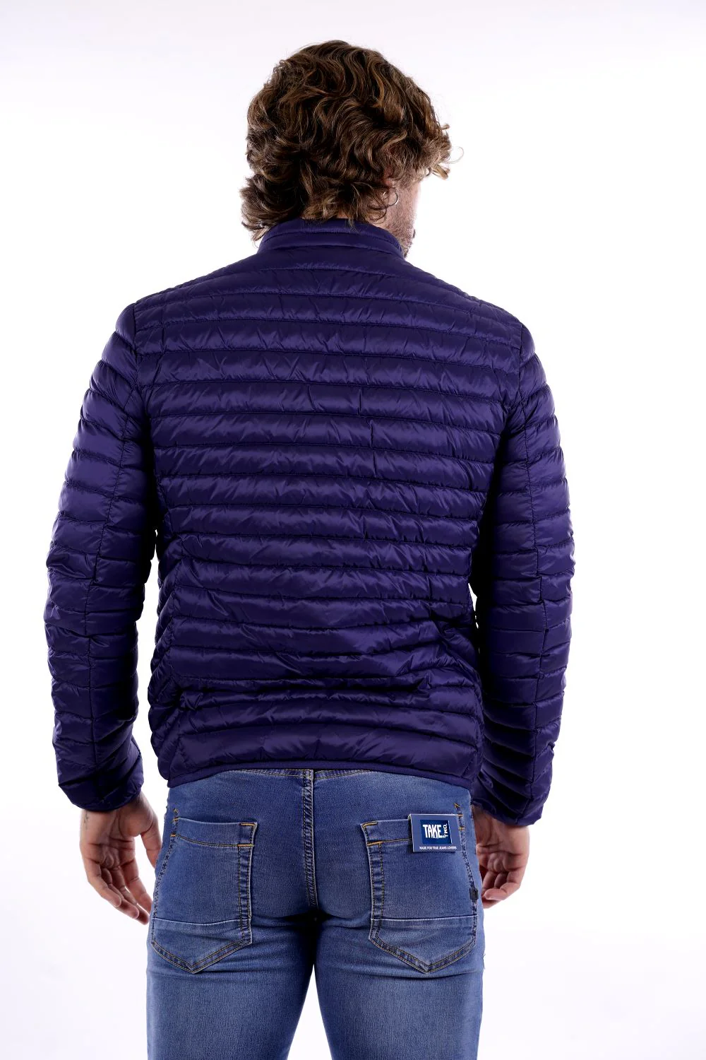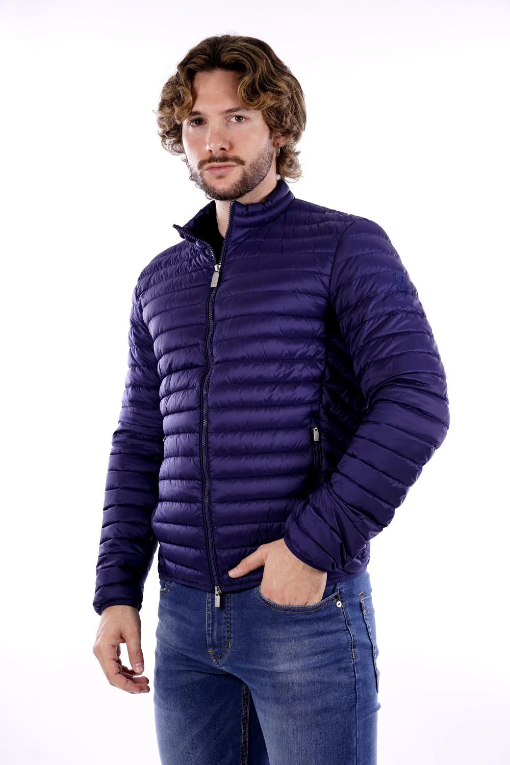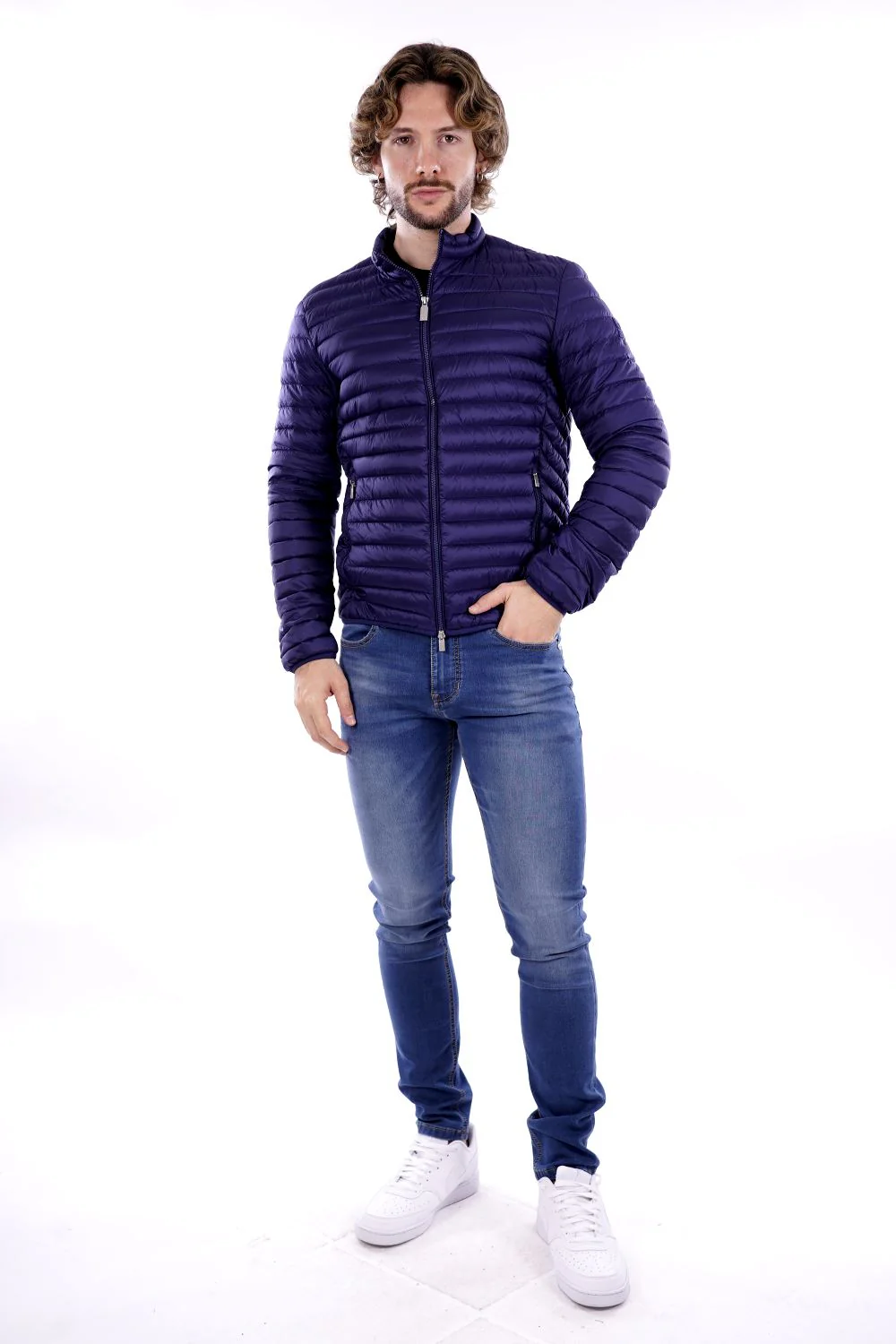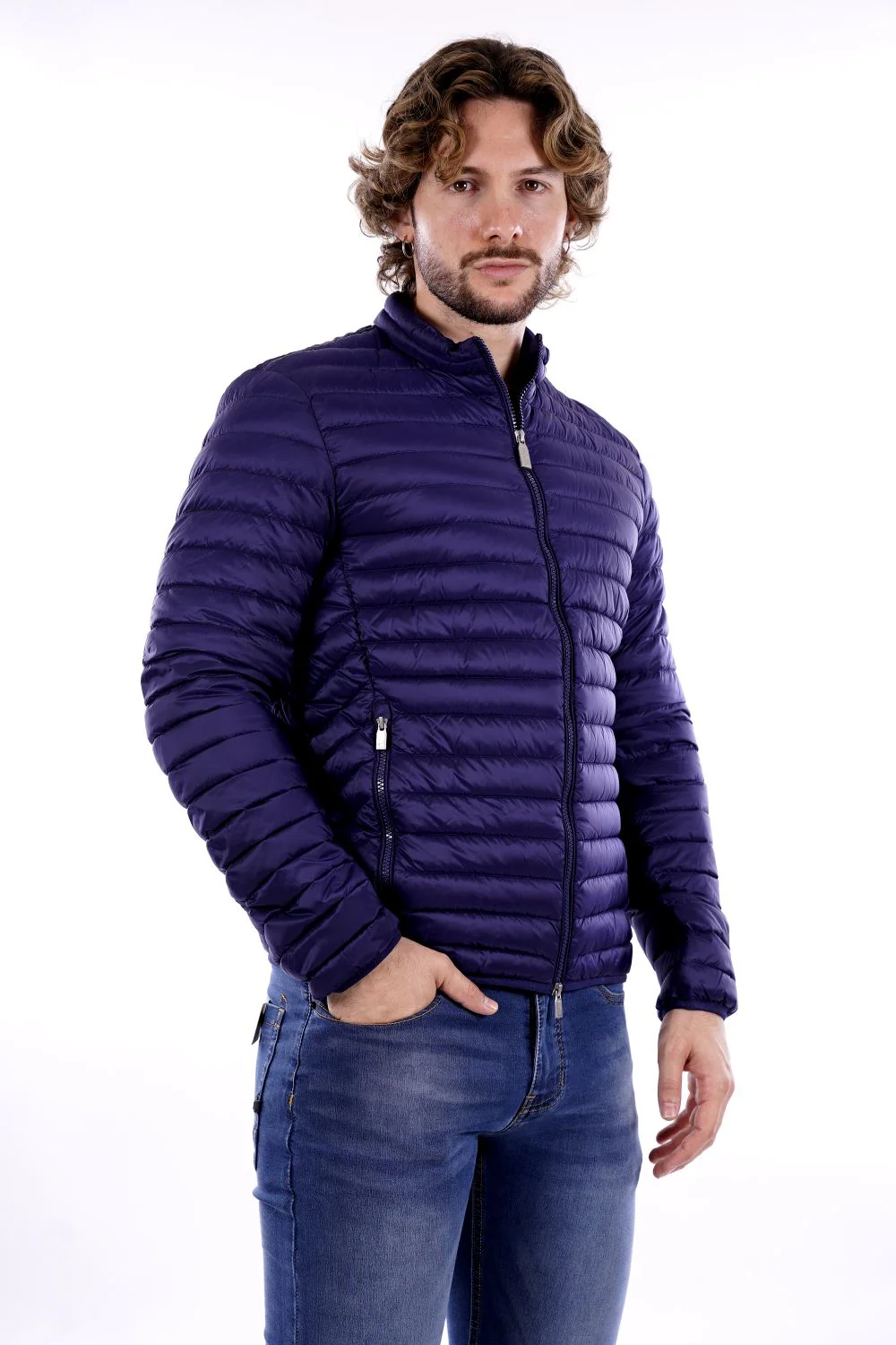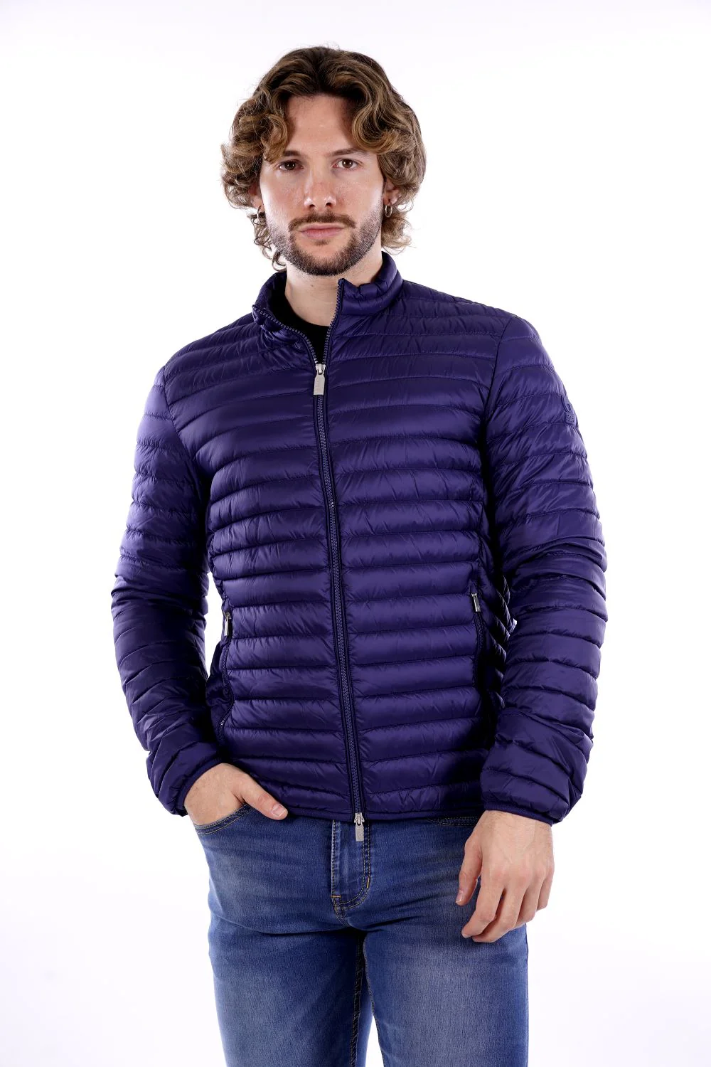 CIESSE PIUMINI Piumino blu da uomo in tessuto tecnico . Modello trapuntato a canale con chiusura lampo e due tasche . Logo CIESSE tono su tono sulla spalla sinistra