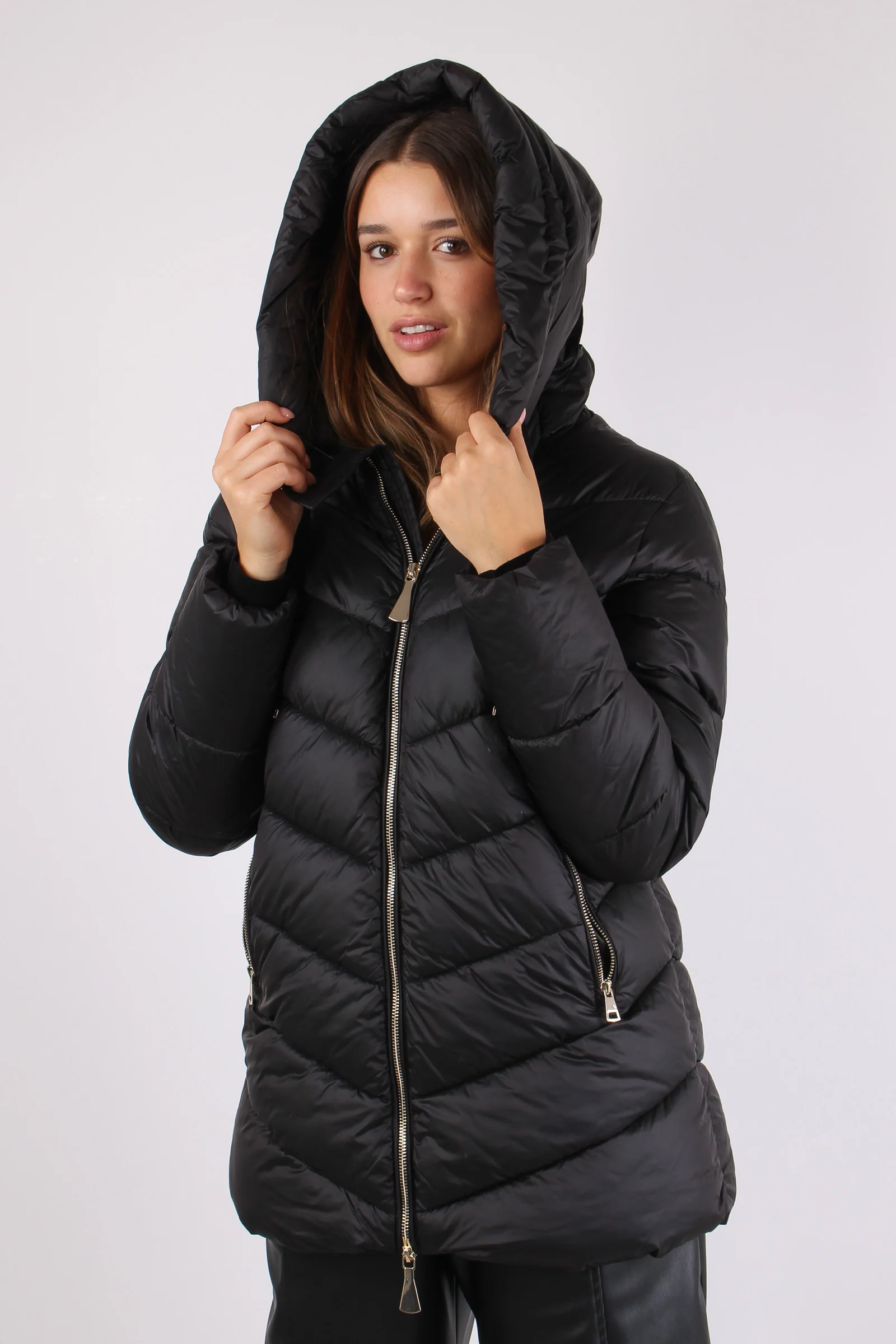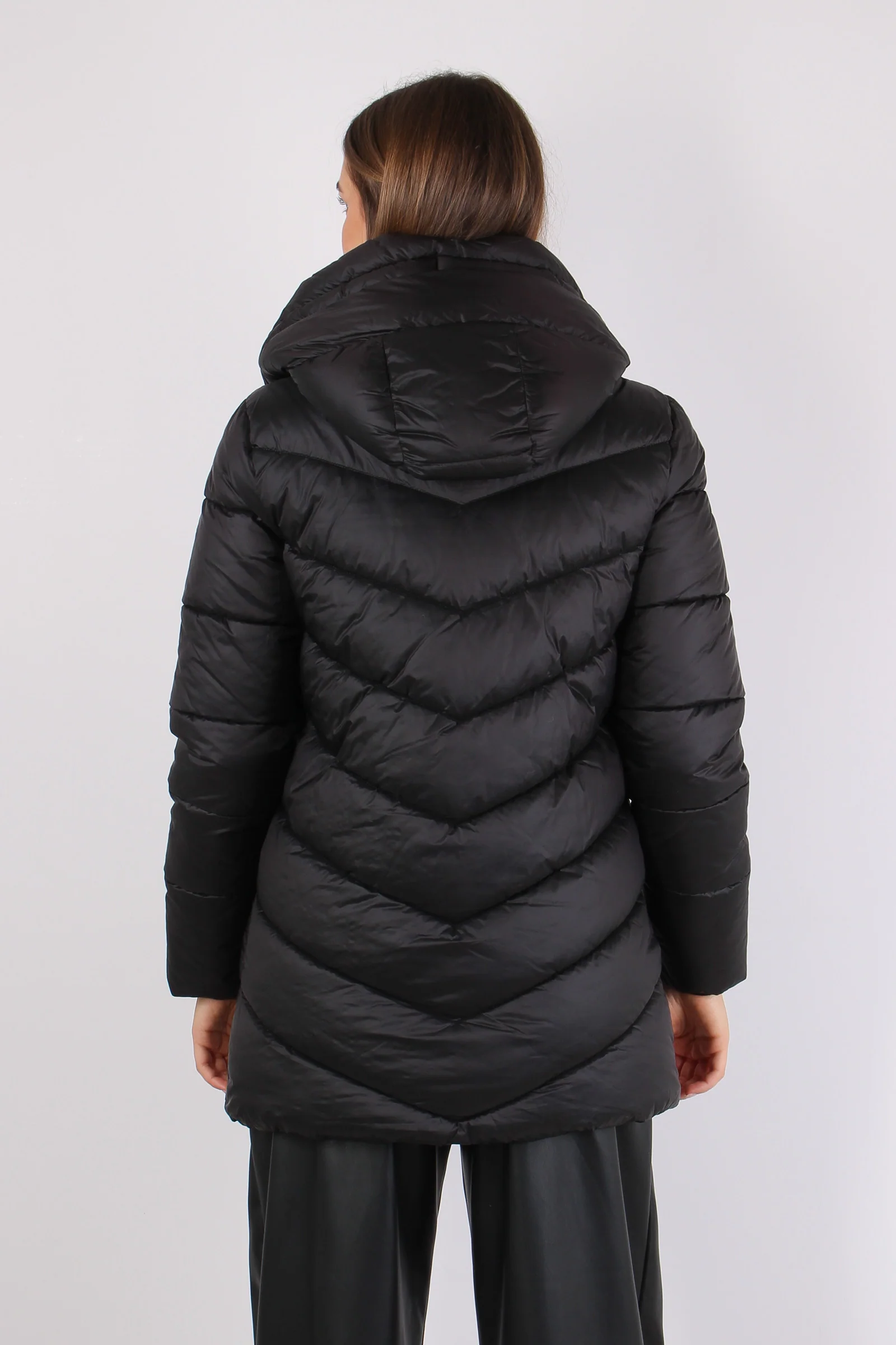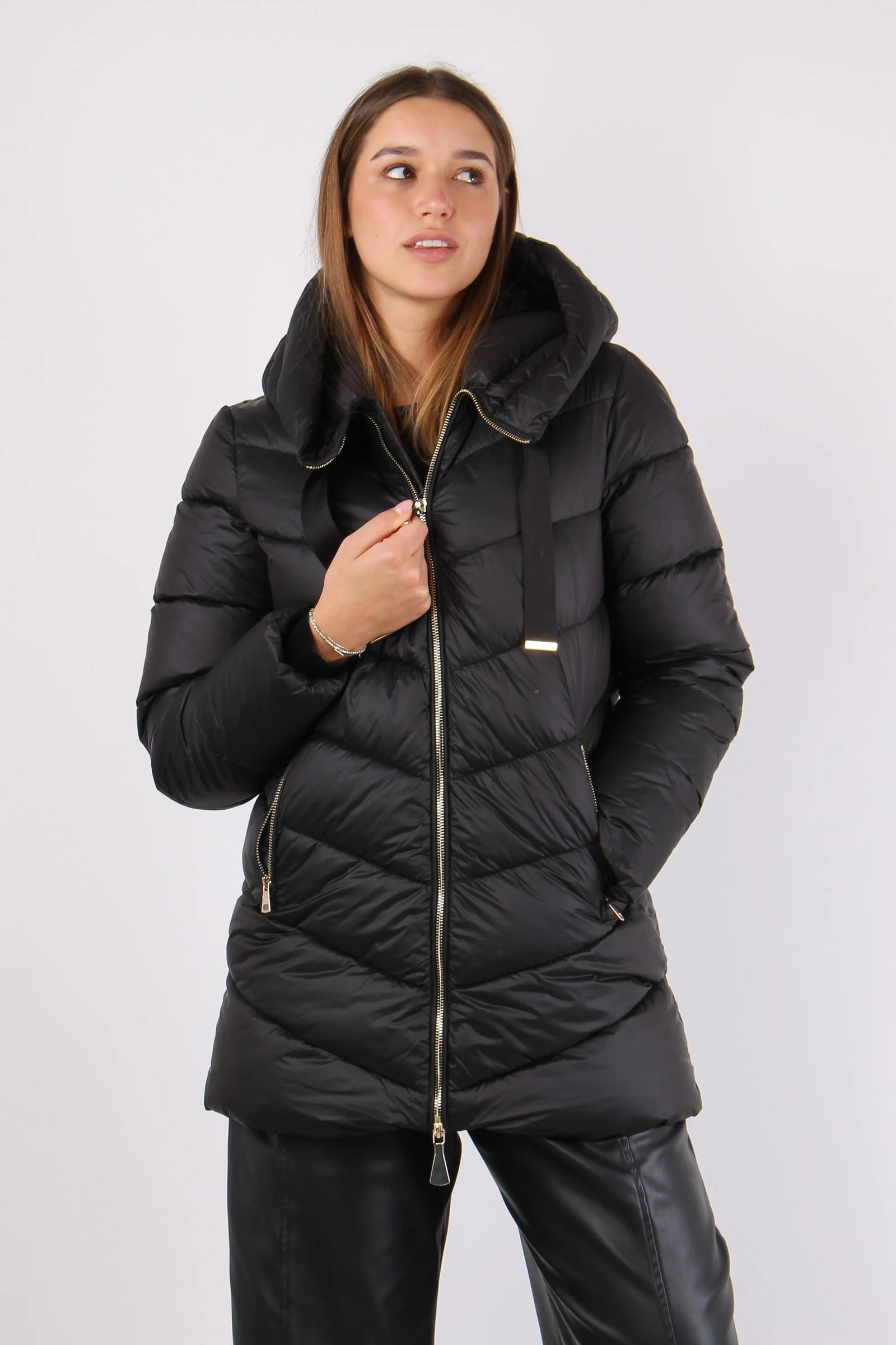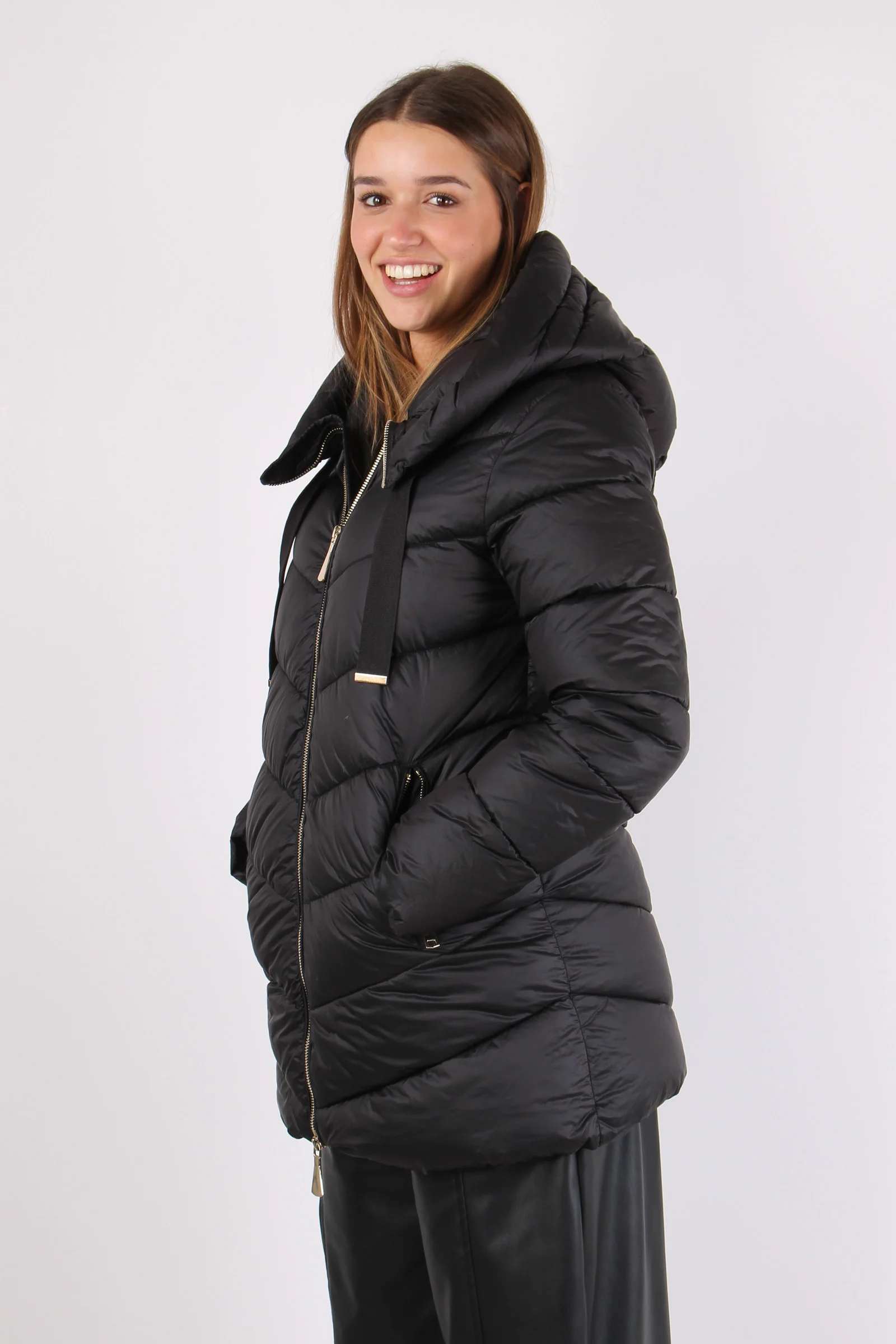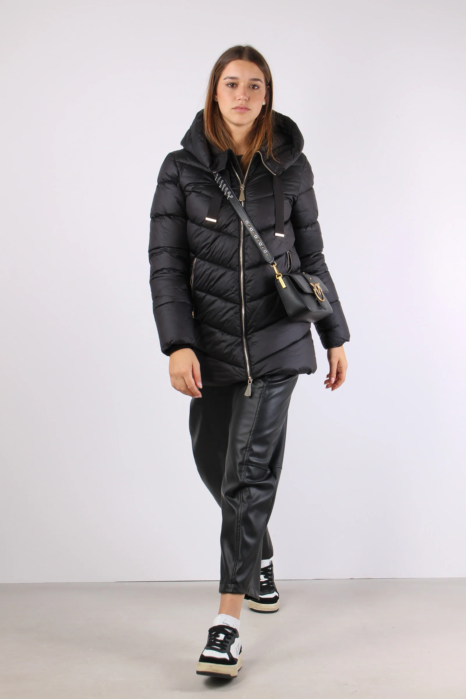 Piumino con imbottitura sintetica dal taglio sfiancato. I dettagli in metallo color oro donano luce al capo. E’ dotato di un cappuccio con una forma molto avvolgente. Composizione articolo: esterno 100% nylon fodera 100% nylon imbottitura 100% poliestere La modella è alta 1 75 e indossa una t