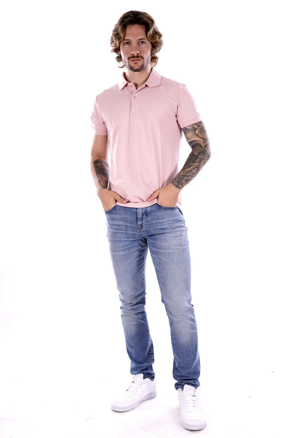 GIANNI LUPO Polo maniche corte e colletto classico rosa da uomo in cotone