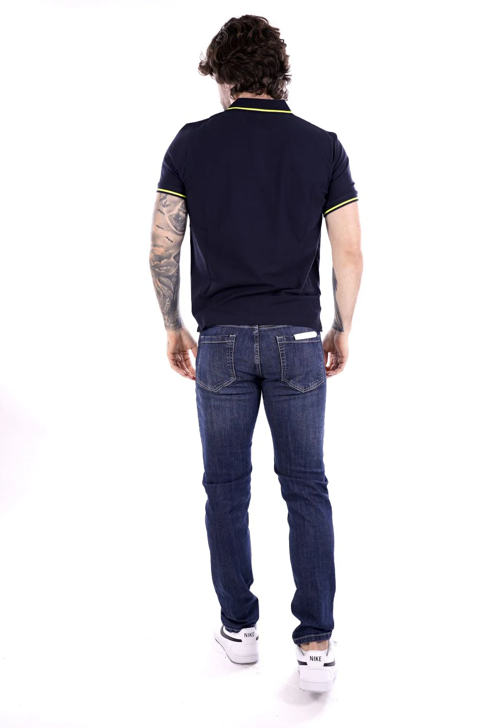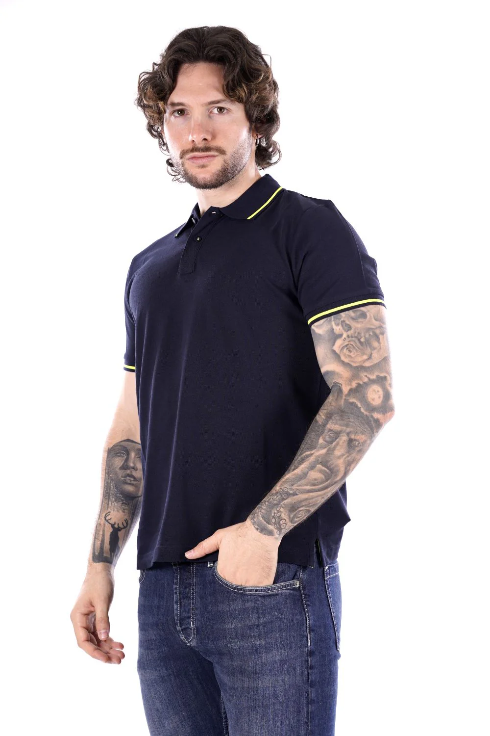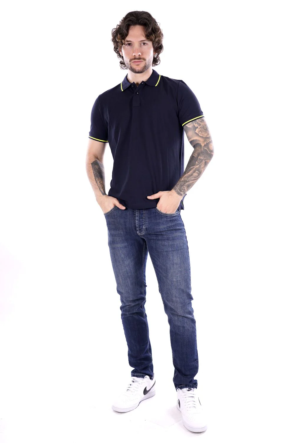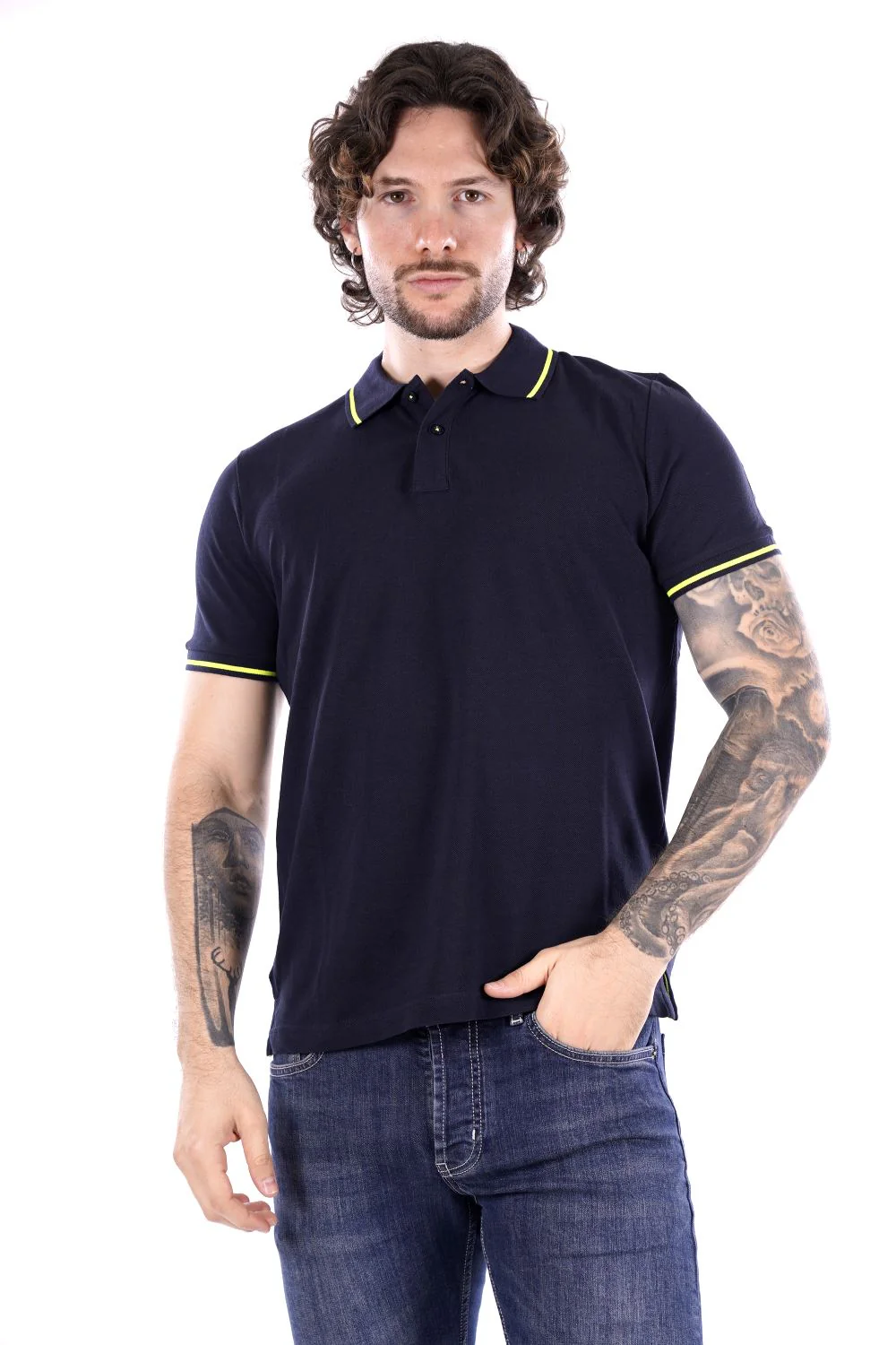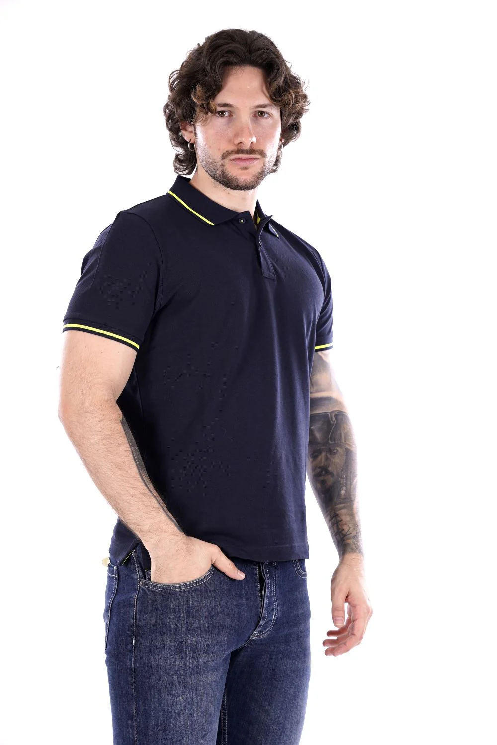 MARK UP Polo a maniche corte blu scuro da uomo in cotone . Modello con colletto classico e due bottoni