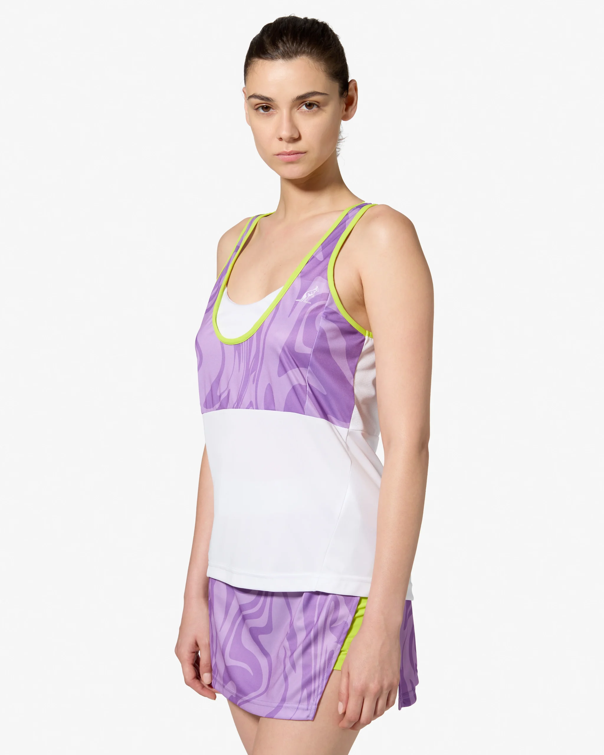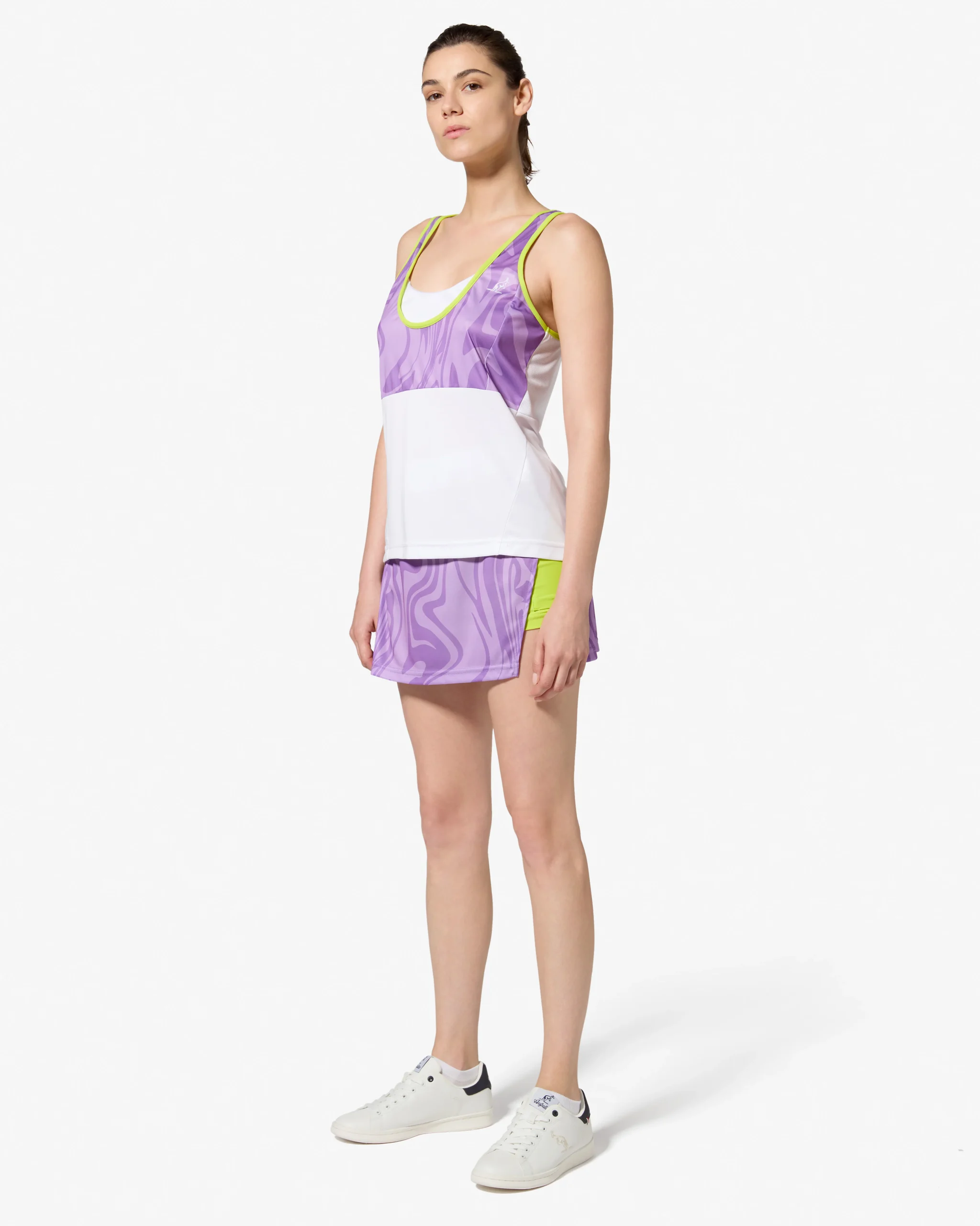 – T-shirt senza maniche in tessuto “ace”, con tecnologia traspirante– Inserto sul retro in tessuto “web”, che ne aumenta la traspirabilità– Inserto stampato all over sul davanti– Taglio ergonomico, che unisce design e funzionalità– Bordatori in contrasto– Logo stampato – Made in Italy