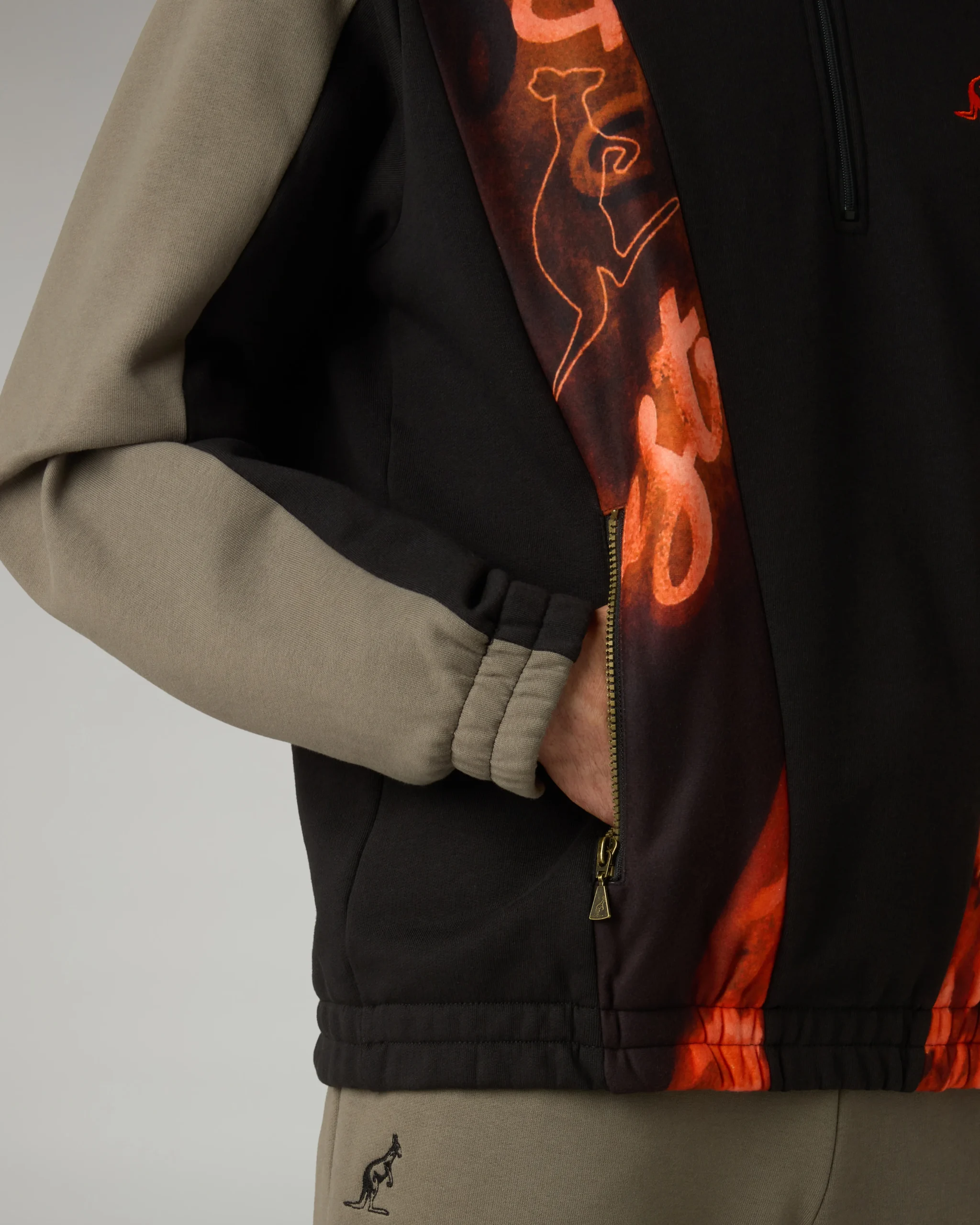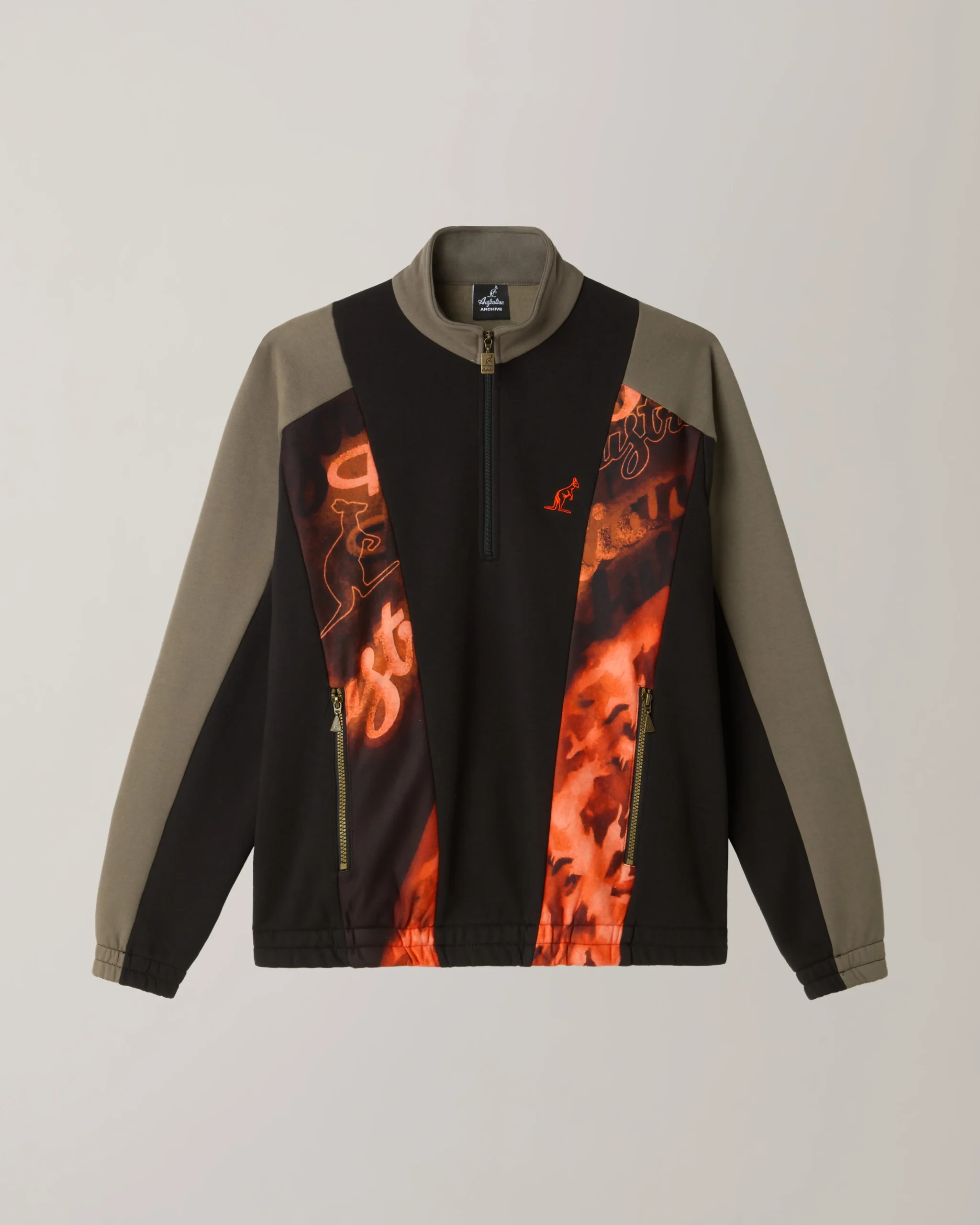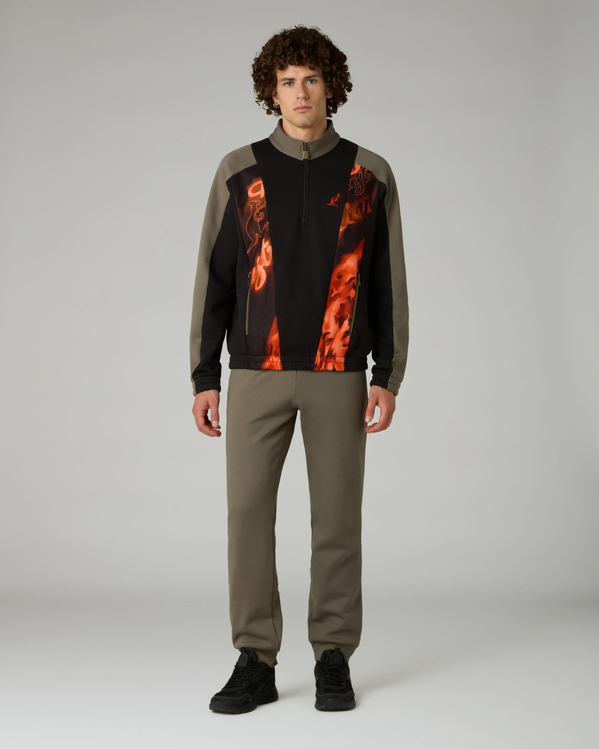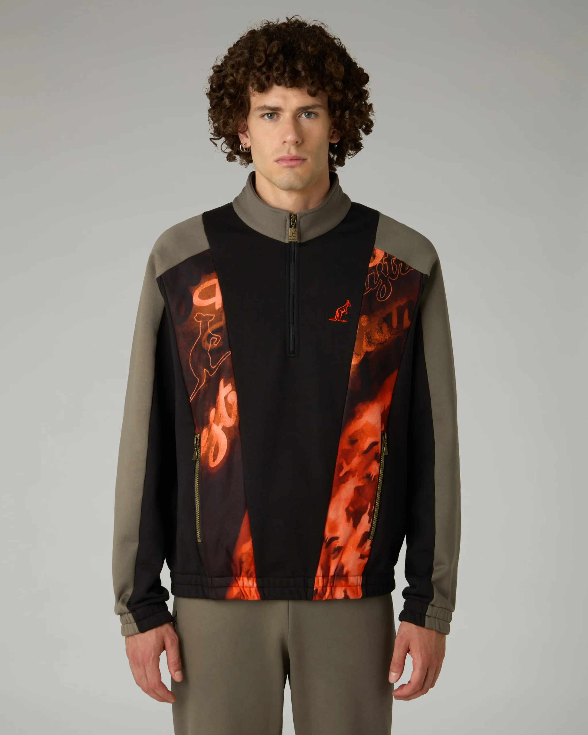 – Felpa con mezza zip– Inserti sul davanti in sabrinda stampato– Tasche con zip– Elastico al fondo– Loghi ricamati davanti e dietro– Made in Italy