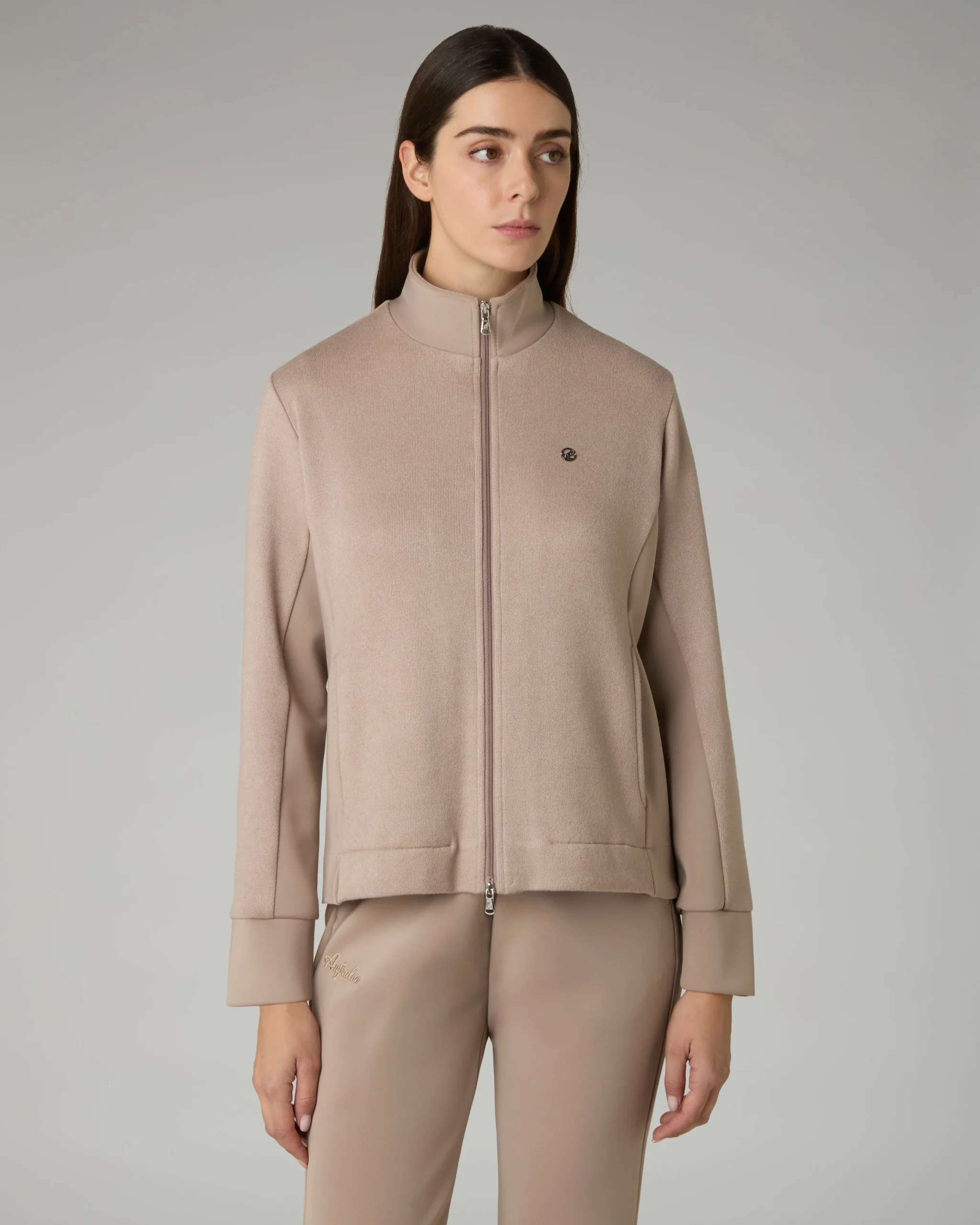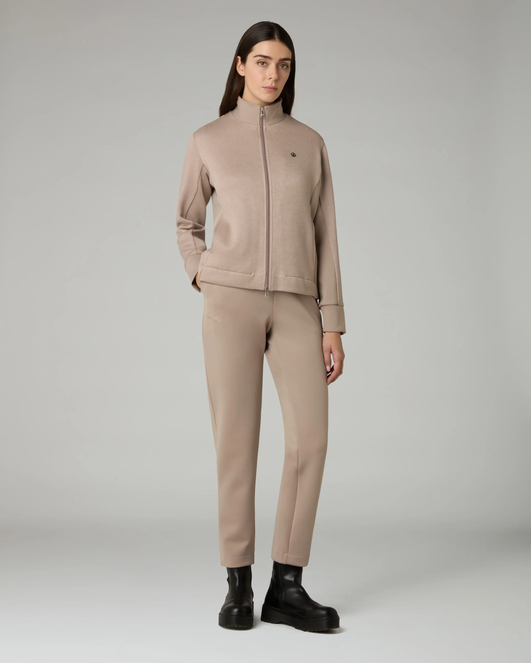 Tuta in morbido tessuto minou e confortevole scubaGiacca: – Tessuto a maglia Minou mano morbida con inserti in Scuba– Full zip con doppio cursore– Tasche no zip nel fianchetto davanti– Fondo diritto– Placchetta canguro logoPantalone: – Tessuto in Scuba con piccoli inserti in Minou– Modello a sigaretta– Elastico in vita con coulisse regolabile– Logo ricamatoMade […]