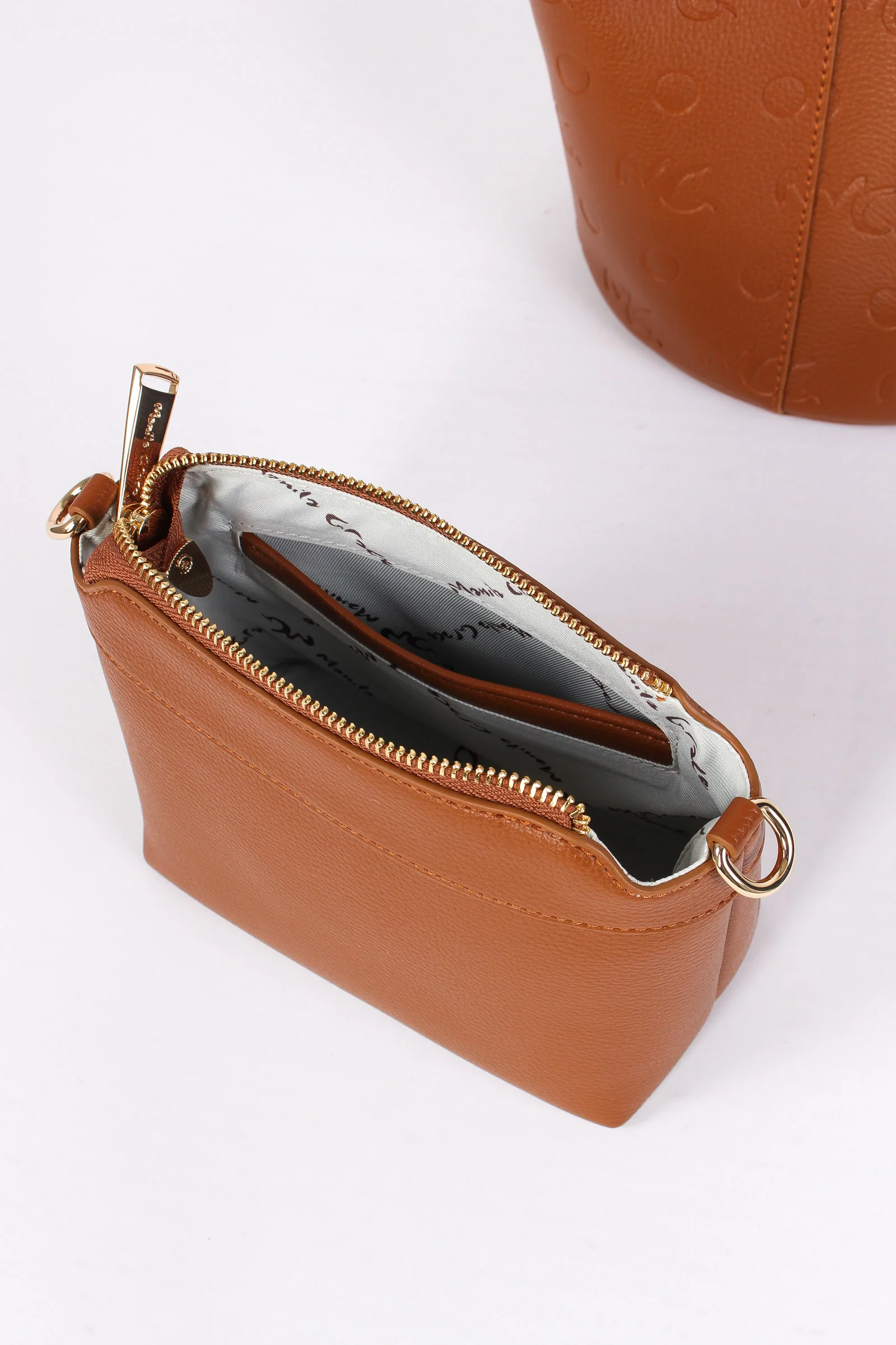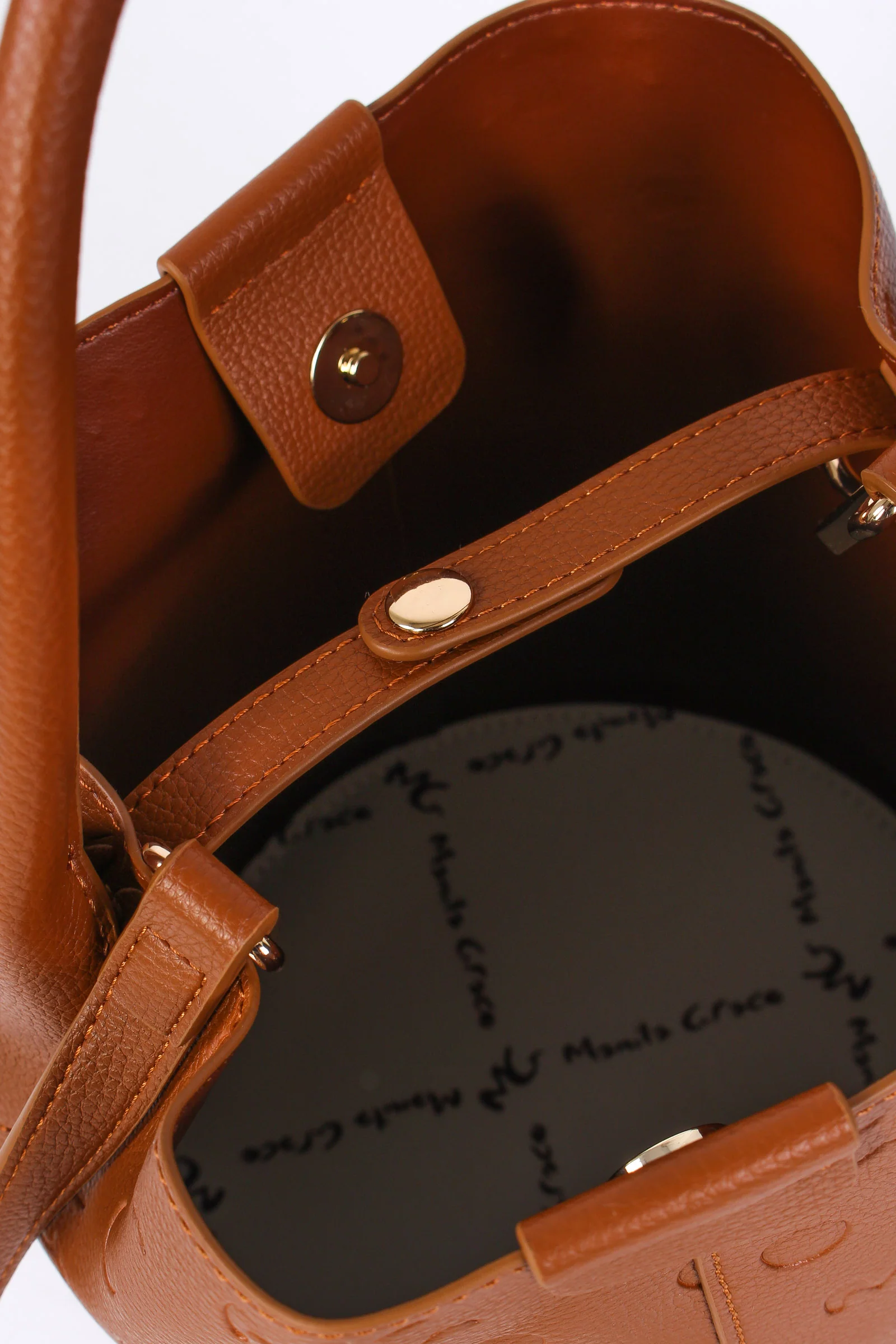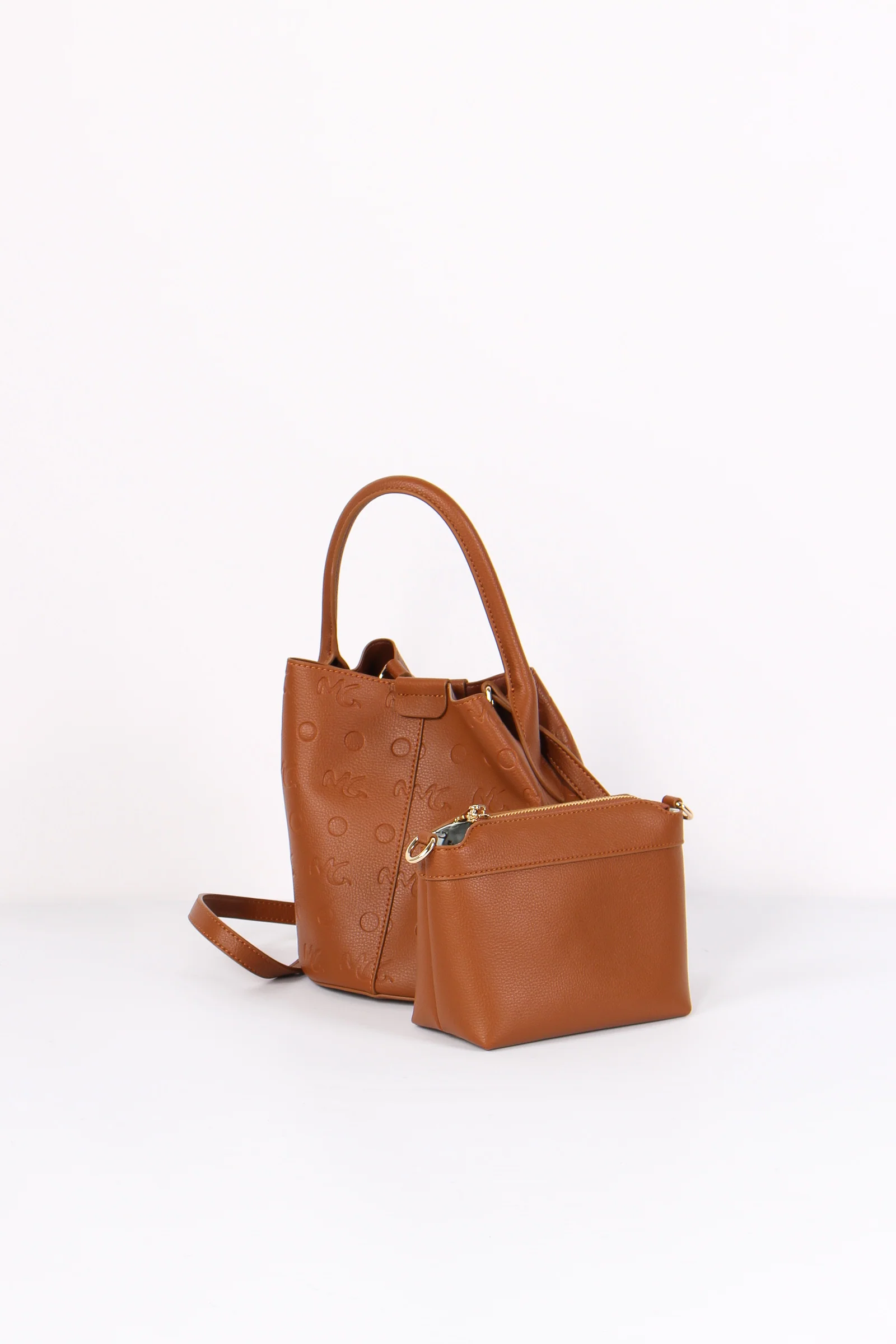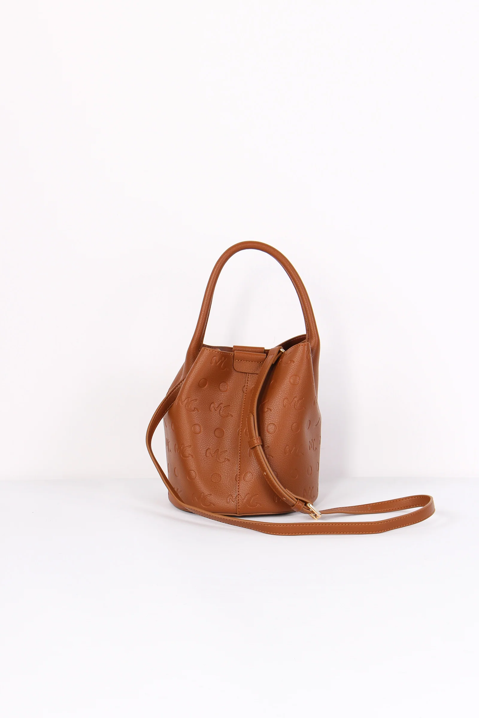 Materiale: 100% PU Chiusura: Bottone automatico e laccetto. Tracolla: Removibile Dettagli: Secchiello in ecopelle logata allover in rilievo. Pochette interna e fondo interno logato. La pochette misura 14 cm in altezza e 19 cm in larghezza. Misure: Altezza 20 cm Larghezza 18 cm Profondità 8 cm.