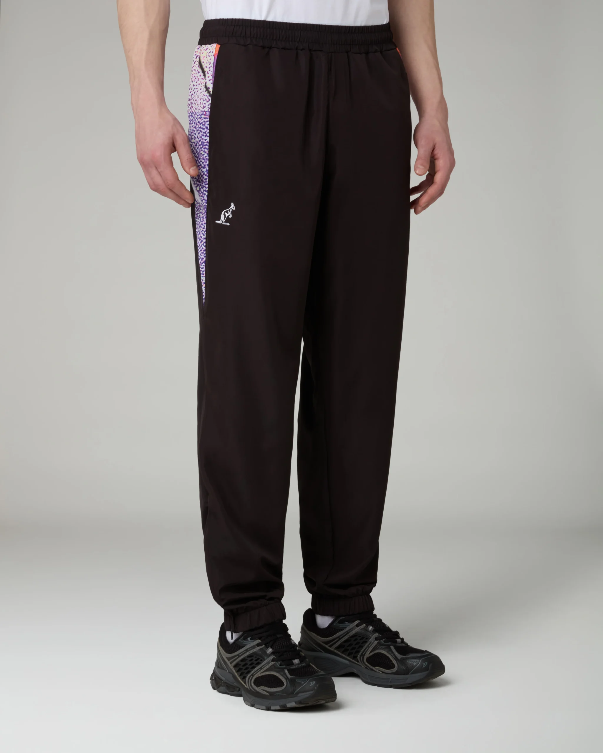 – Pantalone in tessuto tecnico Smash– Foderato in Mesh– Inserti a “V” laterali in Smash stampato– Elastico in vita con coulisse regolabile– Tasche nel fianco– Fondo elasticizzato con zip– Logo ricamato– Made in Italy