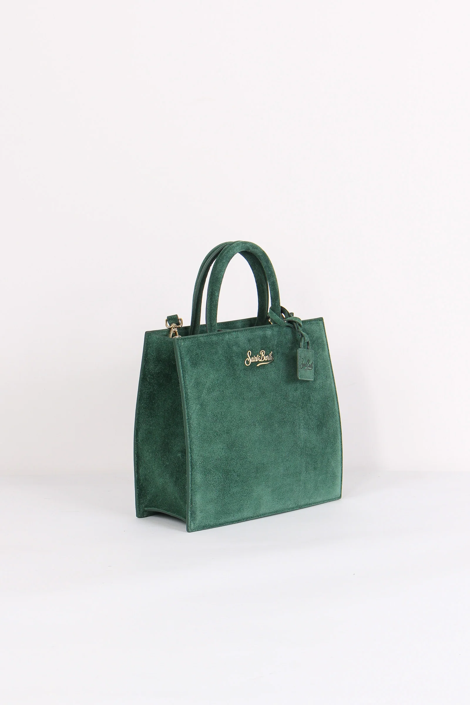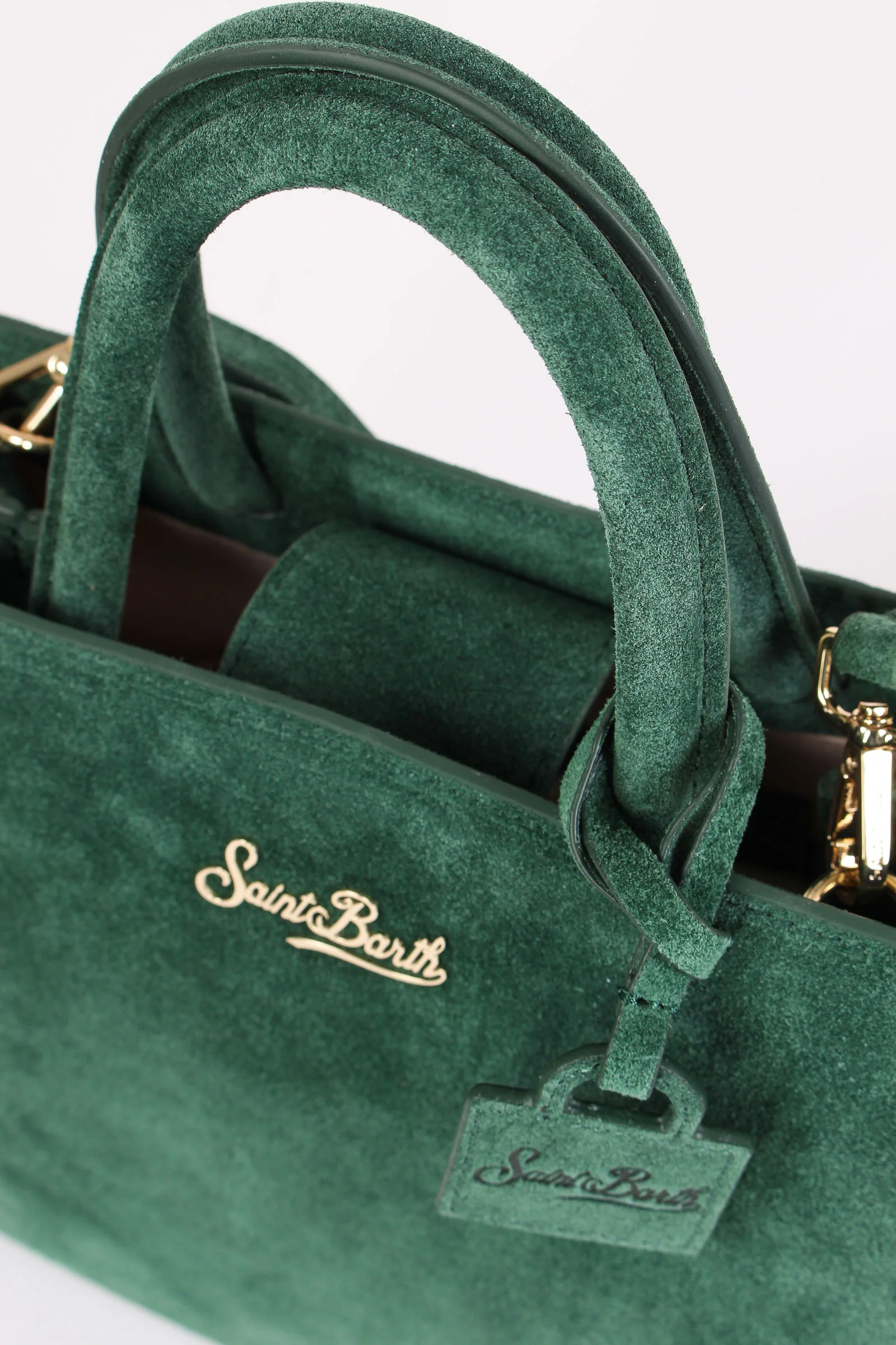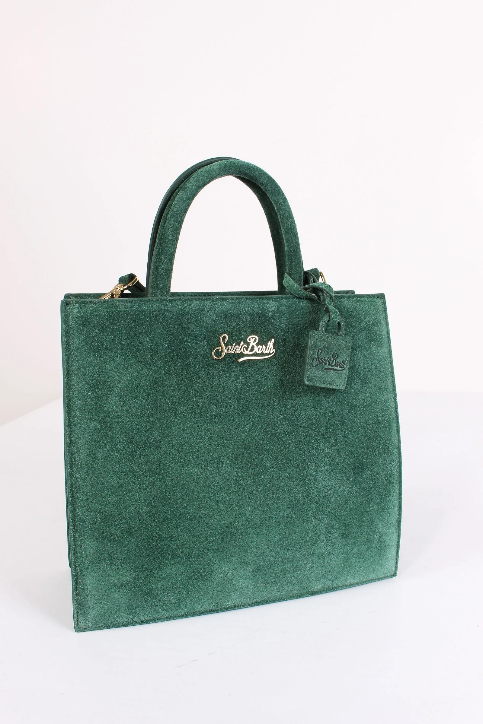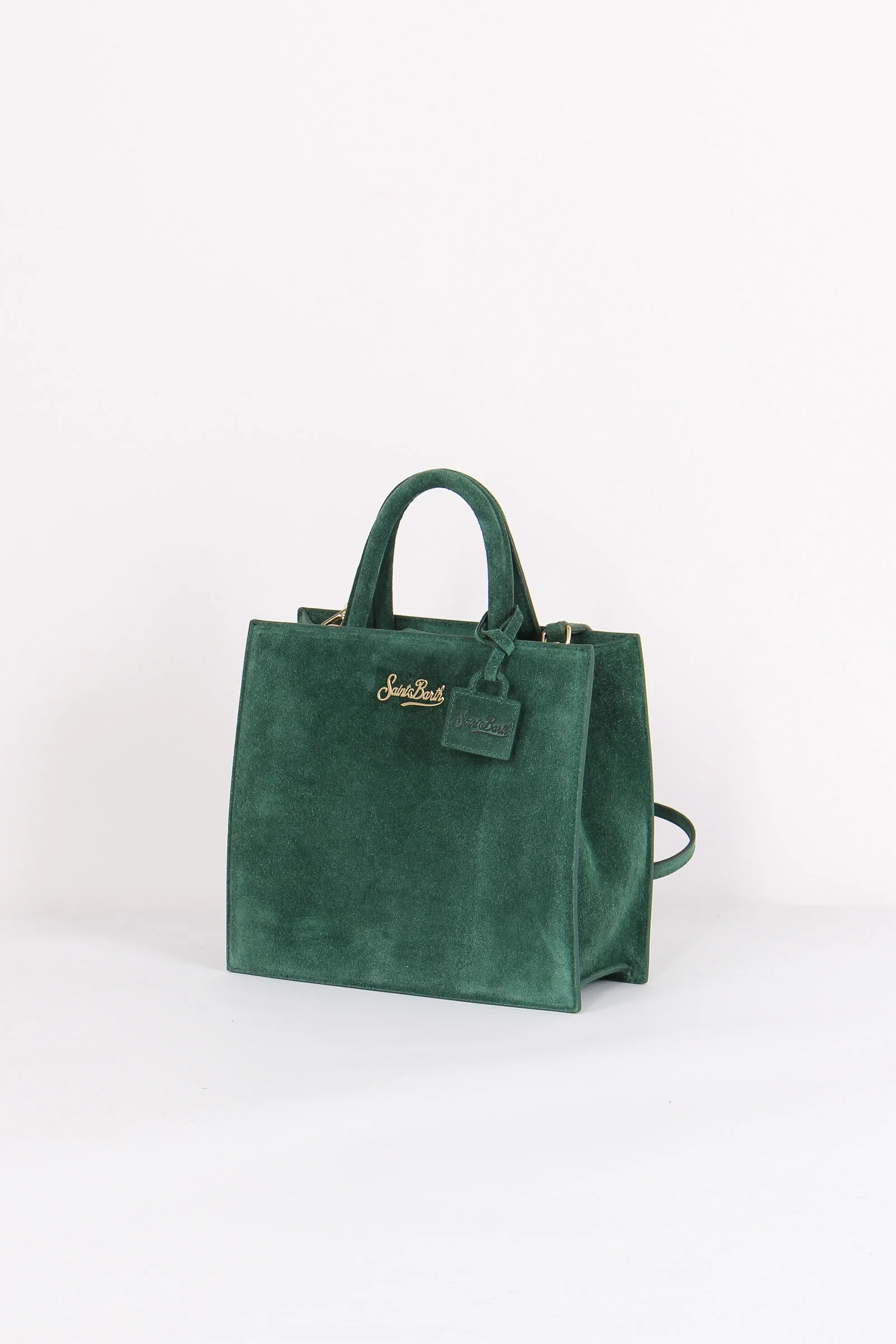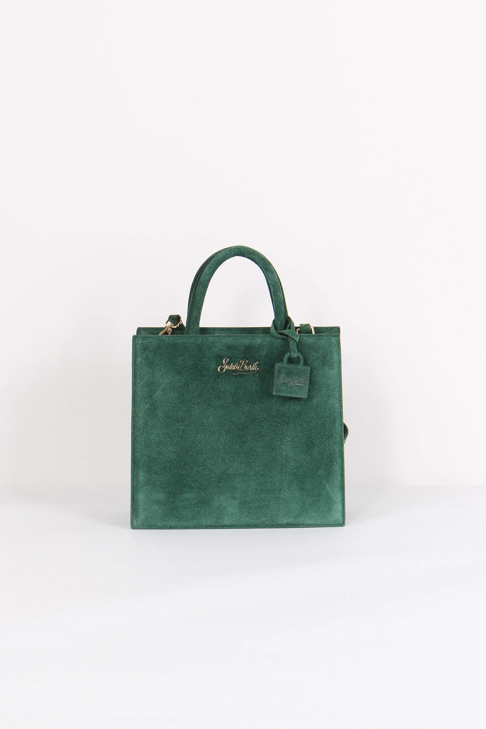Materiale: 100% pelle chiusura: patta magnetica tracolla: si dettagli: Borsa realizzata in pelle scamosciata. Dettaglio loga in metallo sul davanti con charm mini borsa con logo Saint Barth. Manici rigidi e tracolla regolabile e removibile. Interno foderato portaoggetti. Misure: 24 5 x 22 x 9