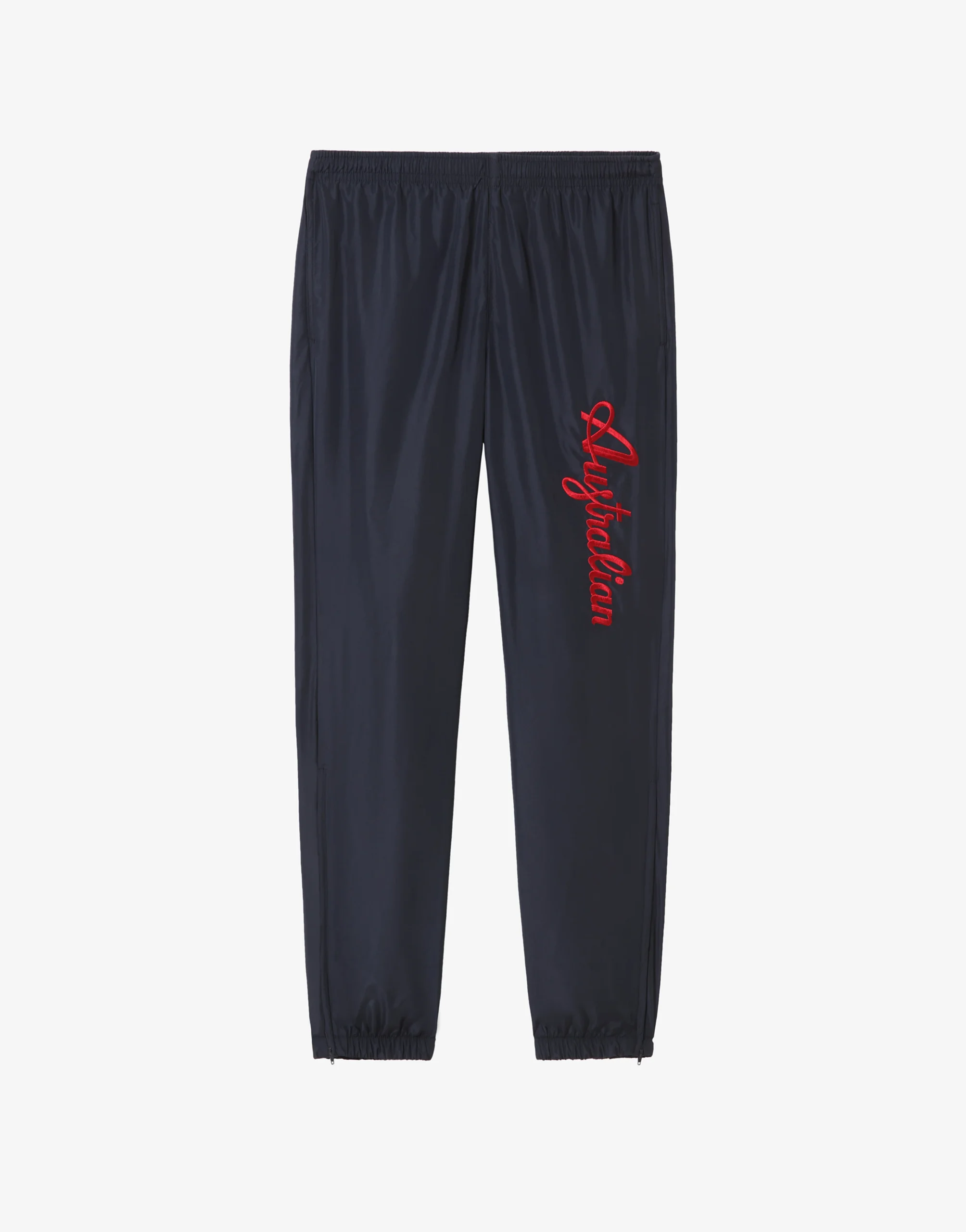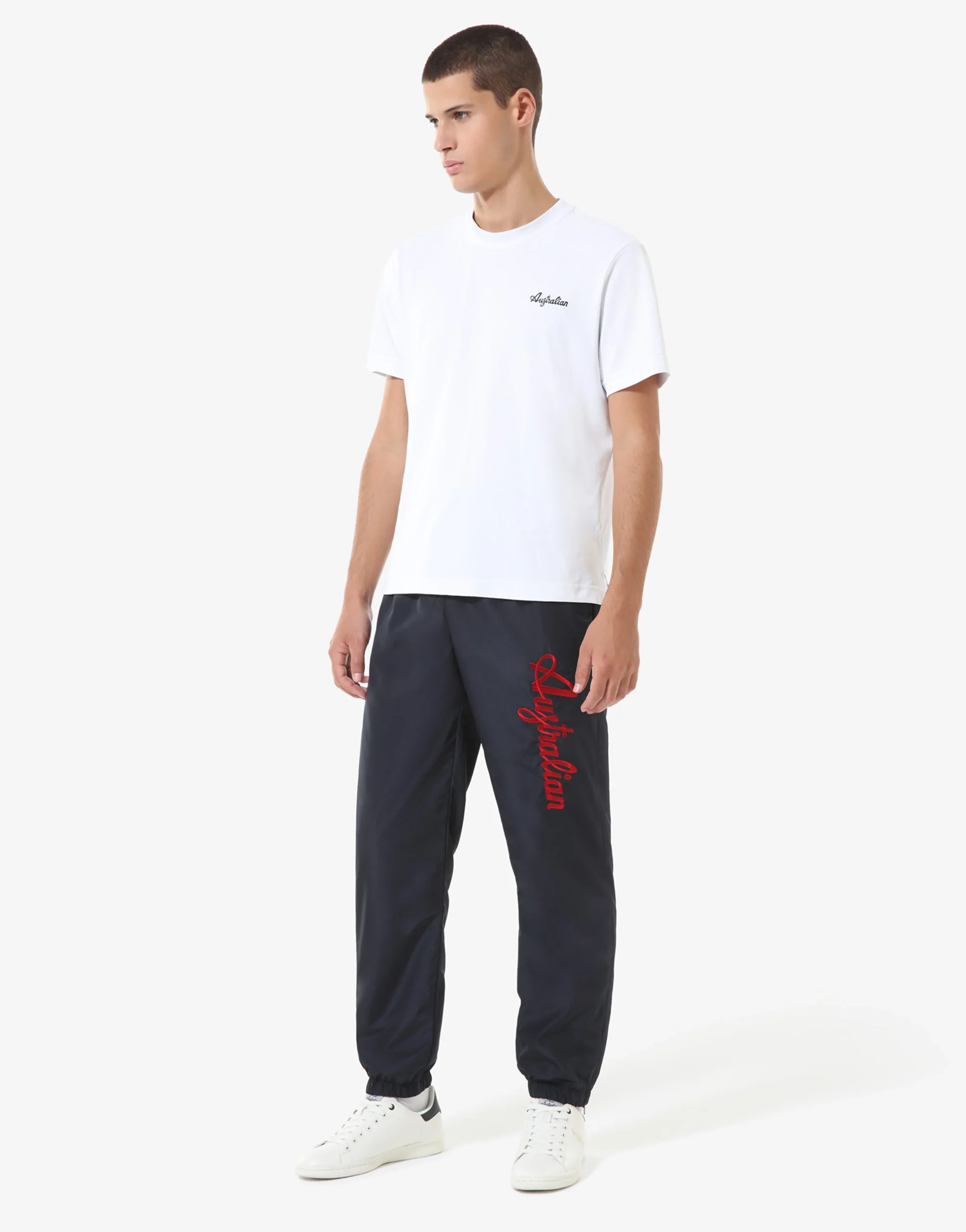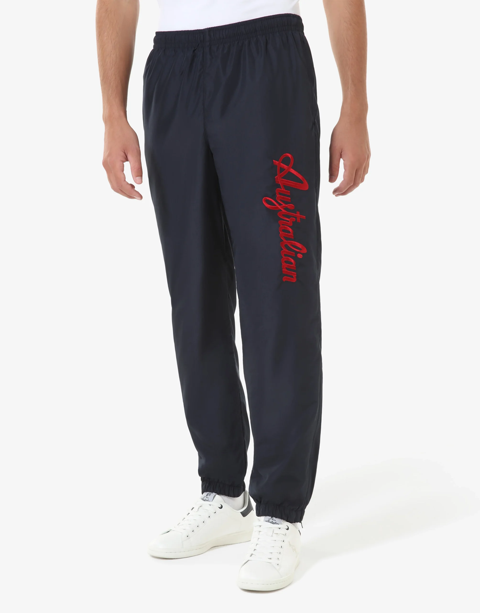 – Pantalone in tessuto “smash” foderato – Bordi alle caviglie con elastico – Apertura alle caviglie a soffietto con zip – Elastico in vita con coulisse regolabile – Logo Australian ricamato– Made in Italy