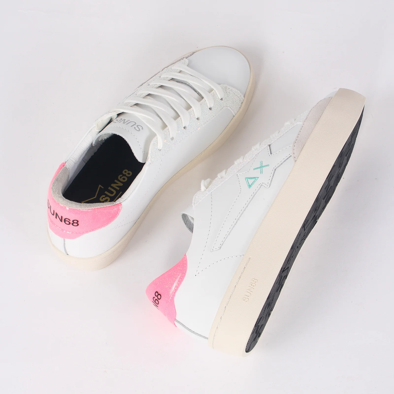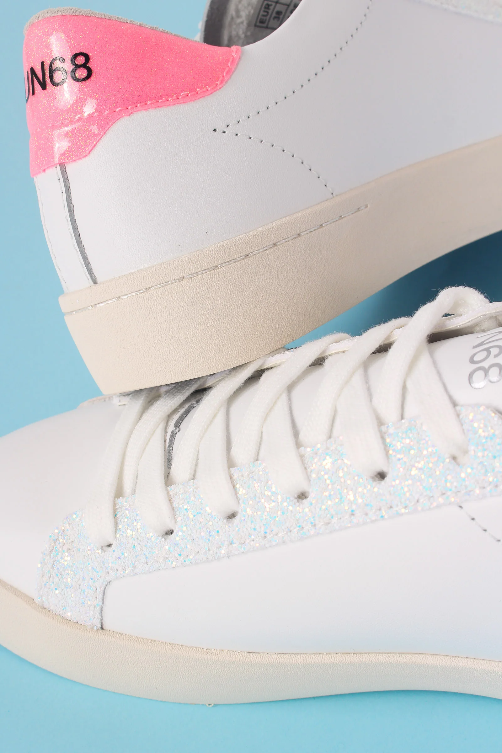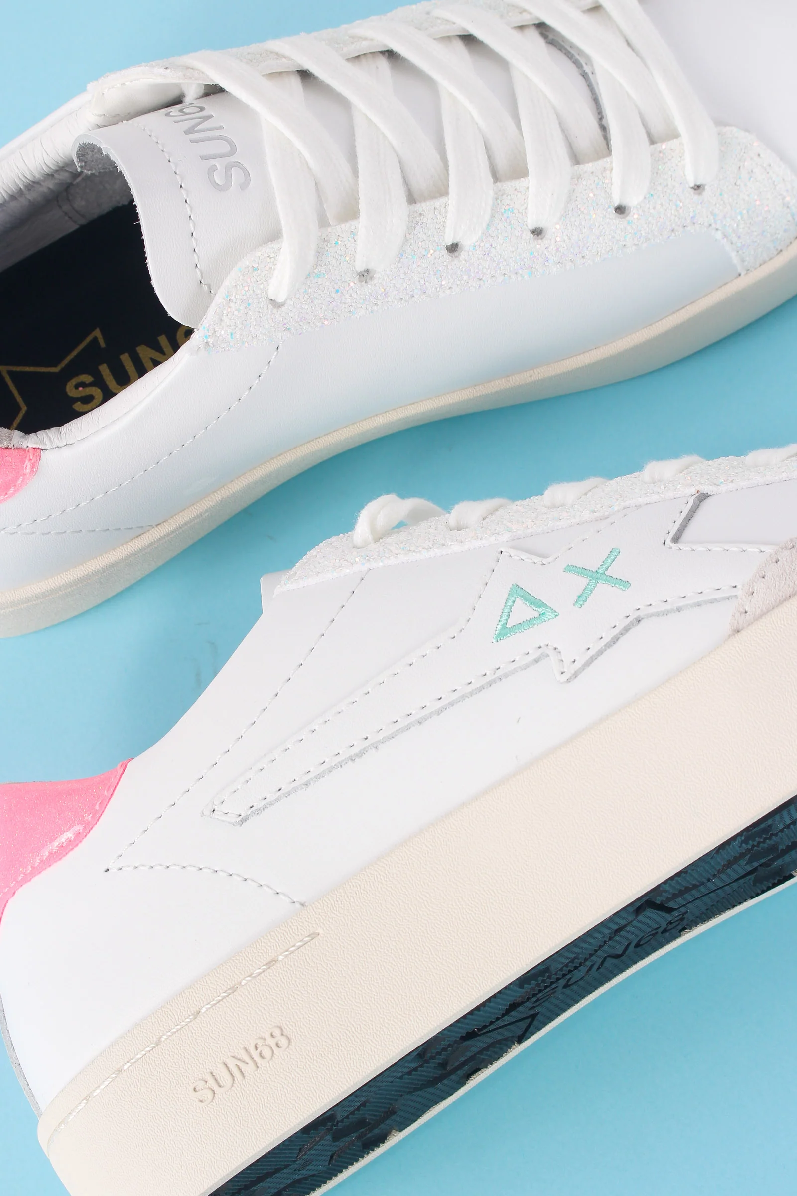 Materiale: 49% LEATHER 47% TEXTILE 4% POLYURETHANE Dettagli: Sneaker ally solid. Modello in tessuto bianco con profili in camoscio e dettagli fluo. Calzata regolare. Plantare interno estraibile. Suola in gomma.