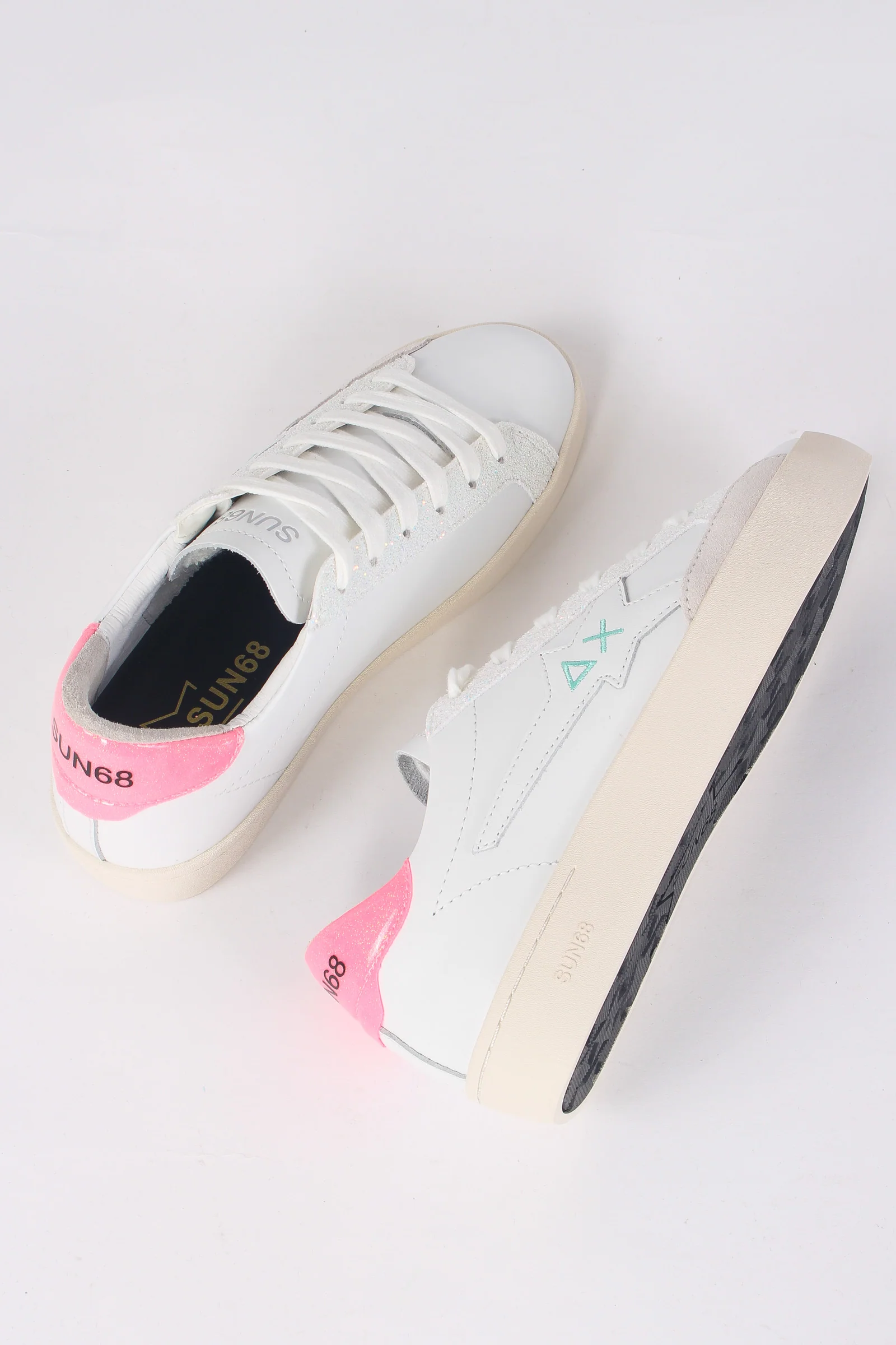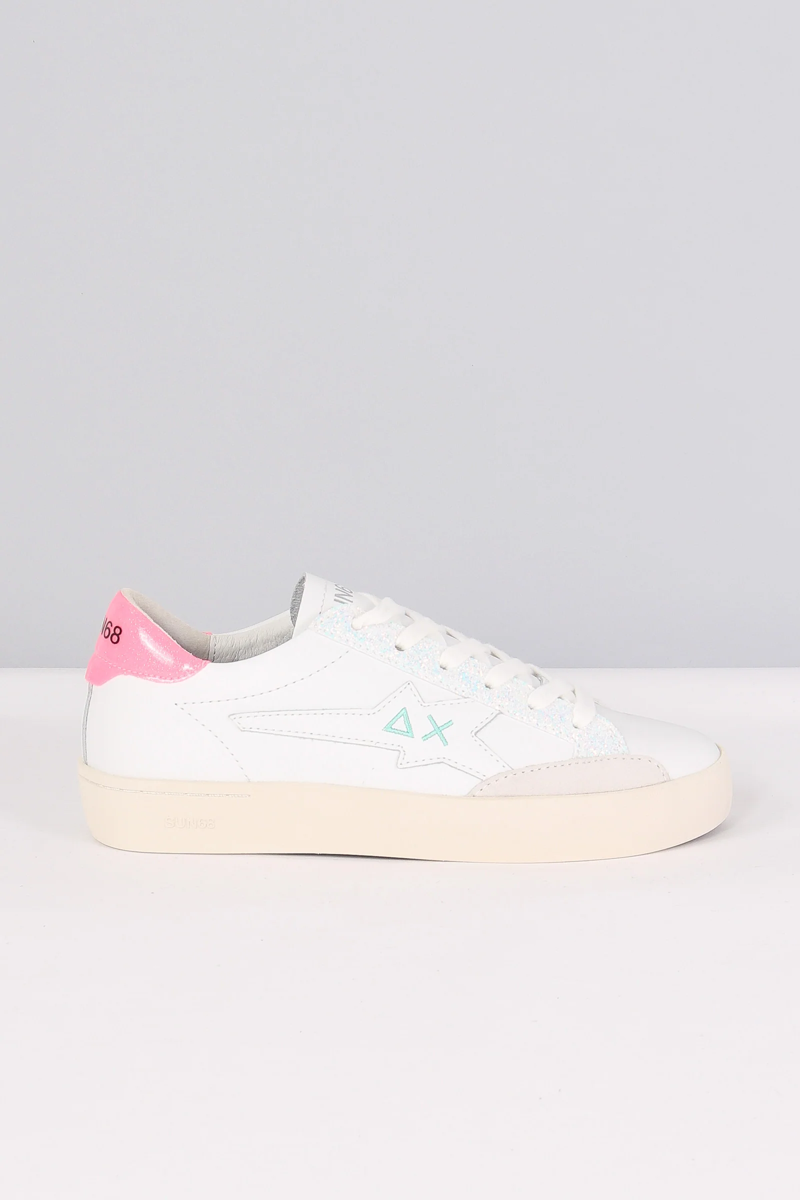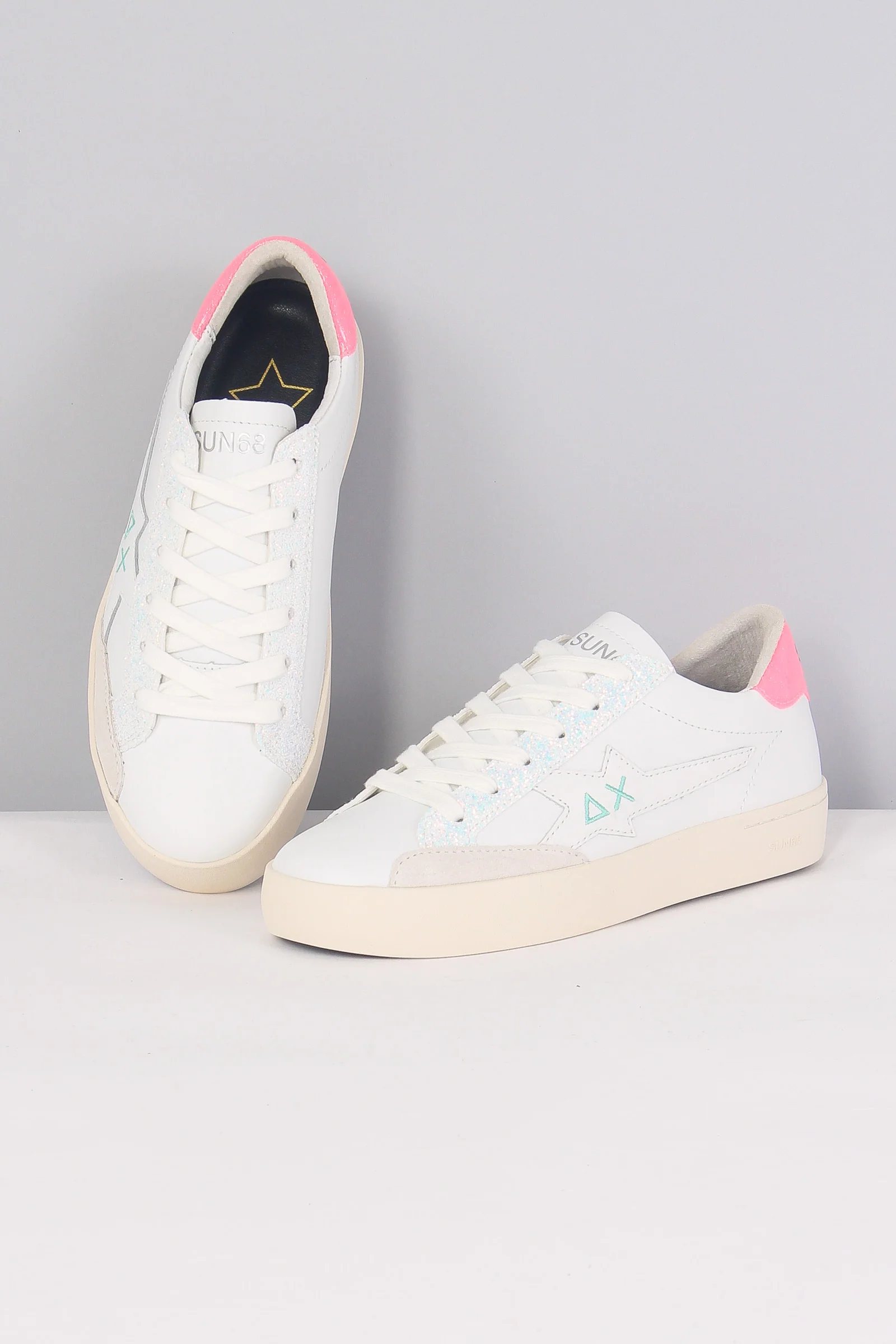 Materiale: 49% LEATHER 47% TEXTILE 4% POLYURETHANE Dettagli: Sneaker ally solid. Modello in tessuto bianco con profili in camoscio e dettagli fluo. Calzata regolare. Plantare interno estraibile. Suola in gomma.