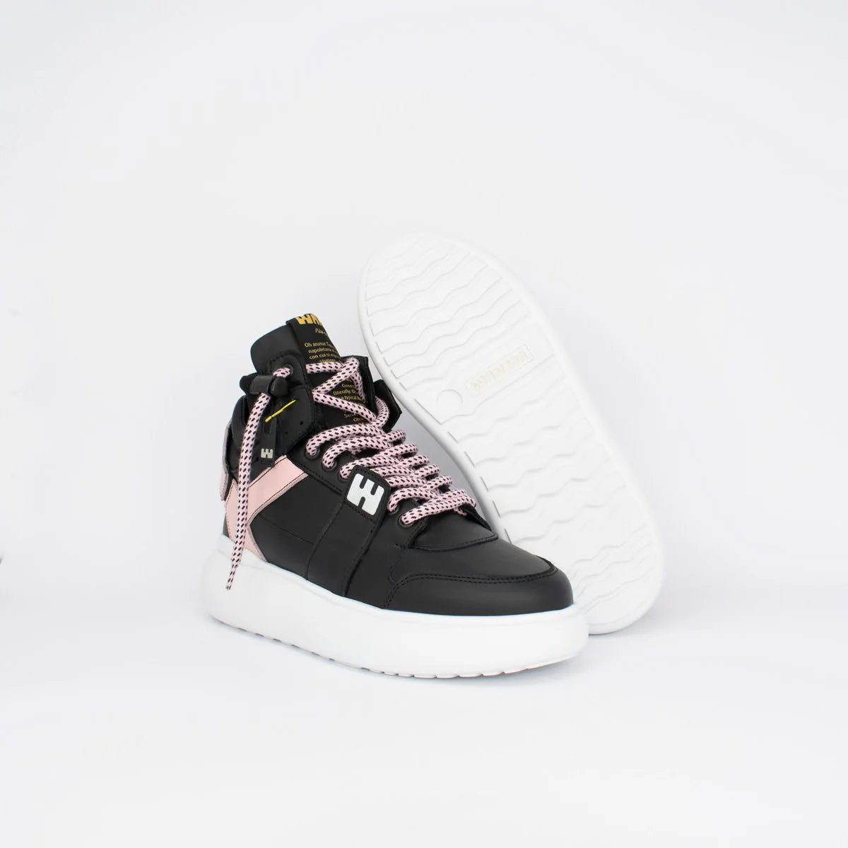 BGIRL Nero e Rosa – Linea Bubble Sneakers da donna in pelle nero e rosa, con suola bounce in leggerissima gomma espansa. Lacci bicolor con sistema Swipe-Up. Cavigliera in maglina elastica. Plantare serigrafato. Made in Italy, anzi… Fatto a Napoli.