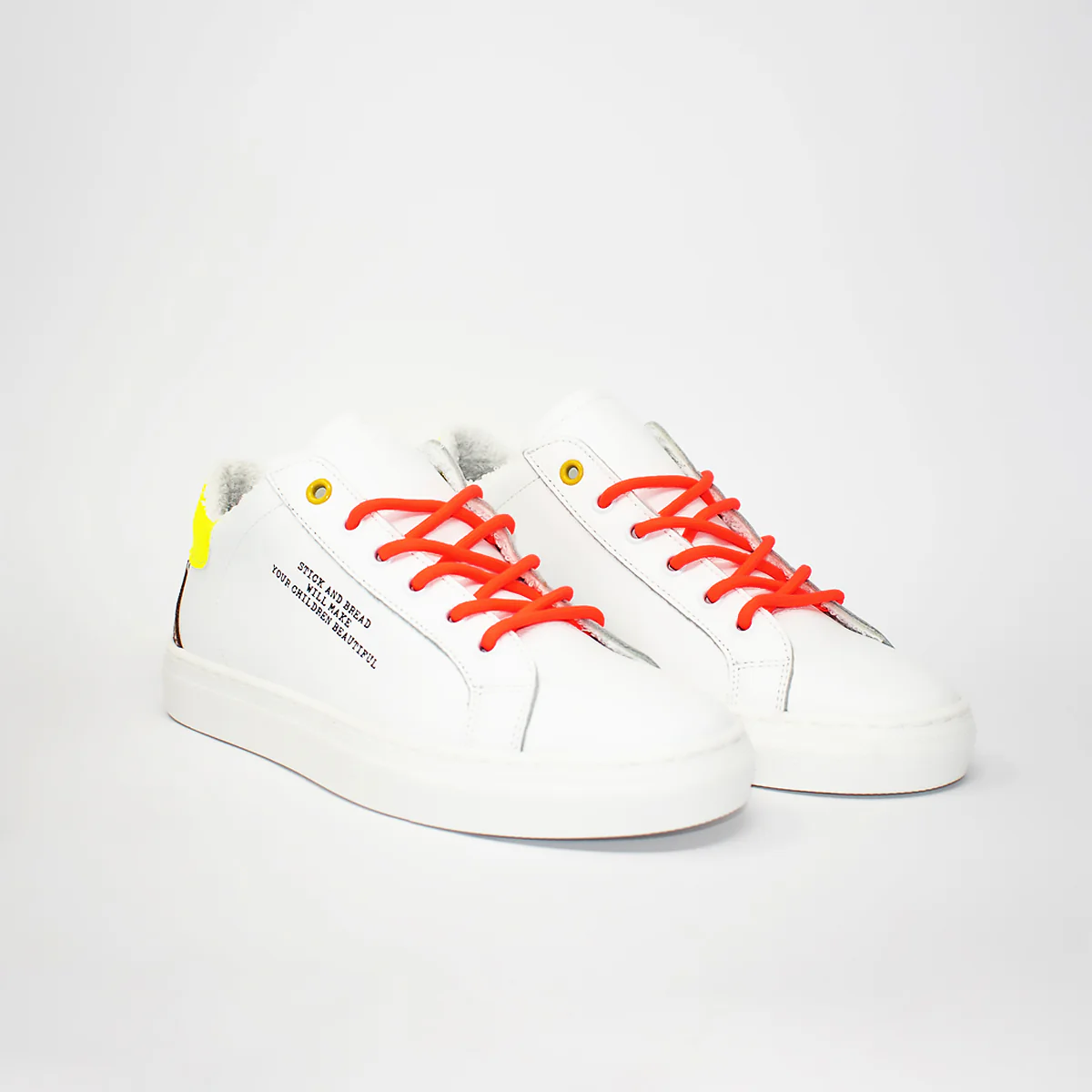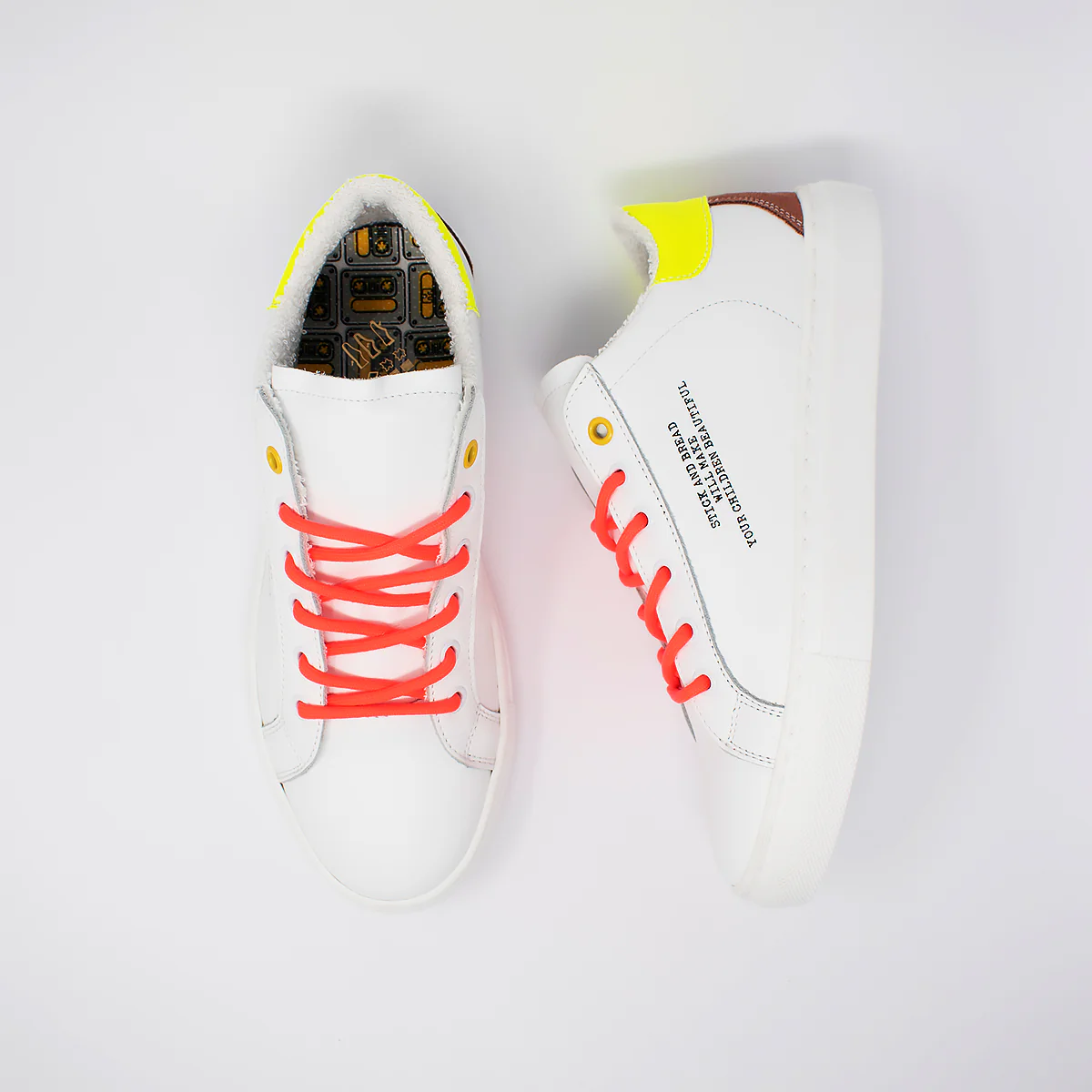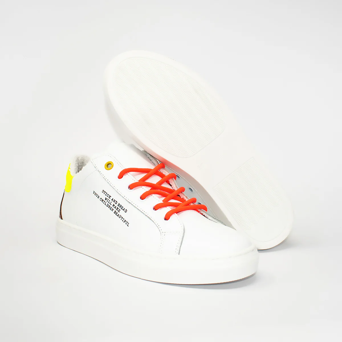 LOB sneakers donna – Linea U!no LOB – Sneakers ciclista liscio in morbida pelle di vitello con dettagli fluo e stampa esterno piede. Fodera interna in fresco cotone, fondo gomma. Made in Italy, anzi… Fatto a Napoli.