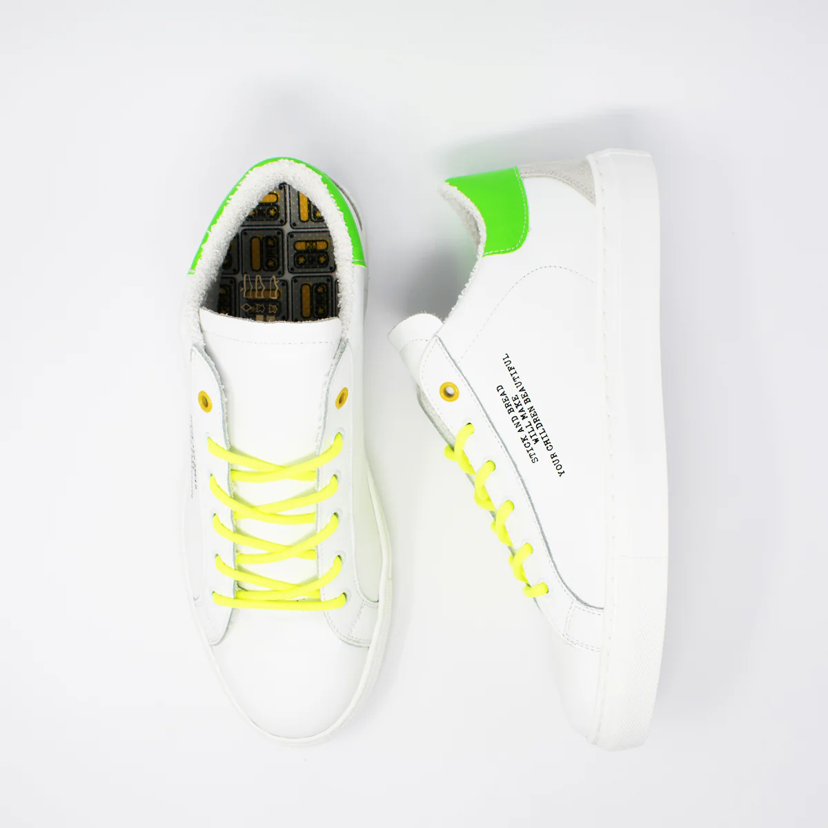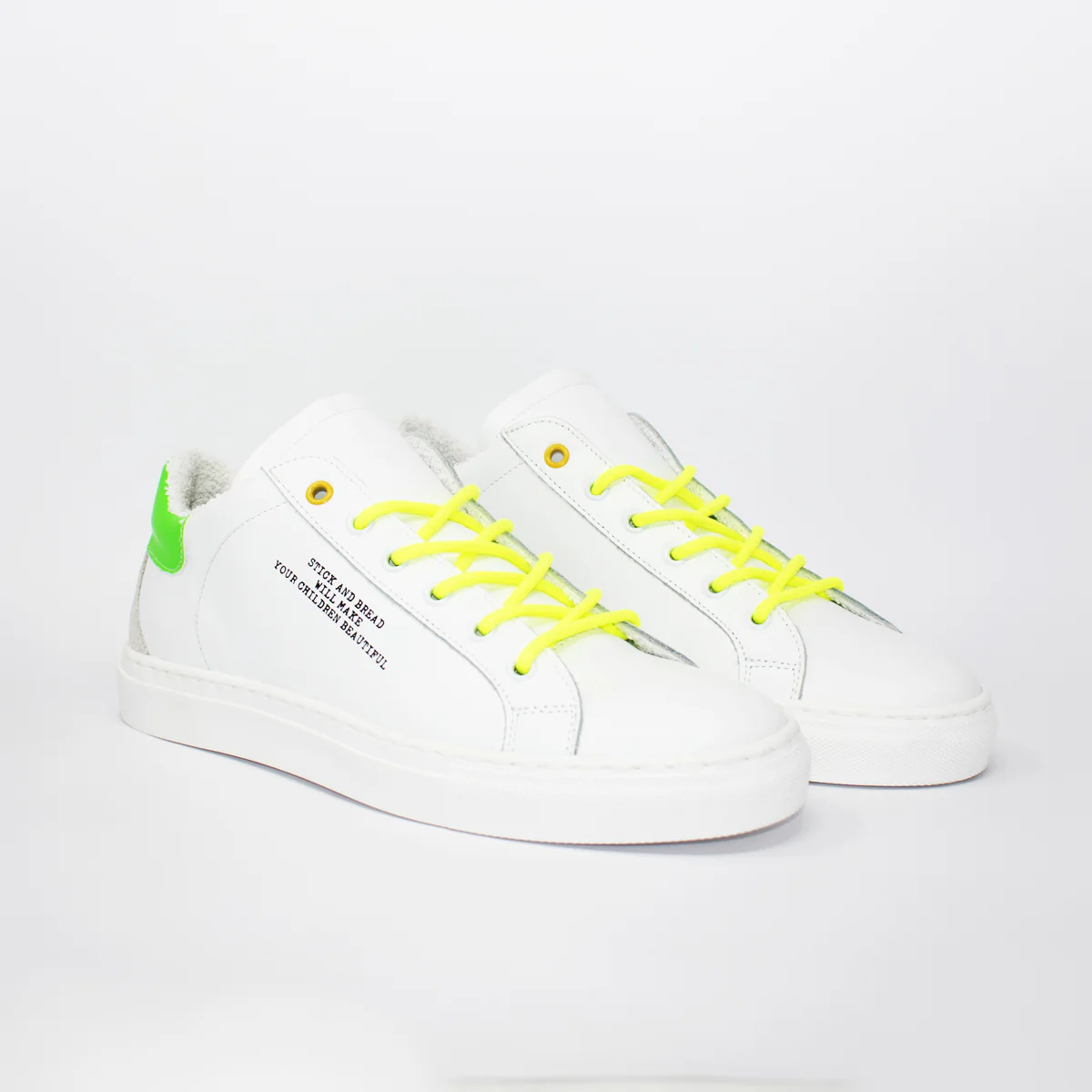 LOB sneakers uomo – Linea U!no LOB – Sneakers ciclista liscio in morbida pelle di vitello con dettagli fluo e stampa esterno piede. Fodera interna in fresco cotone, fondo gomma. Made in Italy, anzi… Fatto a Napoli.