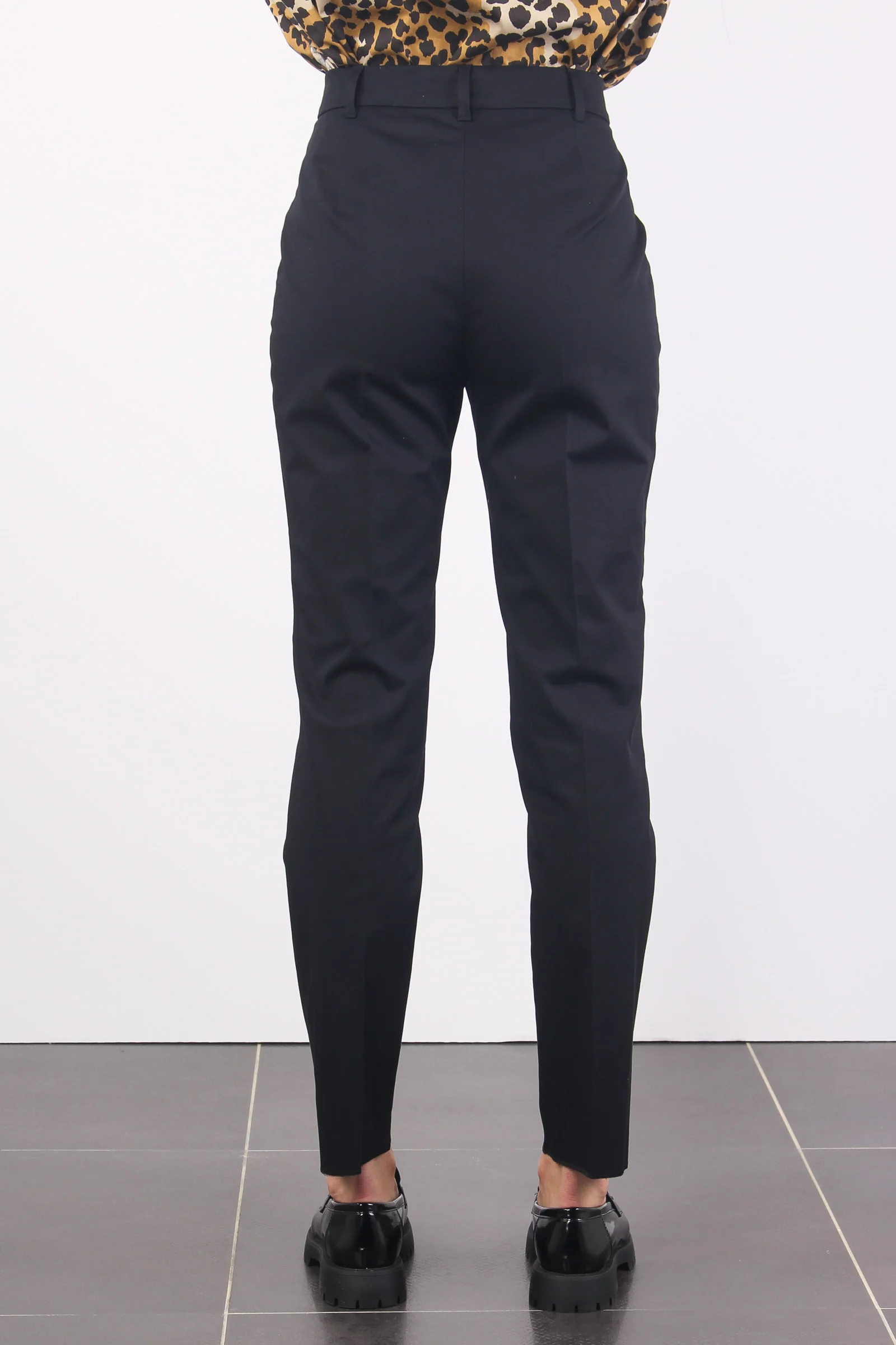 Materiale: 95% cotone 5% elastan Dettagli: Pantalone in gabardine di cotone stretch Colore blu Allacciatura con zip Passanti per cintura Tasche anteriori oblique con impunture sartoriali