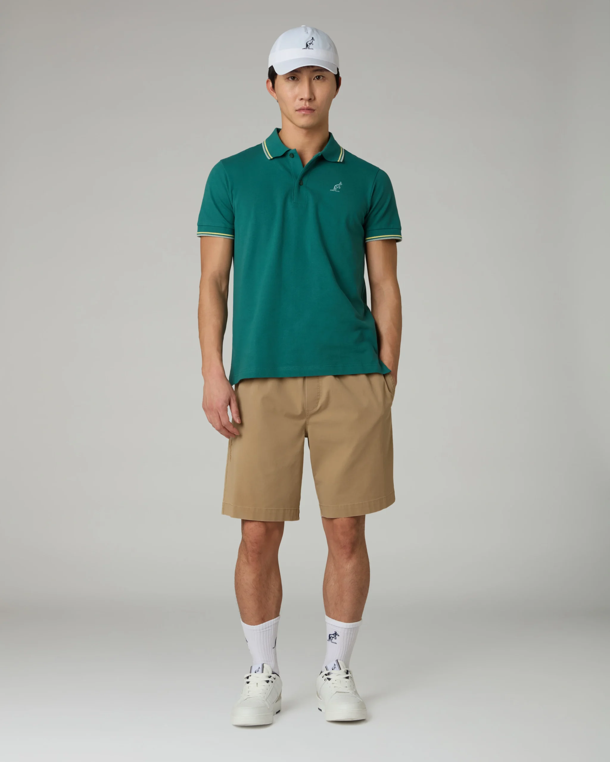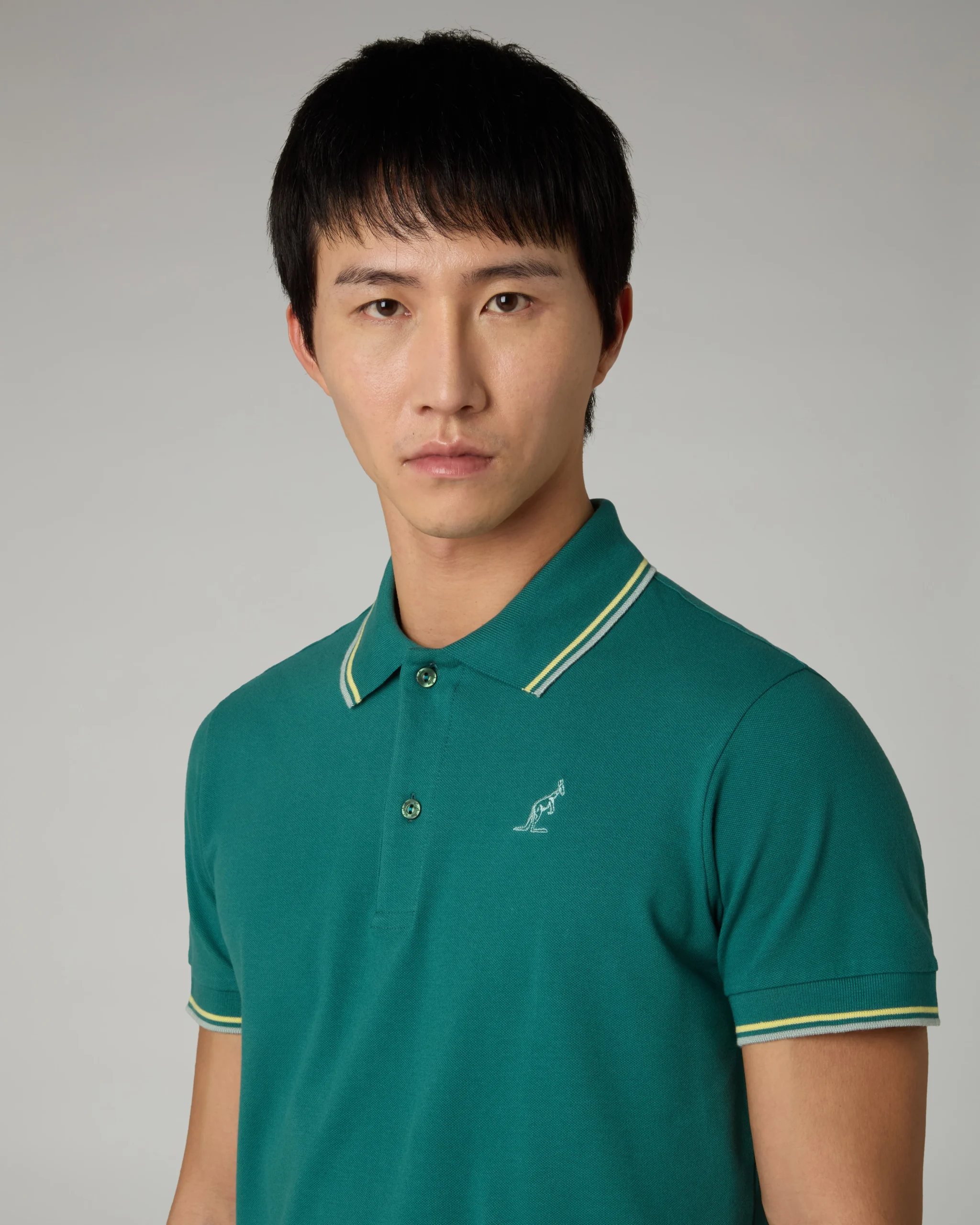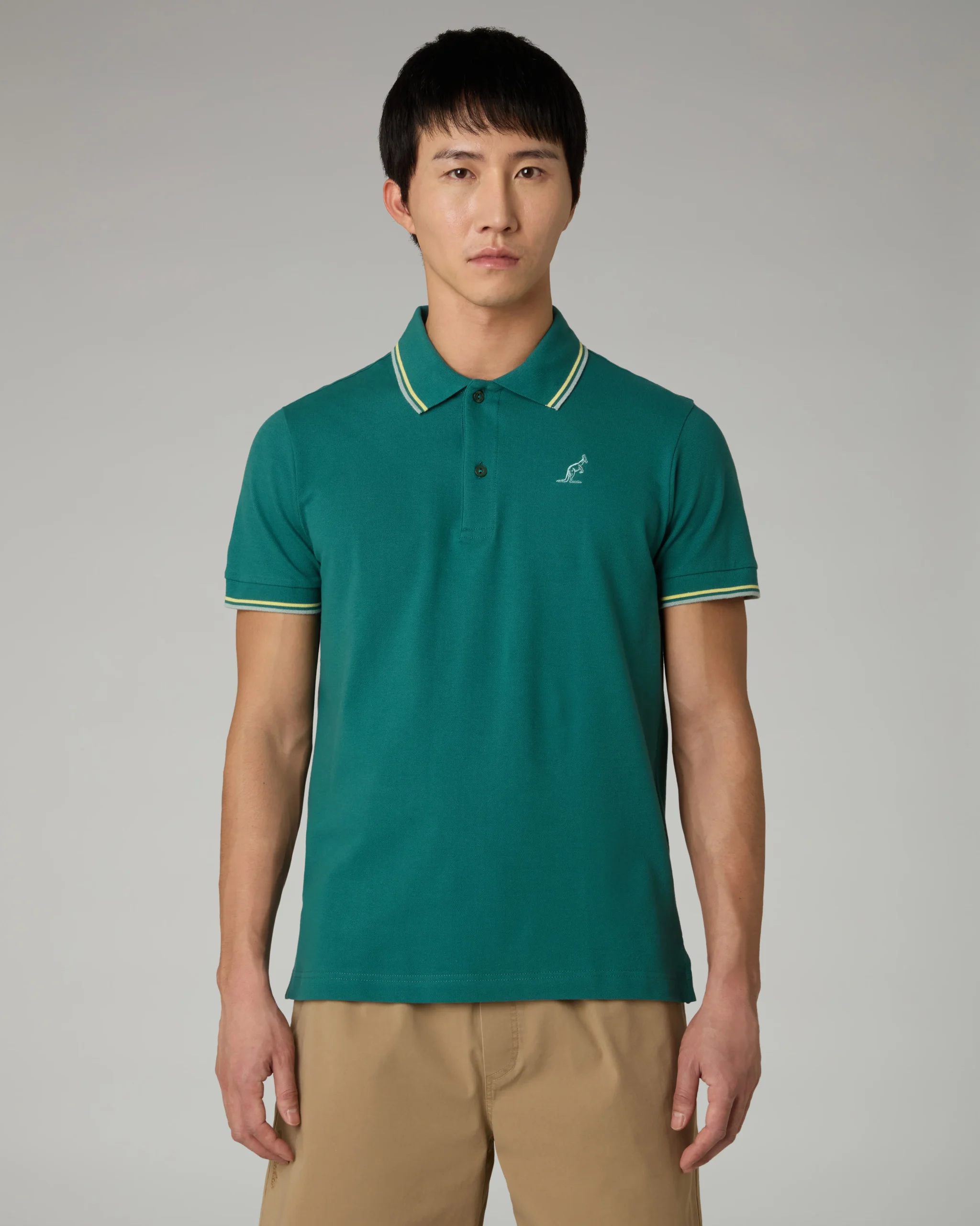 – Polo in piquet elasticizzato – Collo e polsi in filo rigati – Slim fit – Logo ricamato in contrasto – Made in Italy
