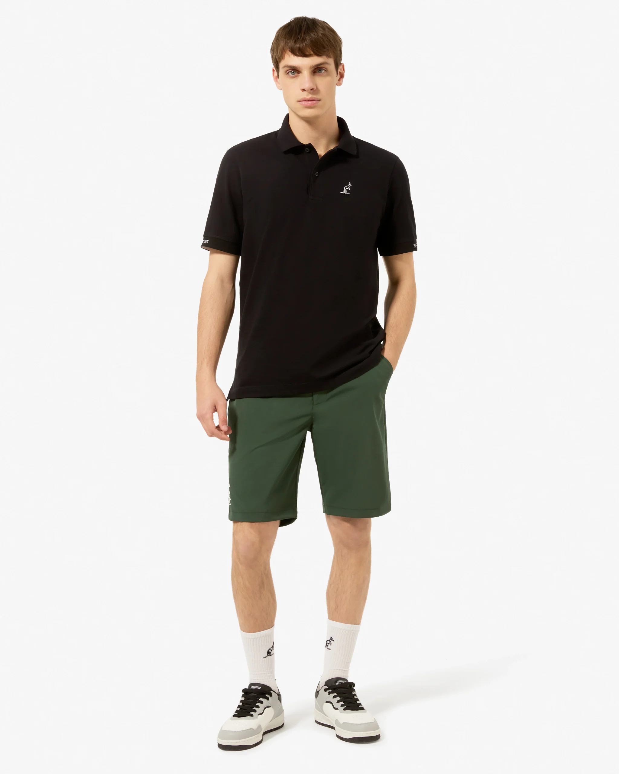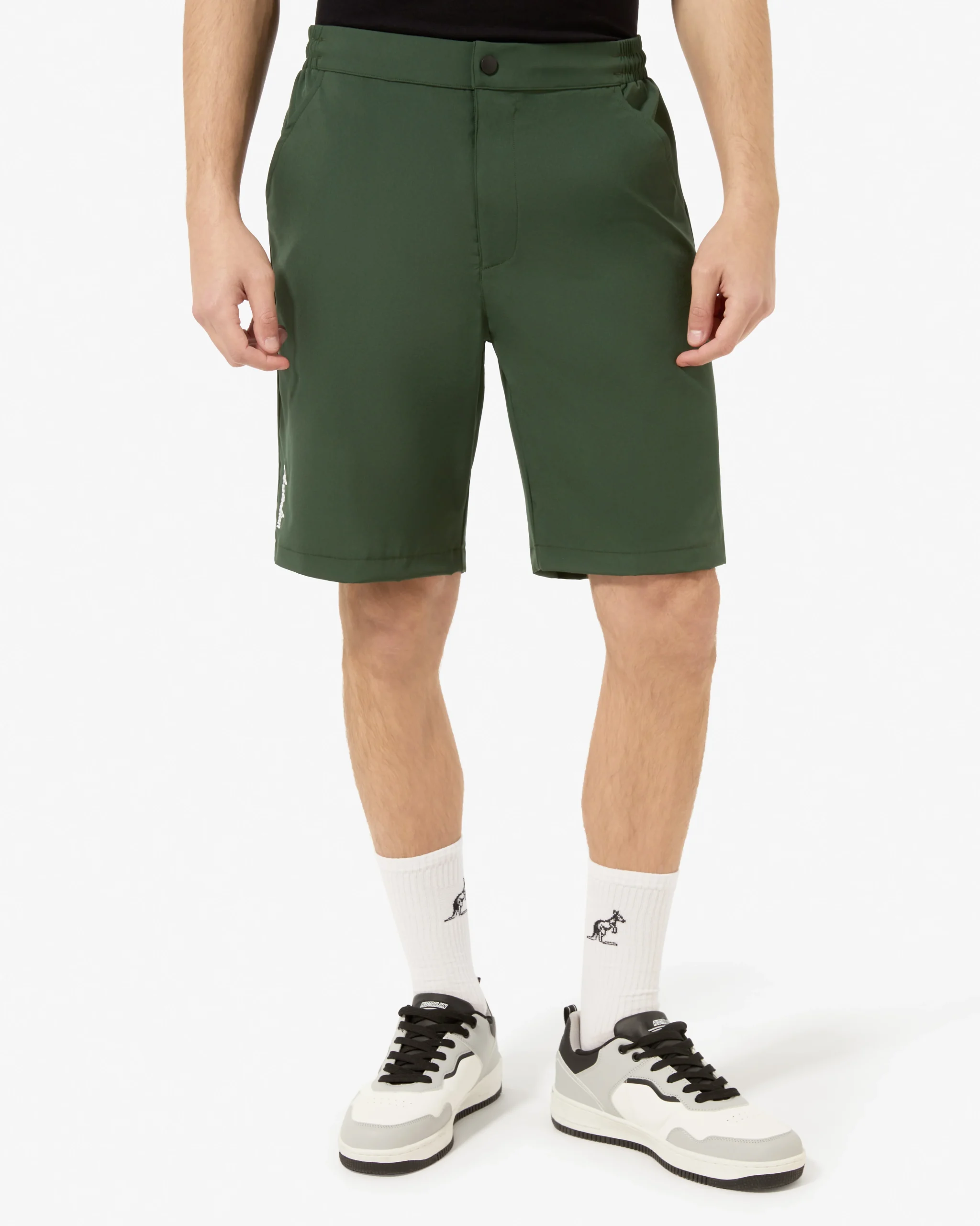 – Short in tessuto bi-elastico “slam”– Elastico in vita con coulisse regolabile – Chiusura con bottone gommato e zip– Tasca posteriore con zip – Logo ricamato – Made in taly