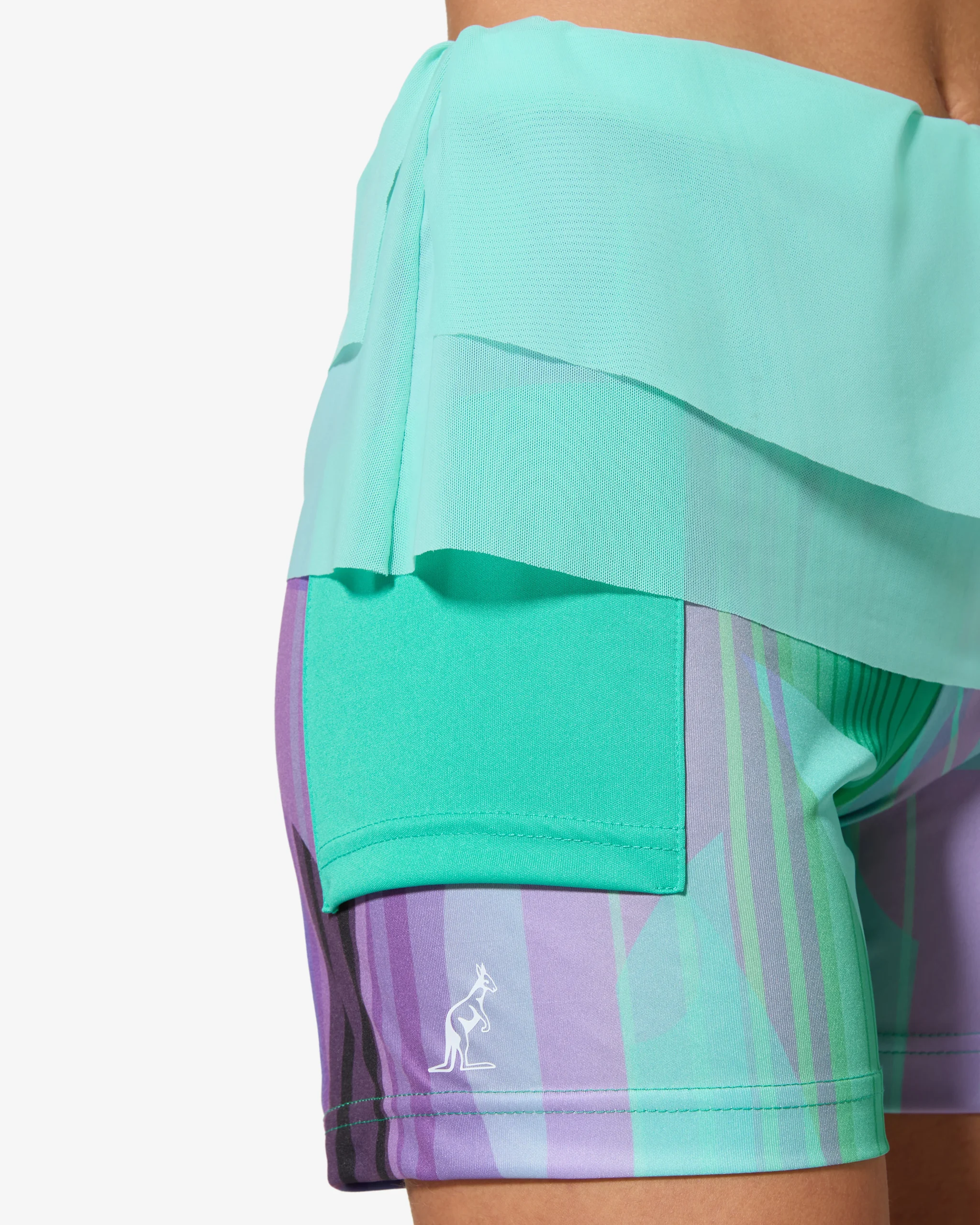– Gonna in tessuto “Net” elasticizzato– Sottopantaloncino in tessuto “ace” elastico e traspirante– Stampa sublimatica “all over” – Doppia tasca a tinta unita sul pantaloncino – Logo stampato – Made in Italy