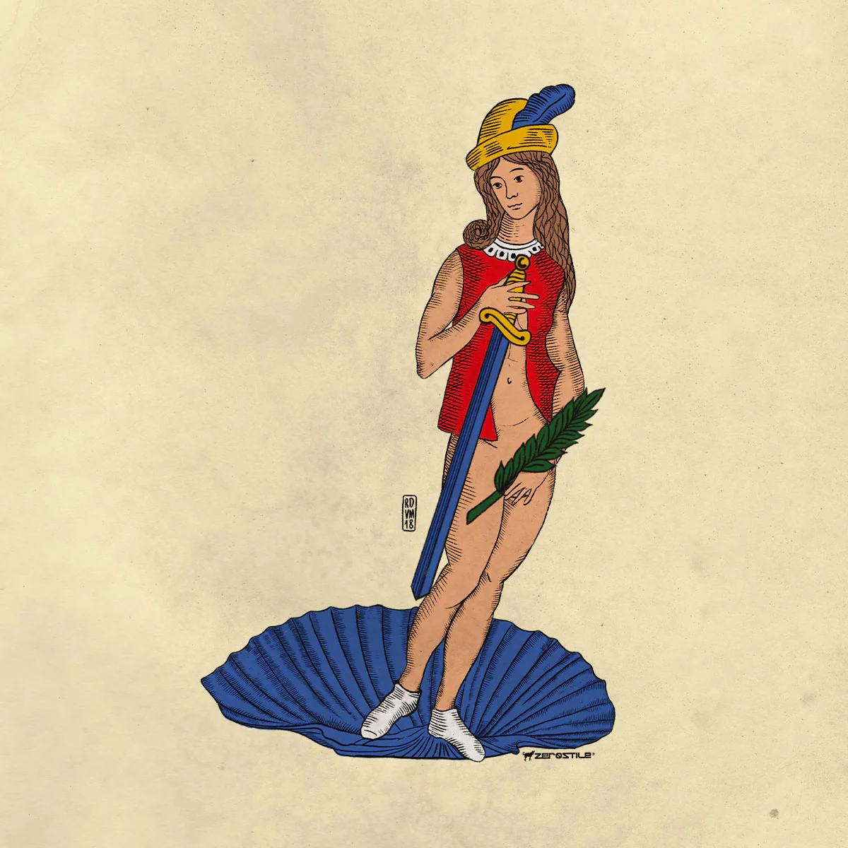 Nella collection “Il gioco dell’arte”, la Zerostile porta le figure delle celebri carte Napoletane da gioco (molto diffuse in centro sud italia) nel mondo dell’arte, riproponendo ironicamente le opere d’arte più celebri , o figure iconiche del nostro quotidiano.