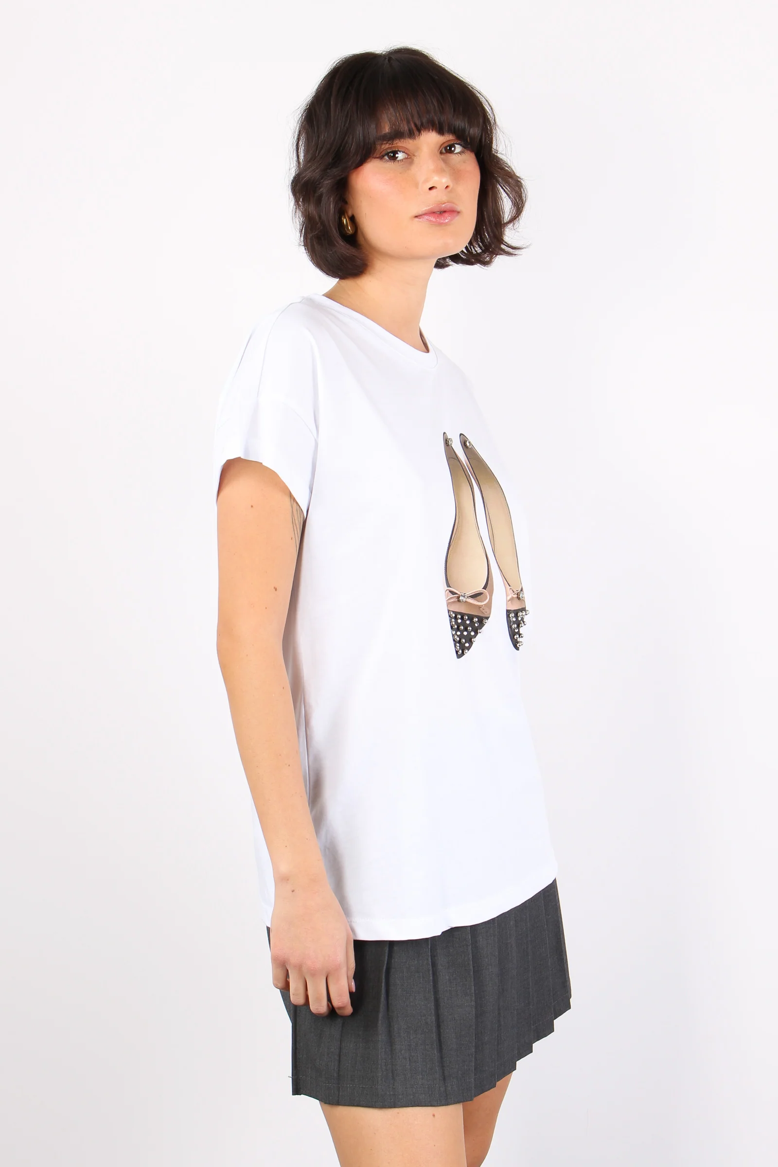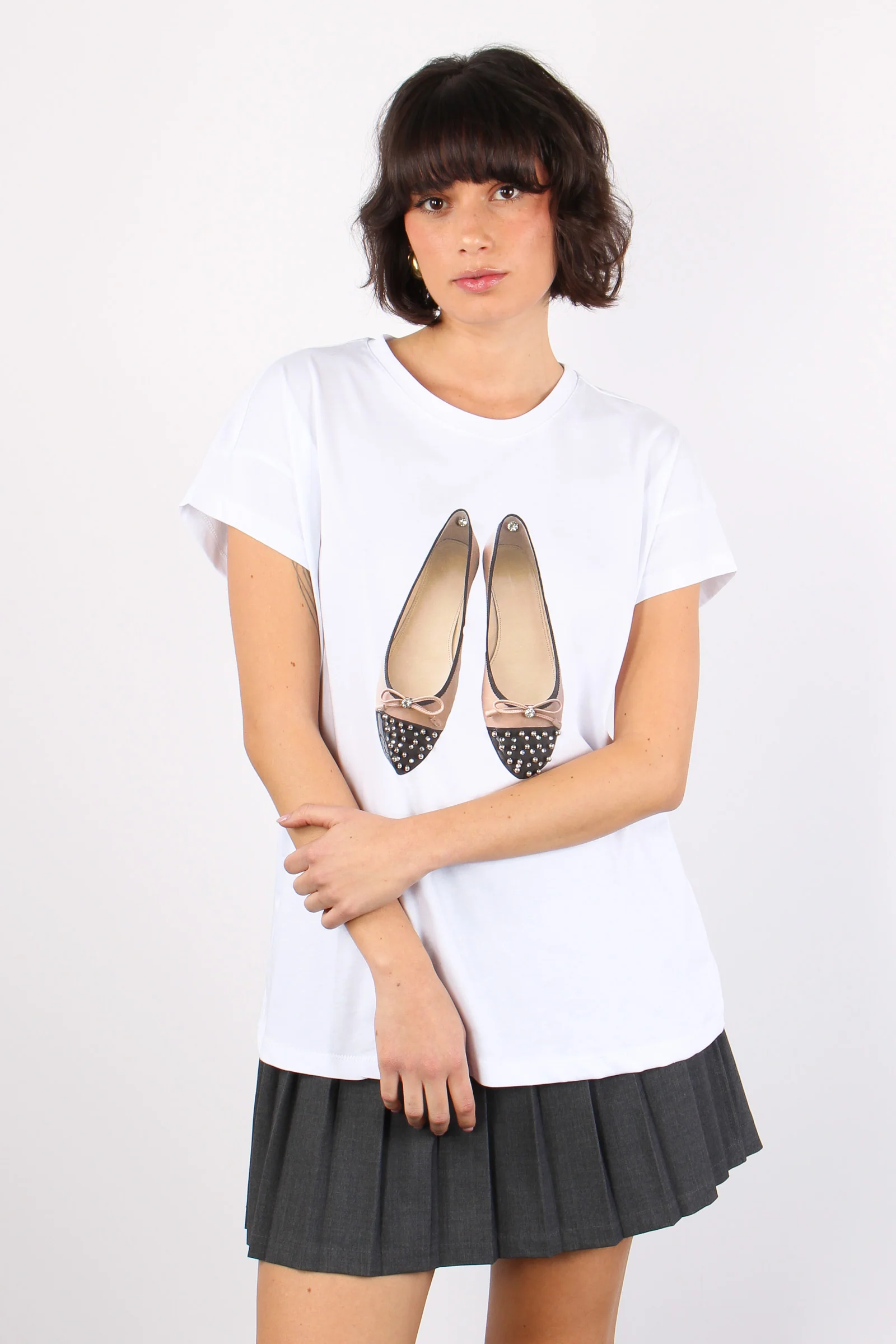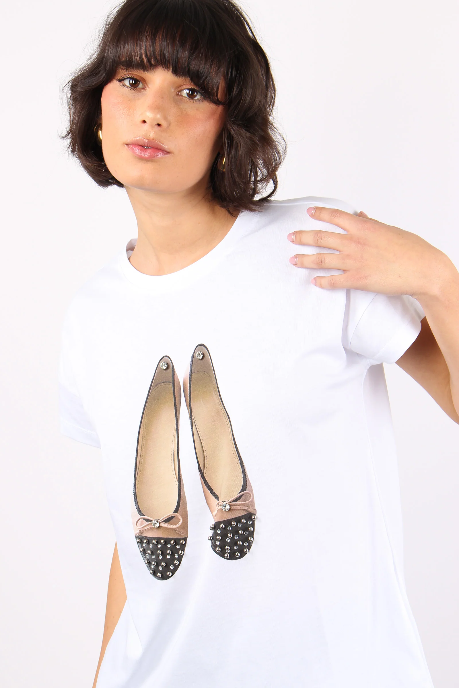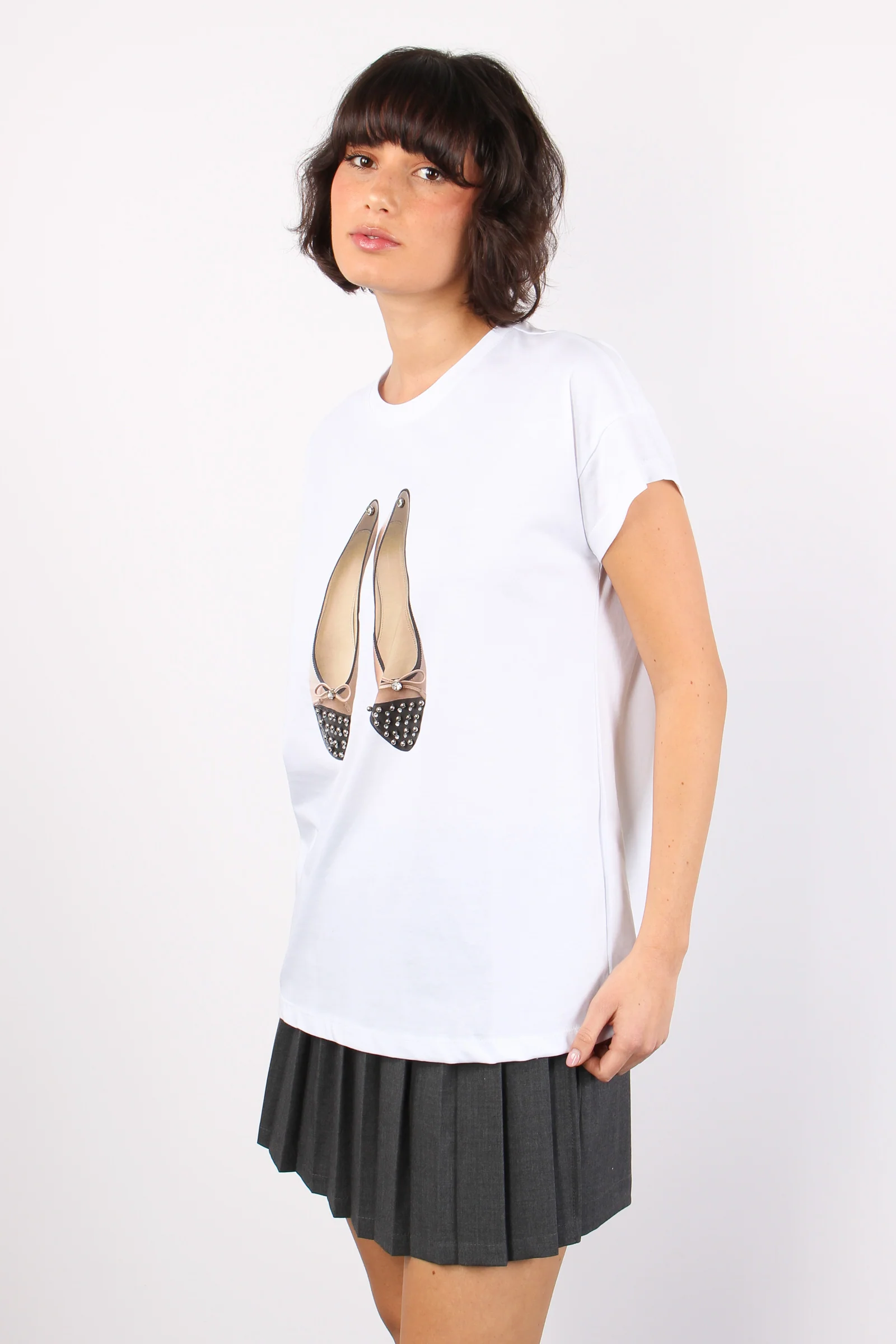 T-shirt Stampa Ballerina Bicol Bianco