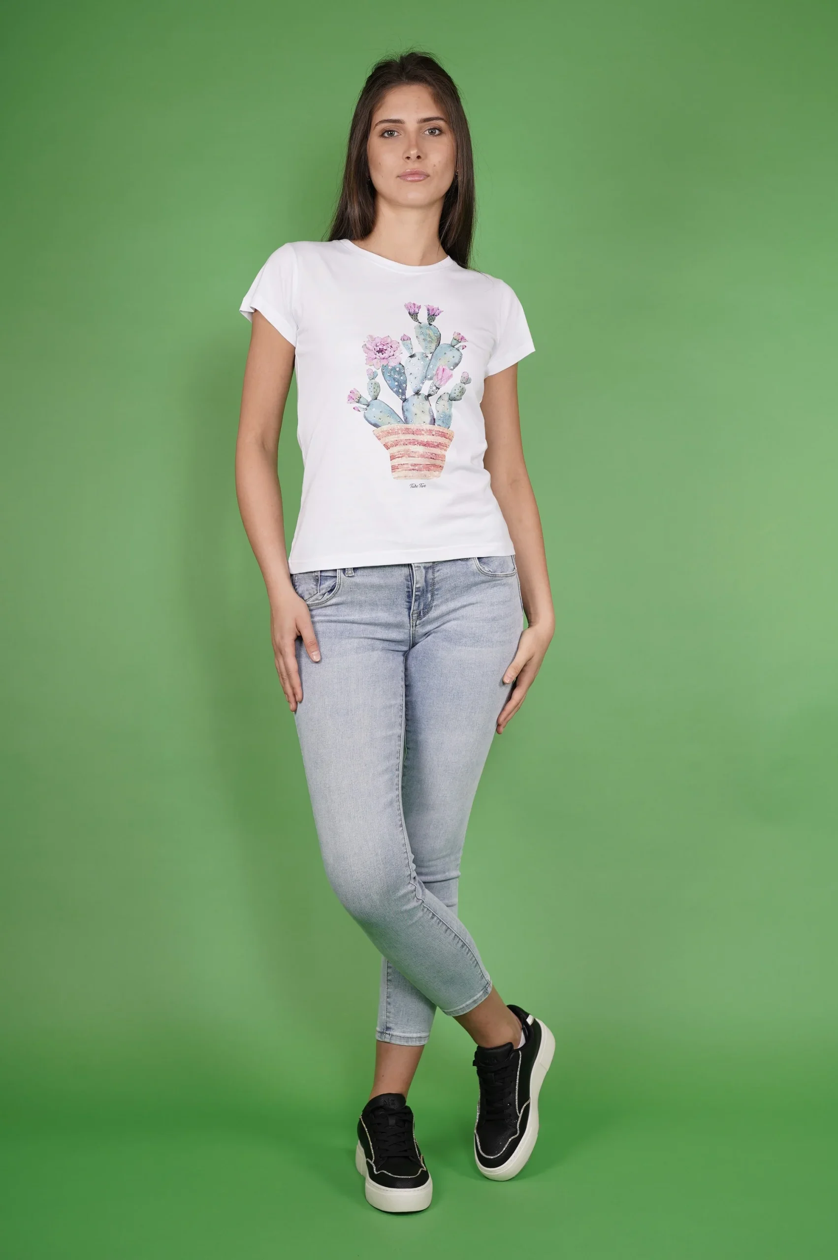 Modello: DKE9108Colore: BiancoArticolo: T-shirtGenere: DonnaMarca: TAKE TWOMateriale: Cotone 100%