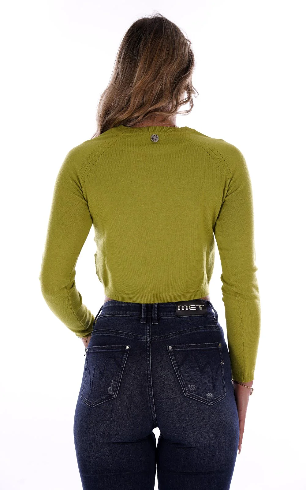TAKE TWO Maglione corto verde pistacchio da donna in viscosa