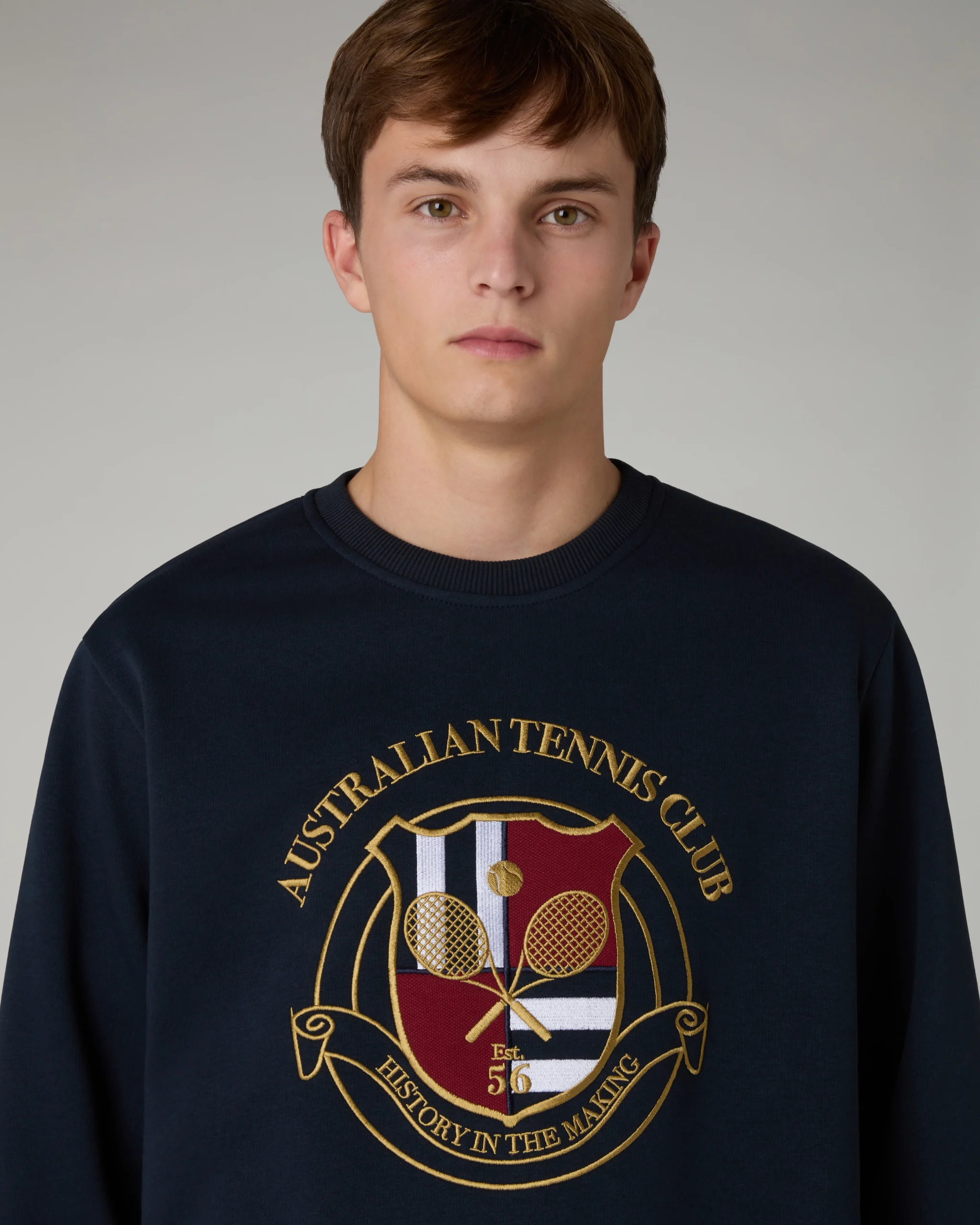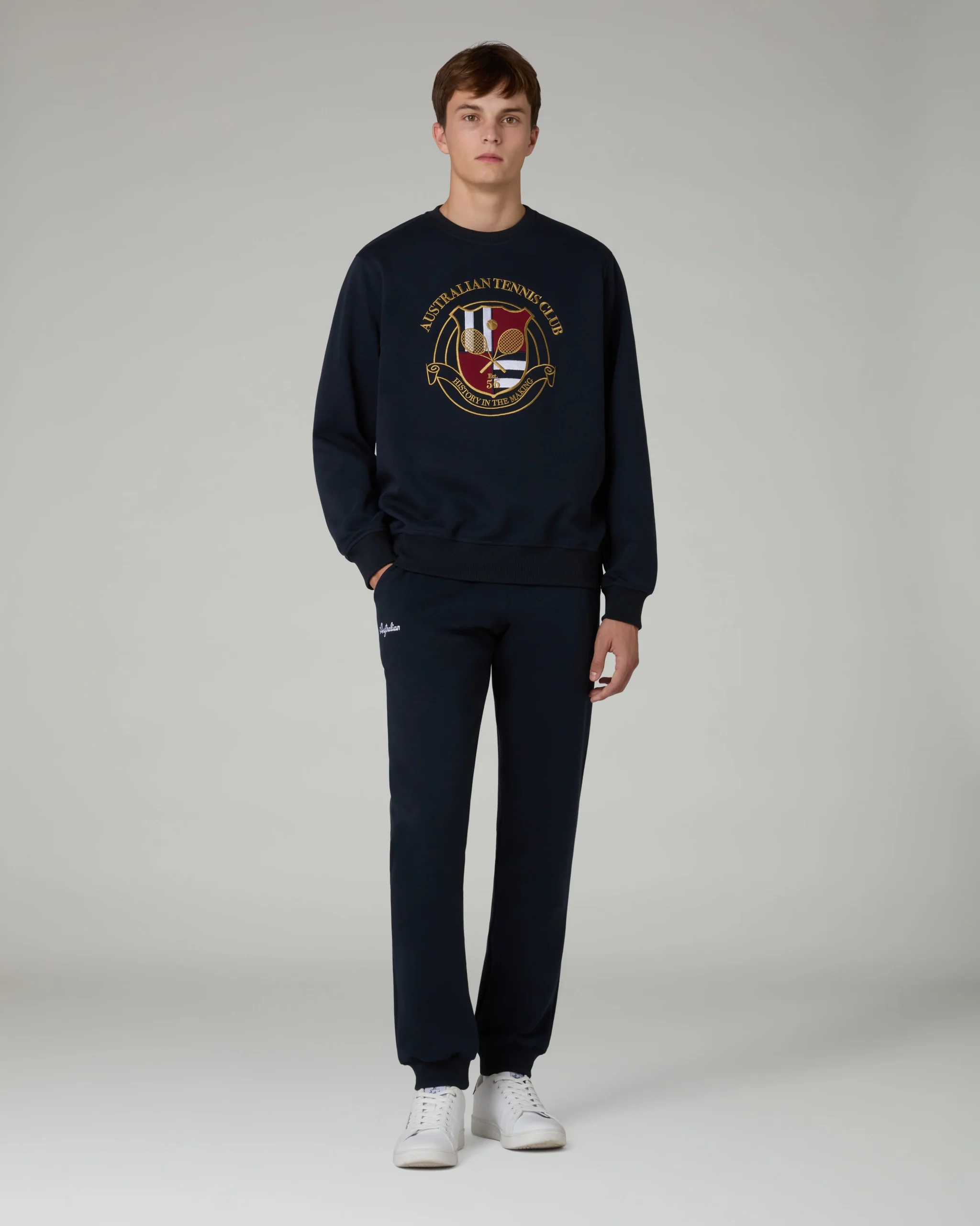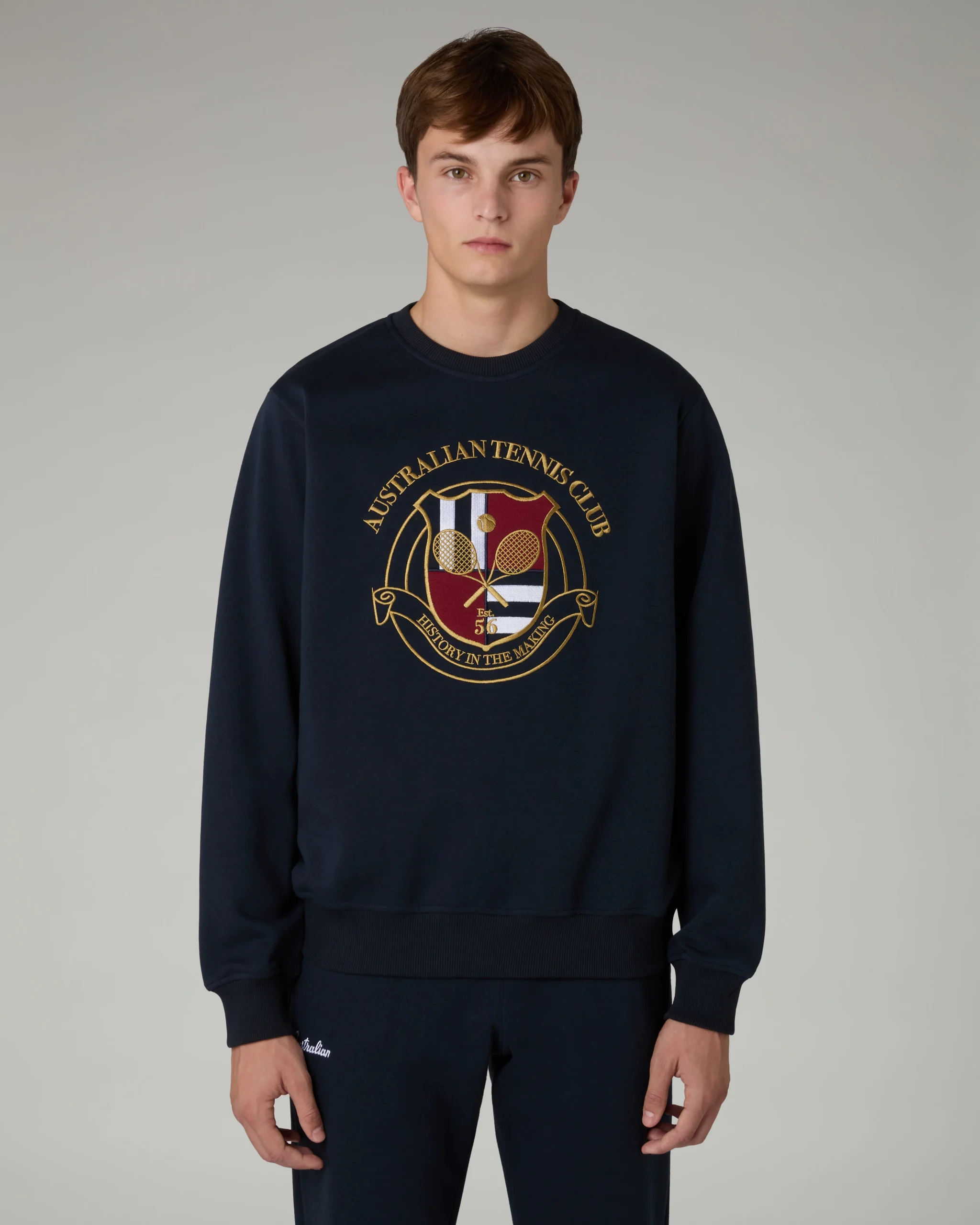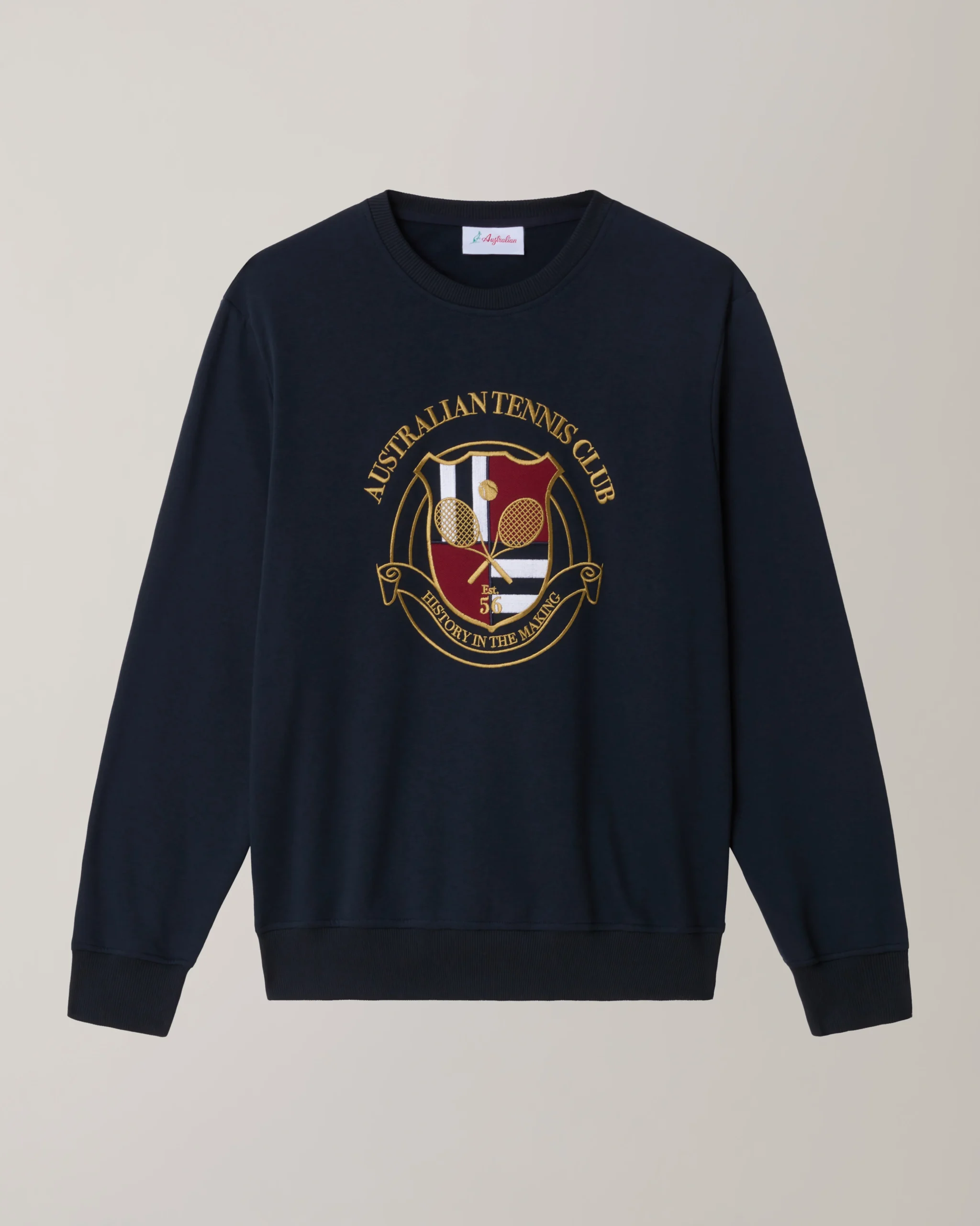 – Girocollo in cotone garzato– Fondo e polsi in costina– Grande ricamo ‘Australian tennis club’ sul davanti– Made in Italy