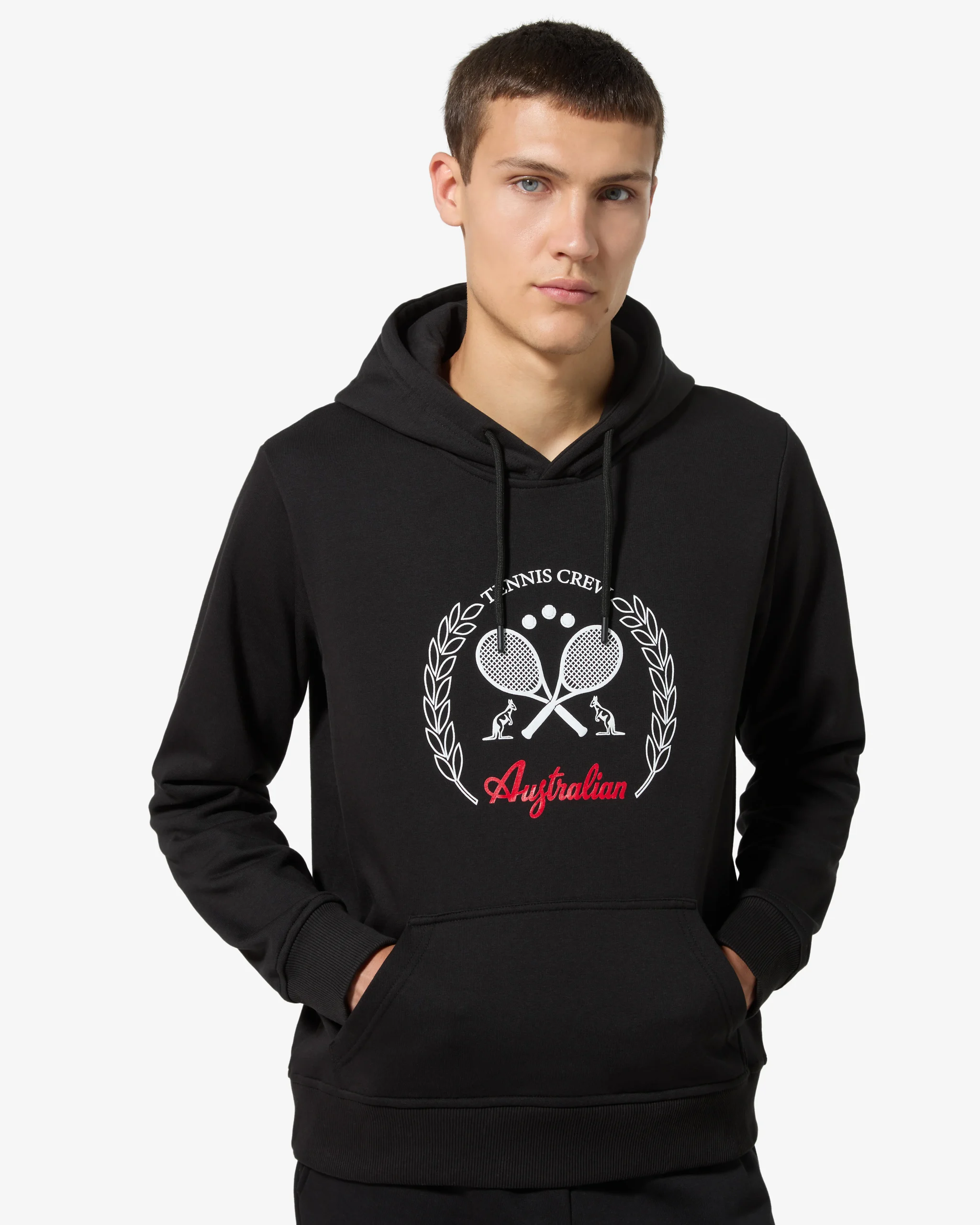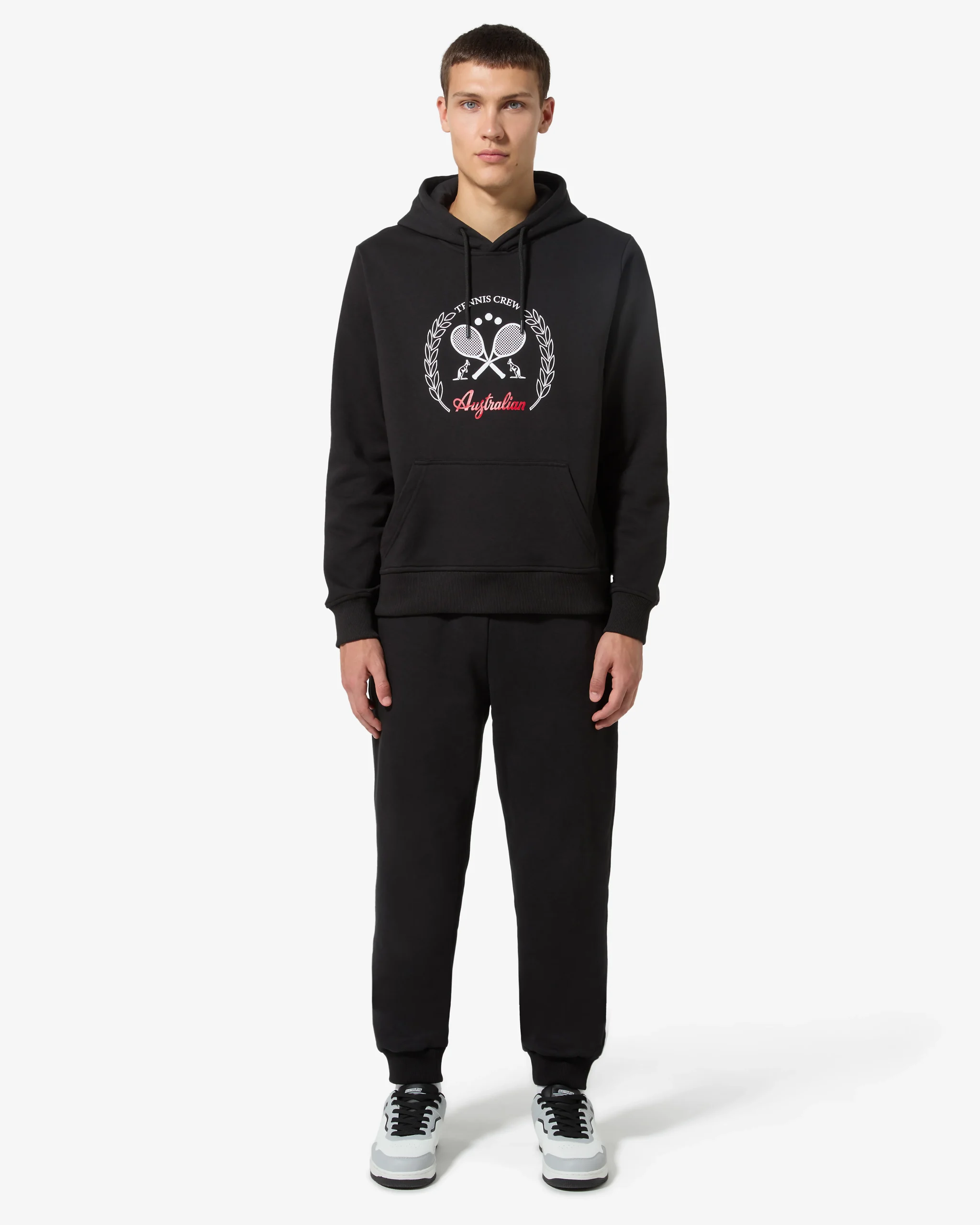 – Felpa in cotone con cappuccio – Cappuccio con coulisse regolabile– Tasca applicata a marsupio– Bordo e polsini in costina– Stampa serigrafica sul petto– Made in Italy