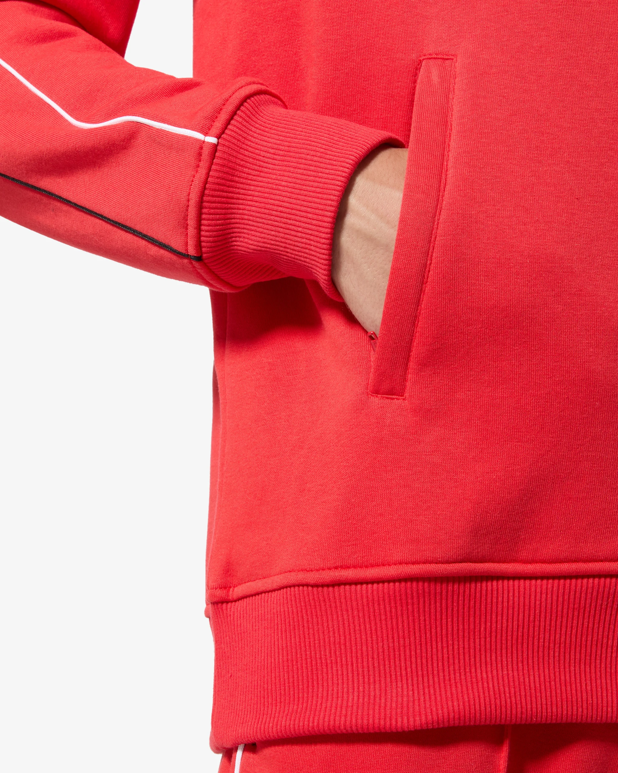 – Giacca sportiva in felpa invernale– Bordi in costina– Zip coperte alle tasche– Piping in contrasto sul davanti– Patch applicata – Made in Italy