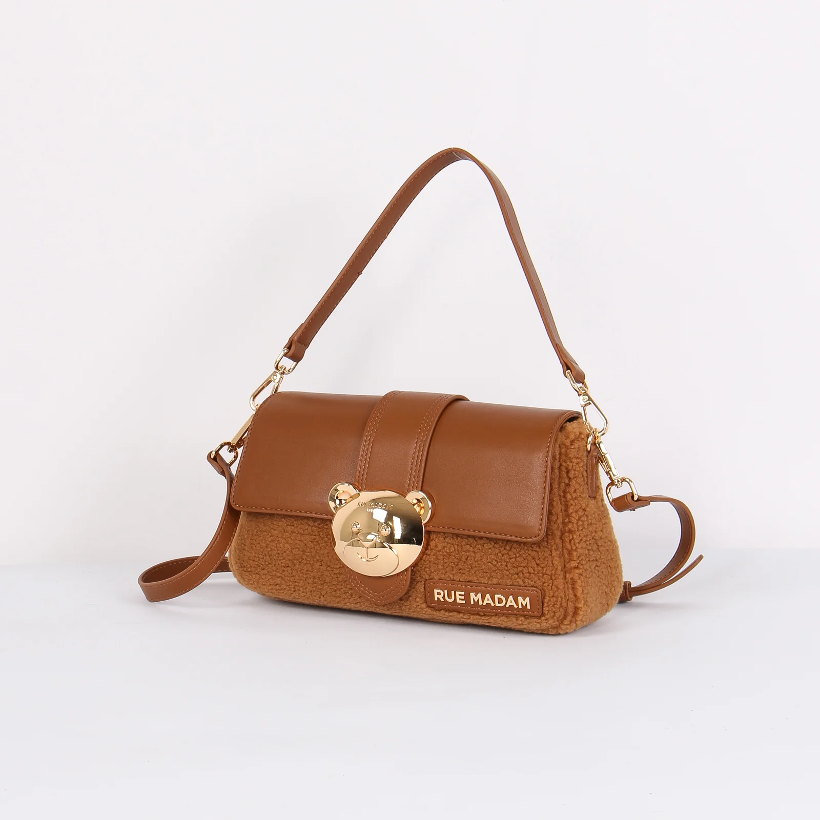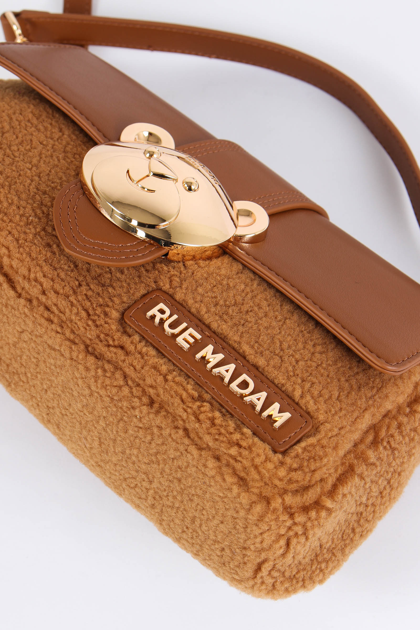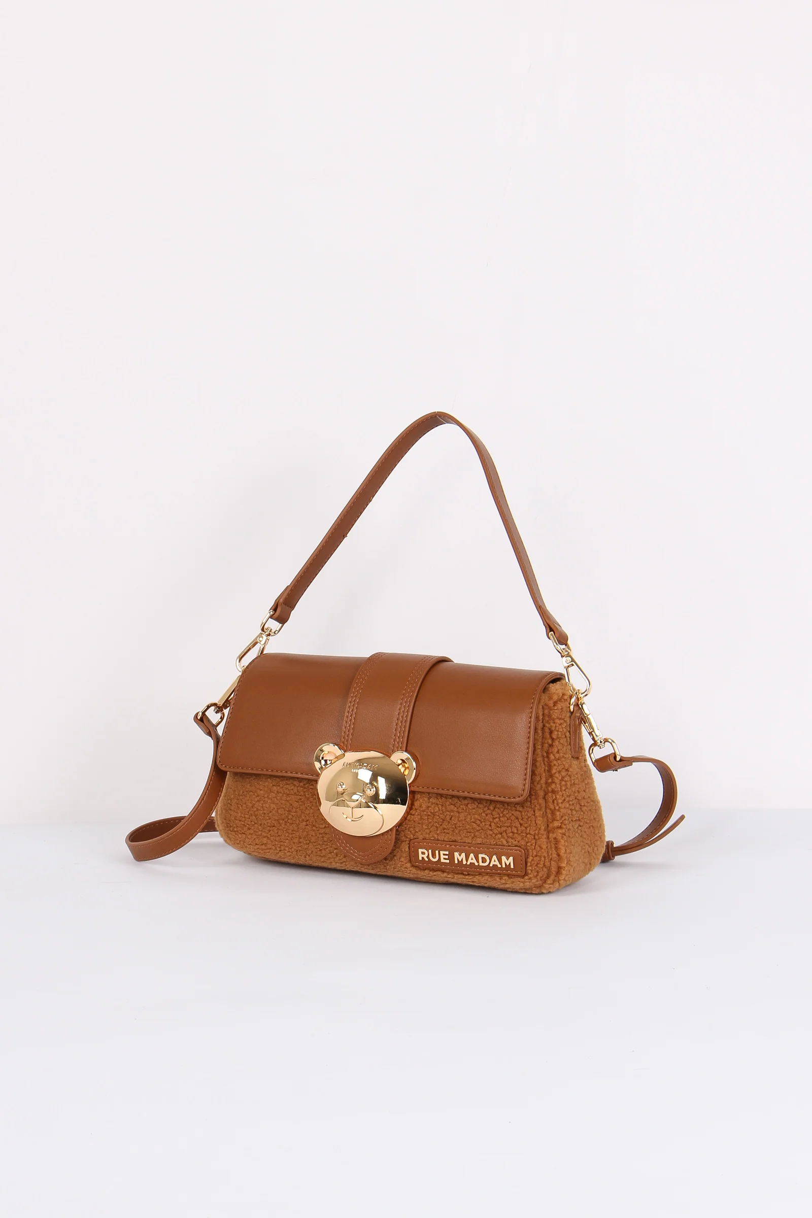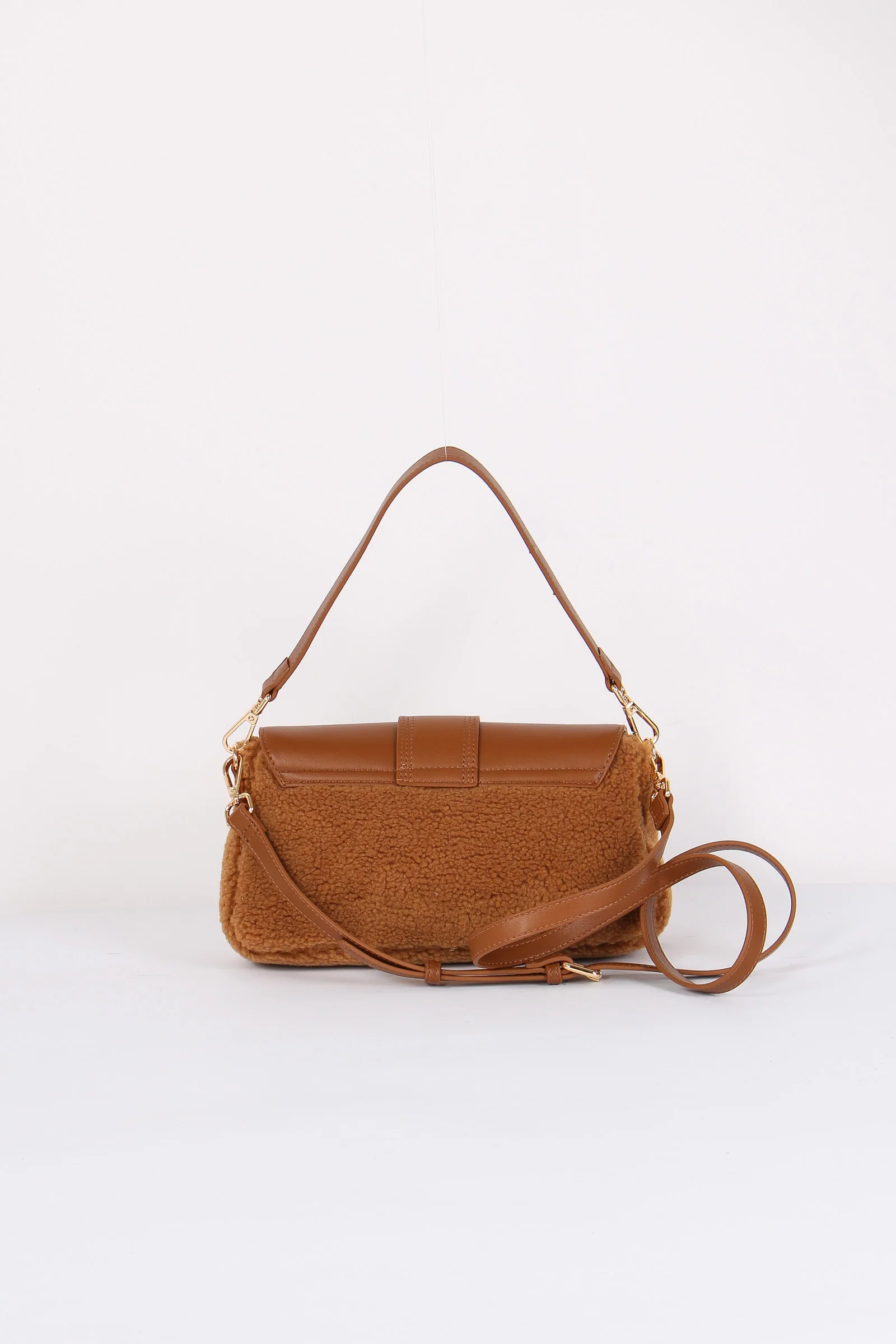 Materiale: ecopelle e ecopelliccia chiusura: rocchetto tracolla: si dettagli: Tracolla bimateriale ecopelle ed ecopelliccia. Logo in ecopelle e chiusura in metallo a forma di orsetto. Manici sia per portarla a mano o spalla che a tracolla removibile e regolabili. Interno con scomparto e zip.